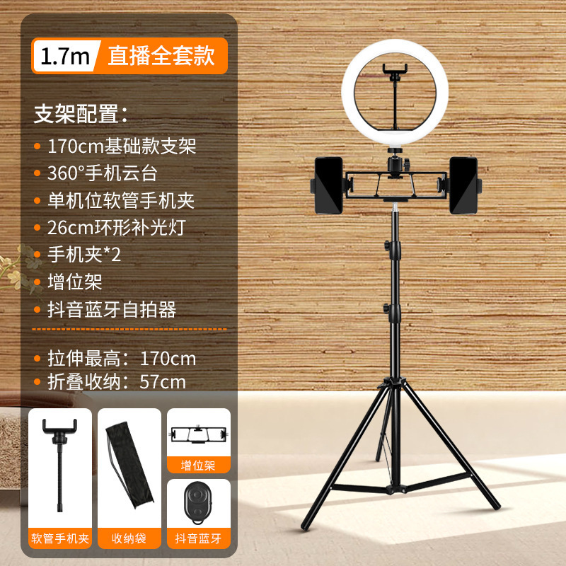 • 1.7m 휴대폰 홀더 + 26cm 링 라이트 [업그레이드 및 강화] 단일 카메라 + Douyin 셀카 + 무료 보관 가방