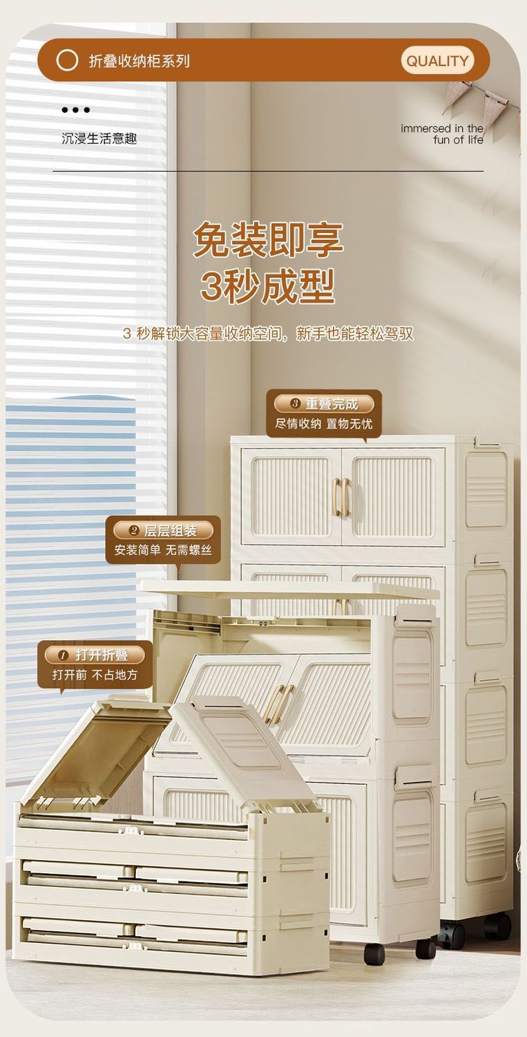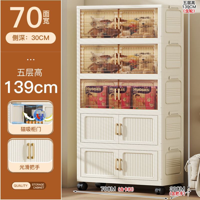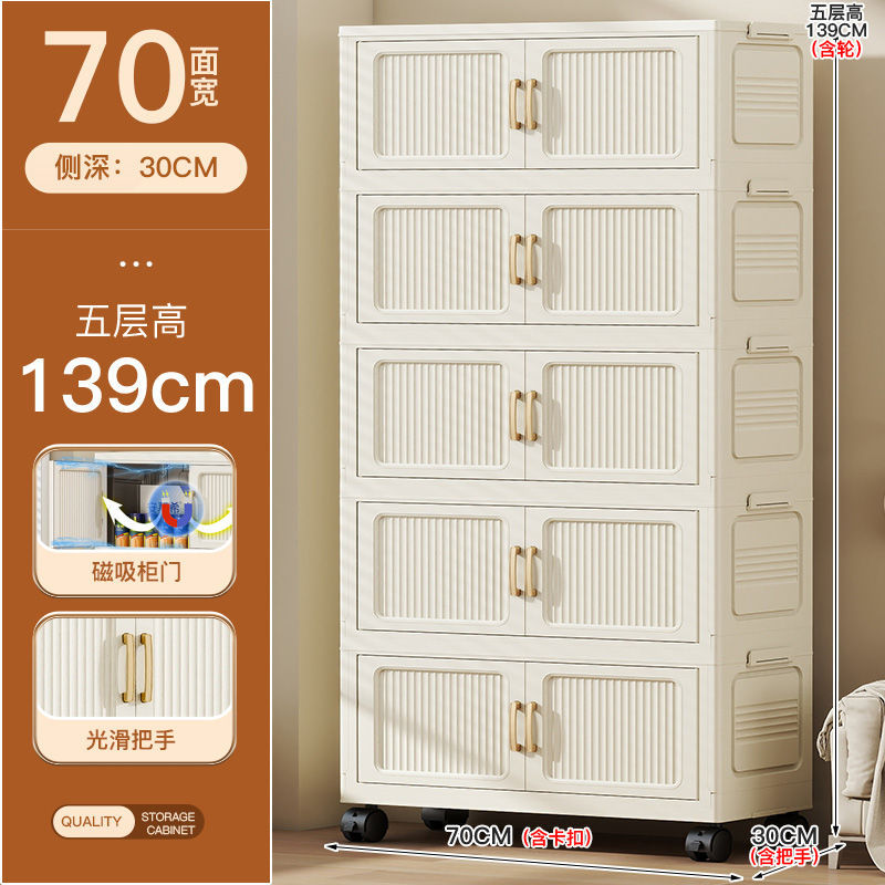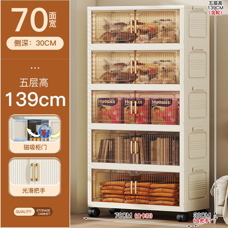 가정용 아동복 보관을위한 폭 70CM 다층 보관 캐비닛 조립이 필요없는 접이식 잔해물 보관 랙 보관함스토어 가기