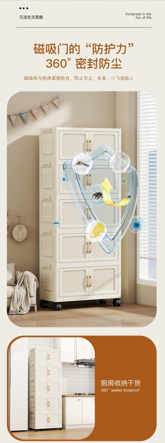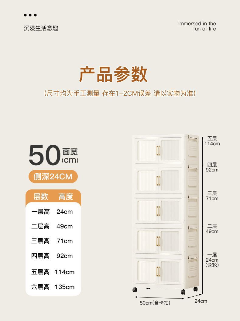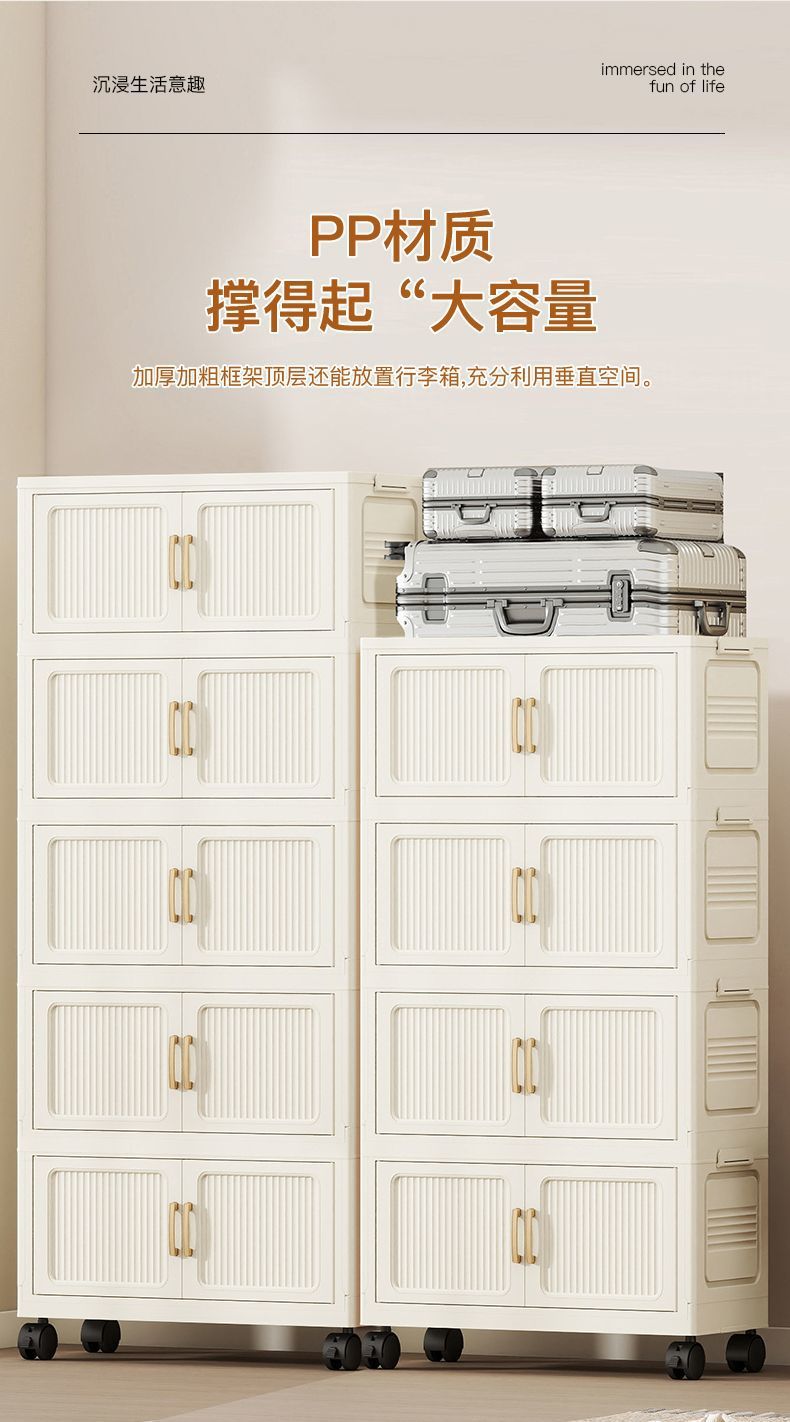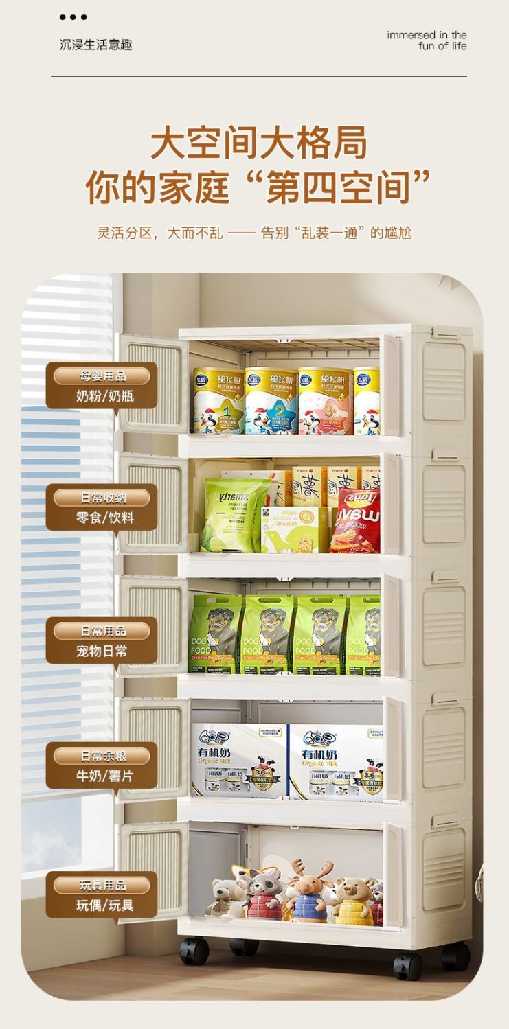 가정용 아동복 보관을위한 폭 70CM 다층 보관 캐비닛 조립이 필요없는 접이식 잔해물 보관 랙 보관함스토어 가기