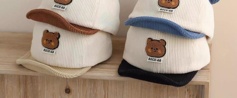 아기 모자 가을, 겨울 한국어 버전 두꺼운 소년과 소녀 귀여운 곰 따뜻한 코듀로이 아기 부드러운 챙 어린이스토어 가기