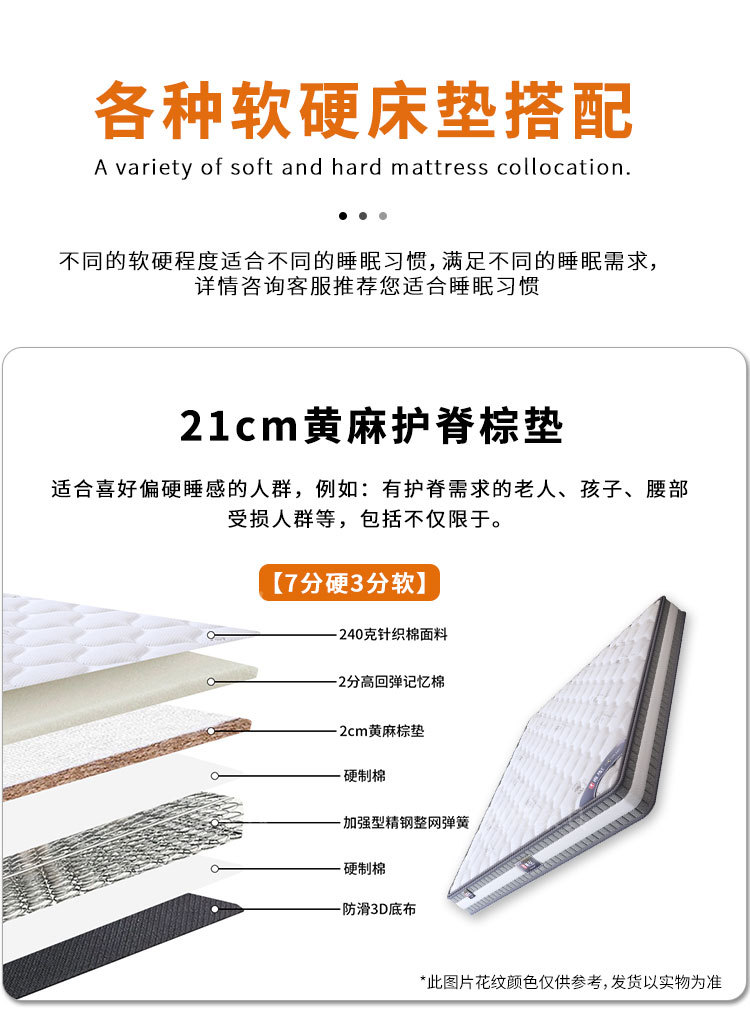 • 가죽 침대 + 황마 척추 보호 브라운 매트리스 + 침대 옆 테이블 * 1