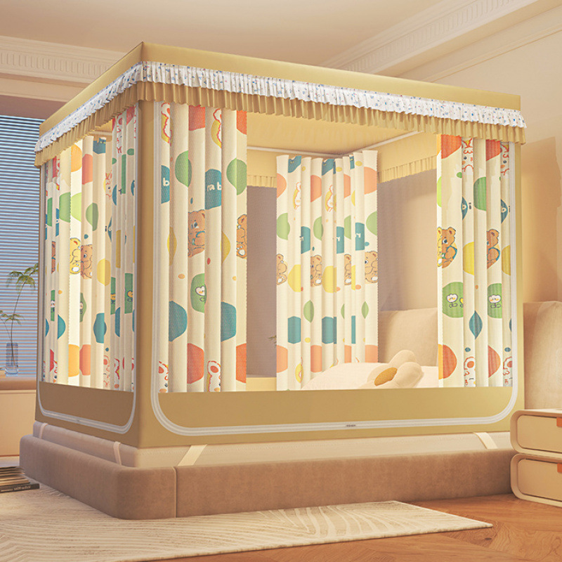 클래스 A 가정용 이중 레이어 차광 모기장 침대 커튼 일체형 낙하 방지 완전 밀폐형 싱글 및 더블 침대 커튼 1.8m 몽골리안 텐트