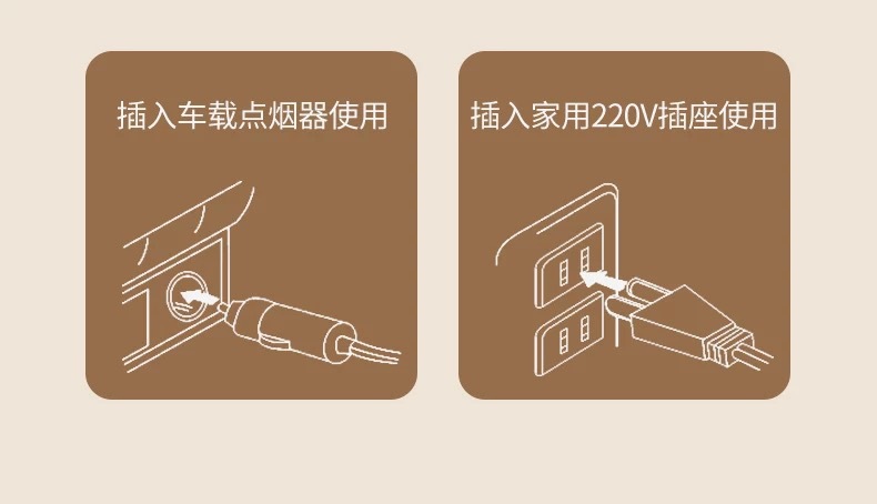 USB款与车家两用的区别:USB款只配一条USB电源线,用家里的手机充电头就可以直接插电,车里用车充供电,也可以用充电宝供电;②车家两用款配置一条车载线,一条家用线,在家里用家用线,在车里用车载线,但是不能用充电宝;③车家两用的功率大,制冷速度快,USB的功率小,制冷慢,只低于环境温度10°C左右,USB的适合礼品赠送!