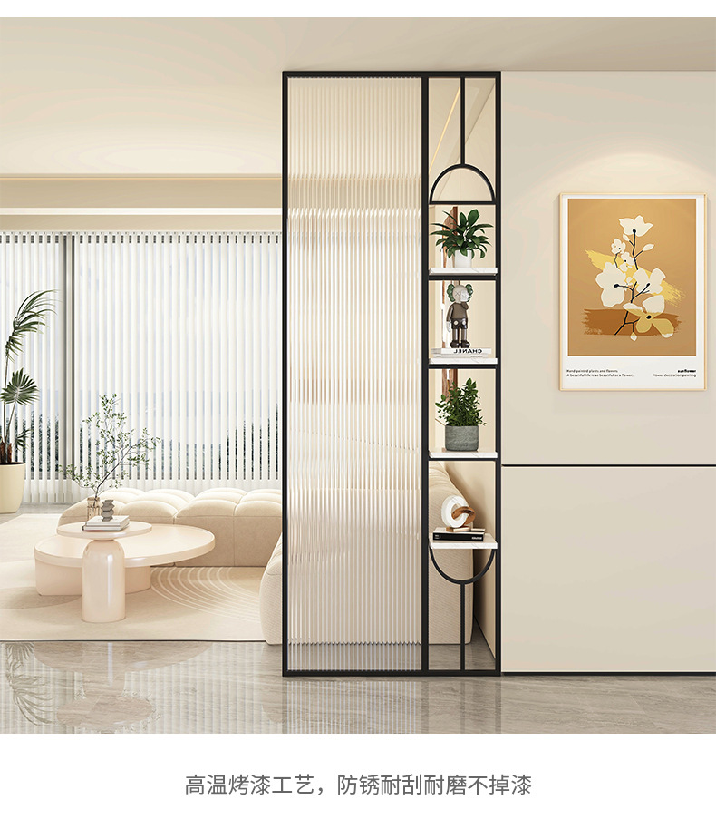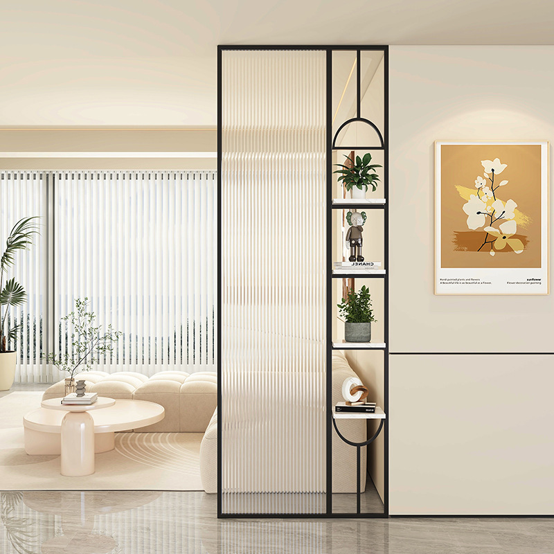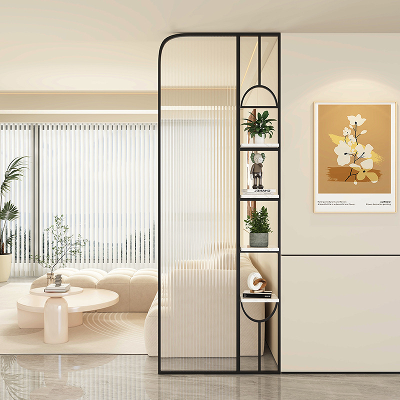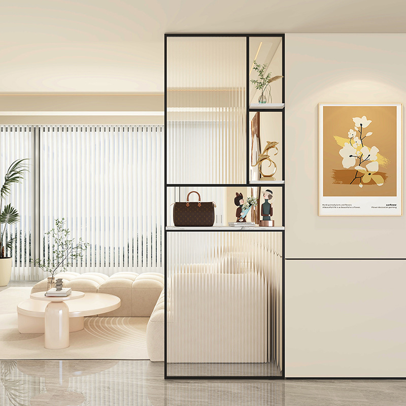 Baitie 크림 스타일 Changhong 유리 스크린 간단한 거실 파티션 스테인레스 스틸 욕실 입구 현관 랙