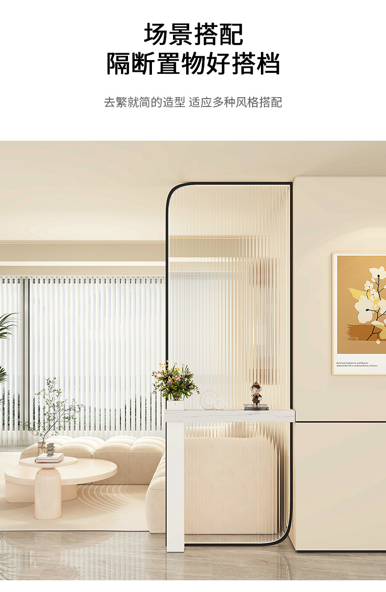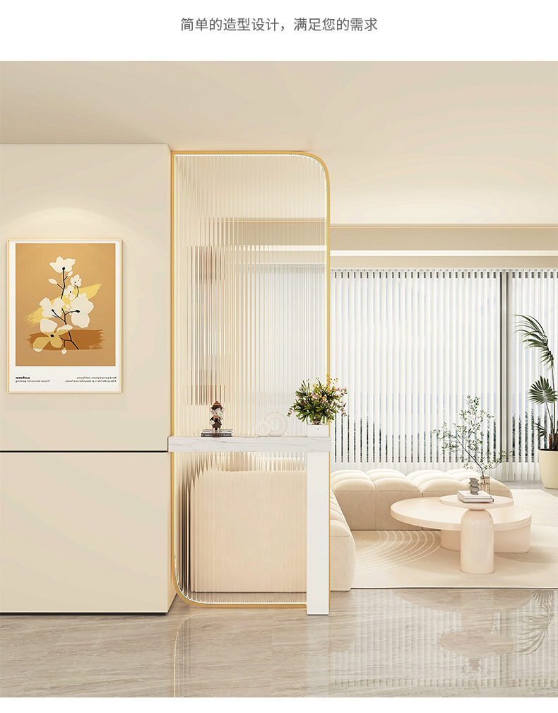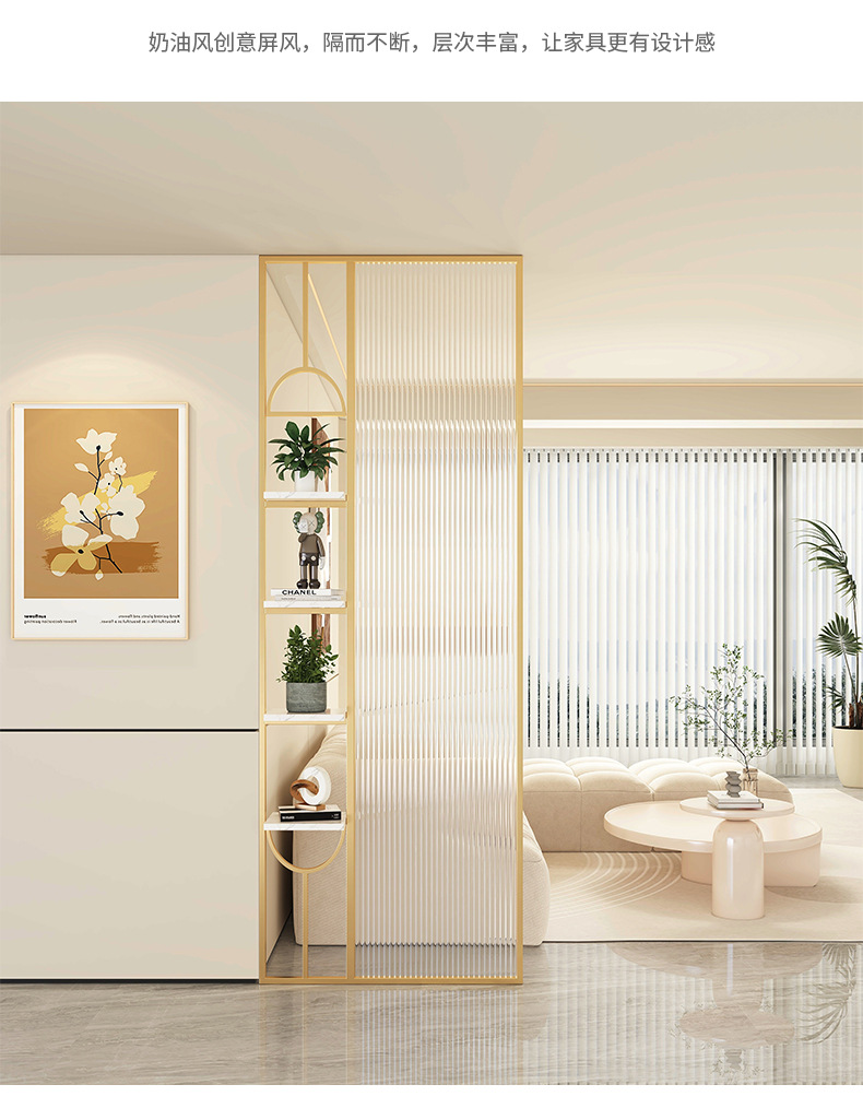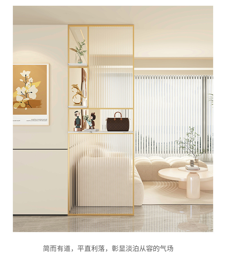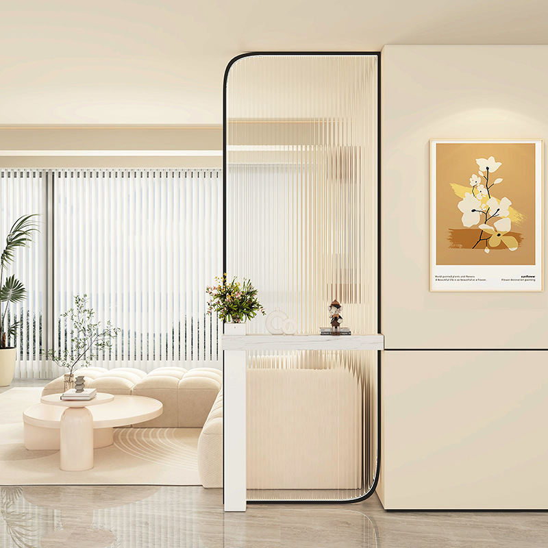 Baitie 크림 스타일 Changhong 유리 스크린 간단한 거실 파티션 스테인레스 스틸 욕실 입구 현관 랙스토어 가기
