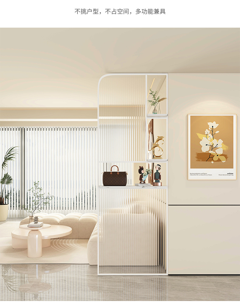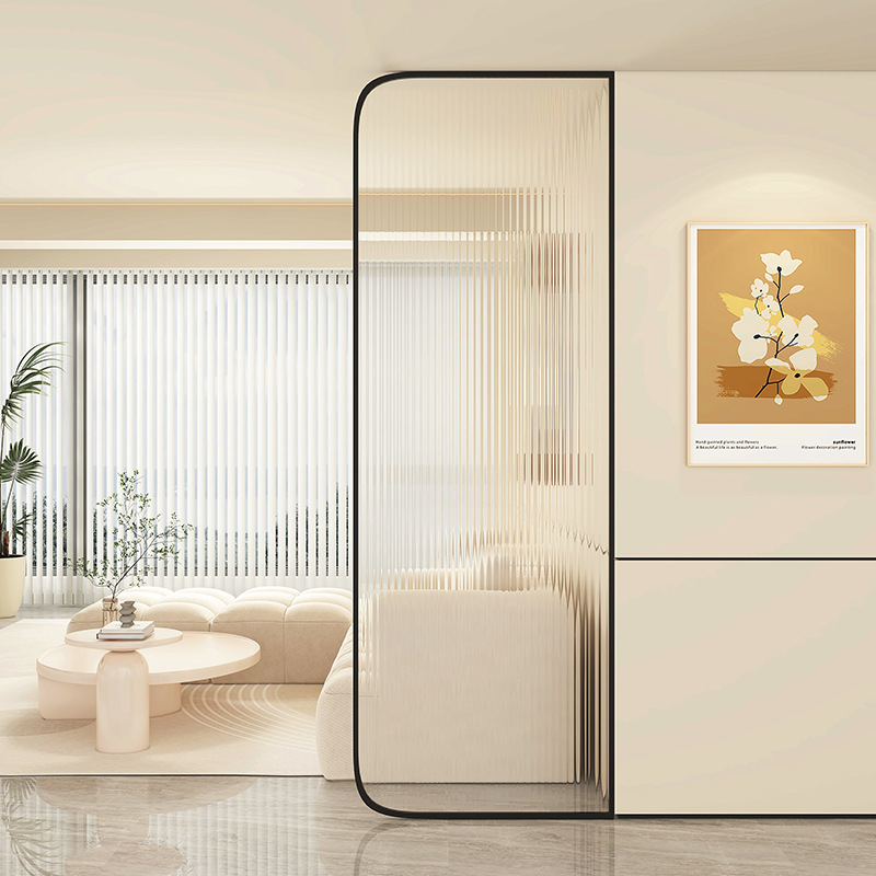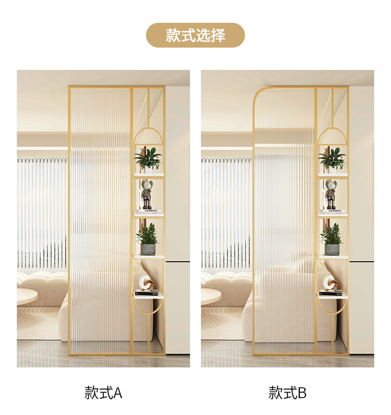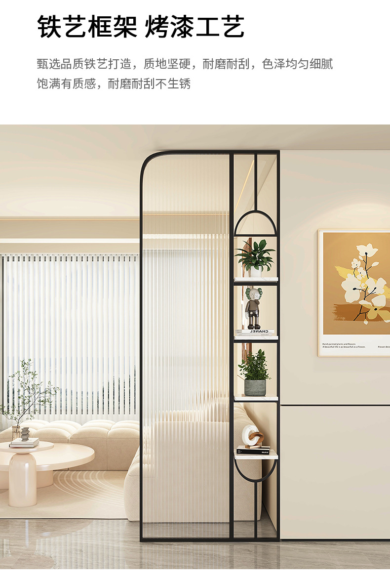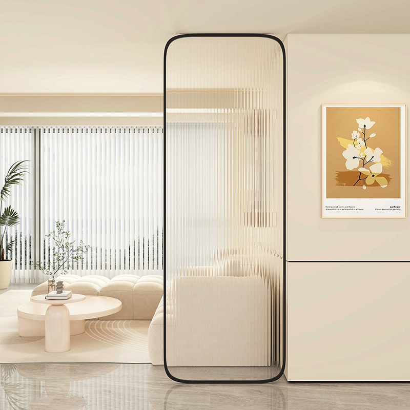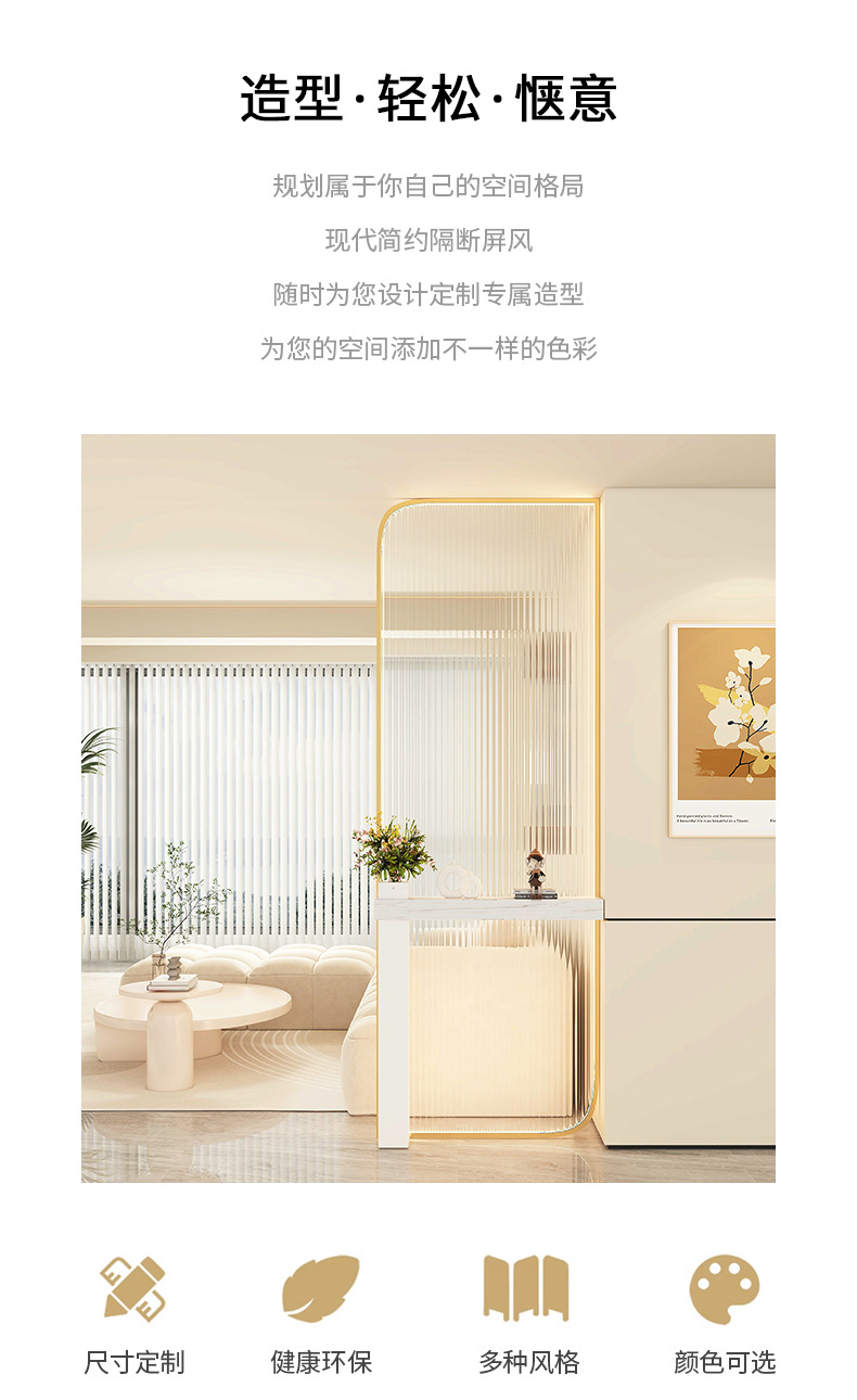 Baitie 크림 스타일 Changhong 유리 스크린 간단한 거실 파티션 스테인레스 스틸 욕실 입구 현관 랙스토어 가기