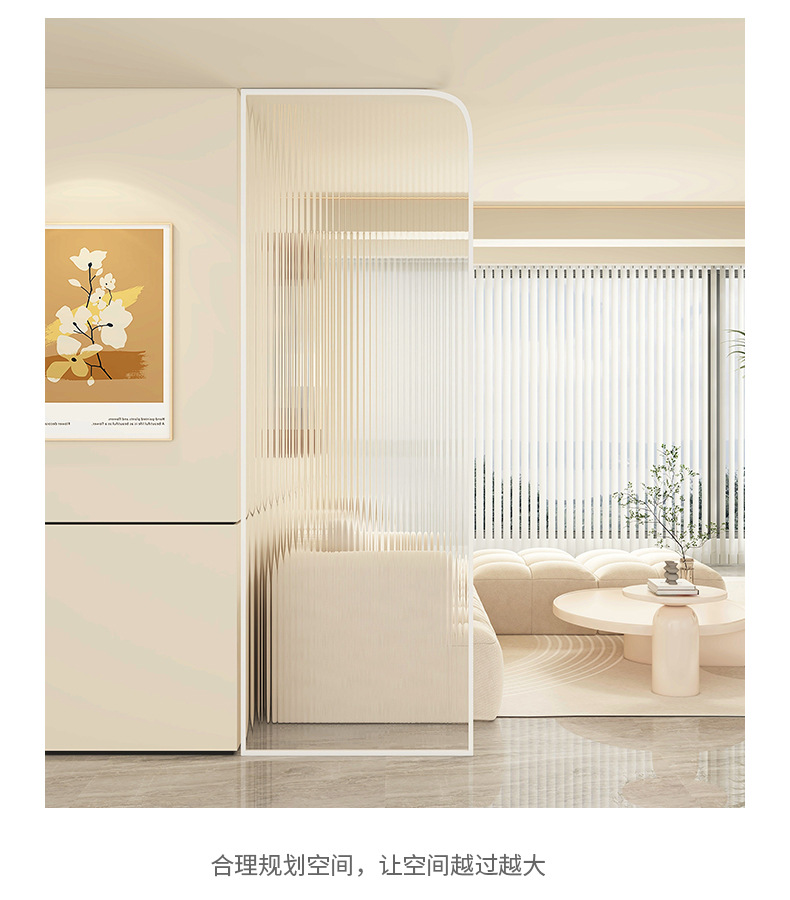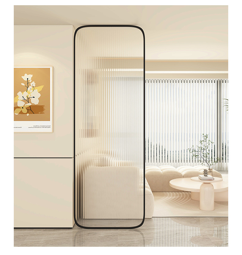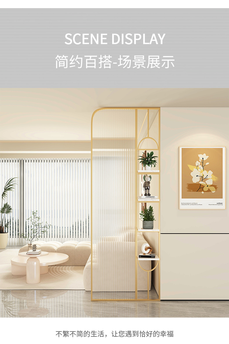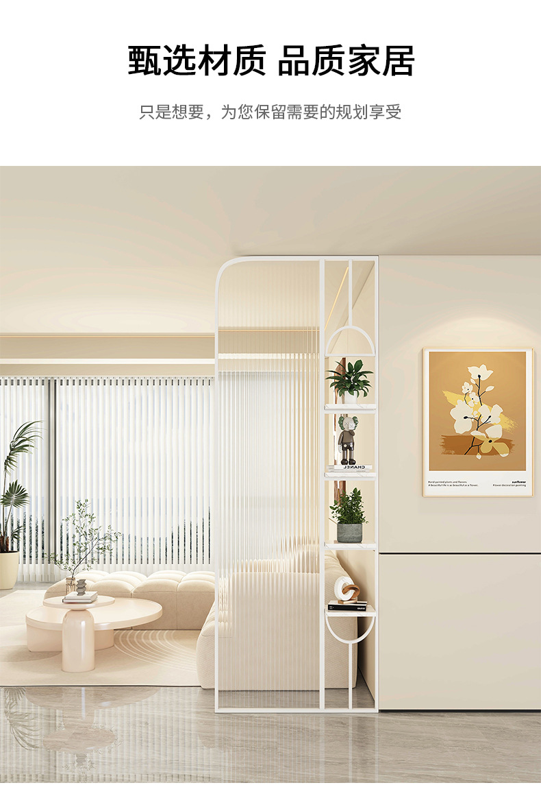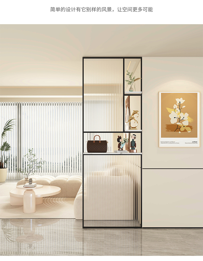 Baitie 크림 스타일 Changhong 유리 스크린 간단한 거실 파티션 스테인레스 스틸 욕실 입구 현관 랙스토어 가기