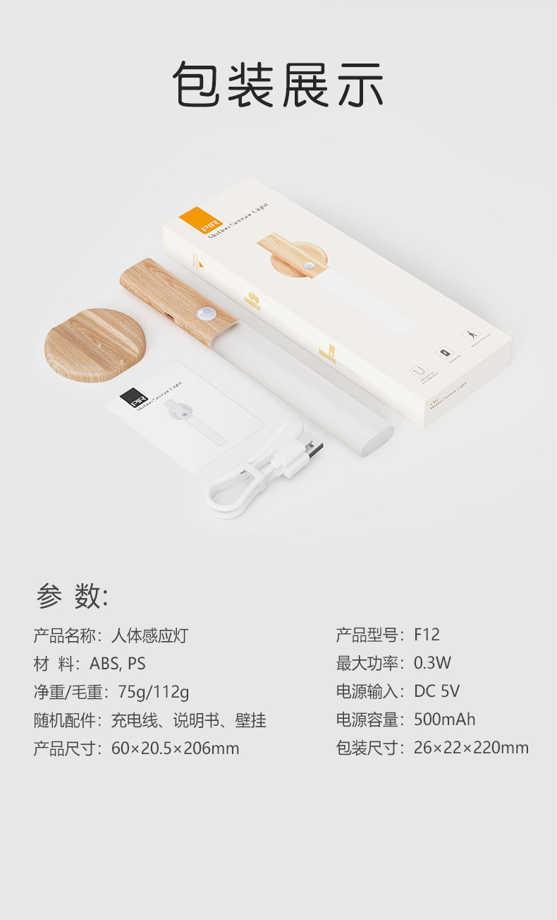 새로운 국경 스트립 유도 램프 인체 유도 램프 지능형 모조 나뭇결 통로 자기 충전 LED 야간 조명
