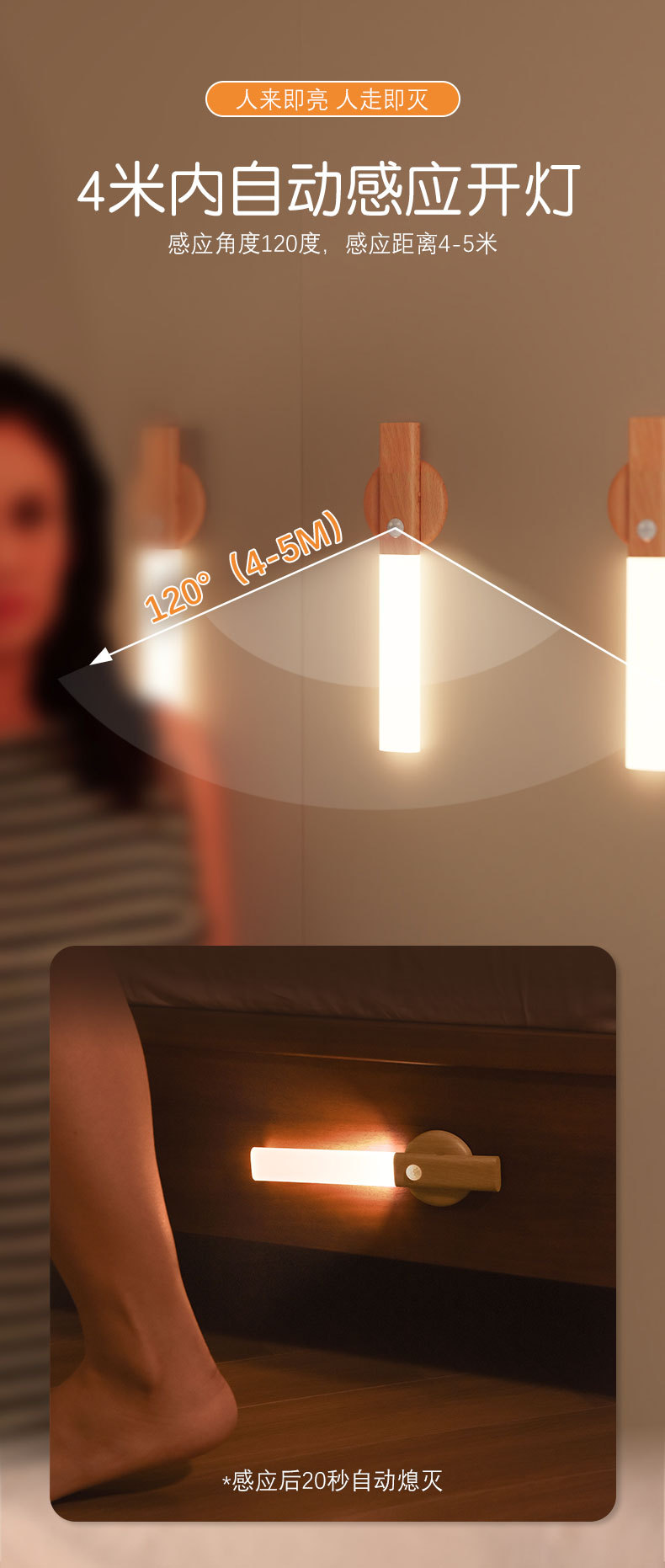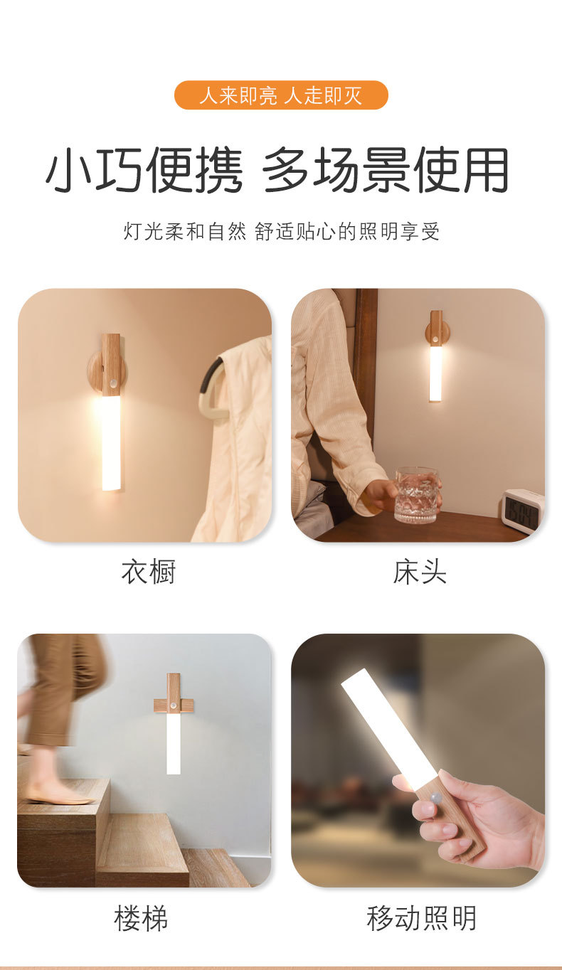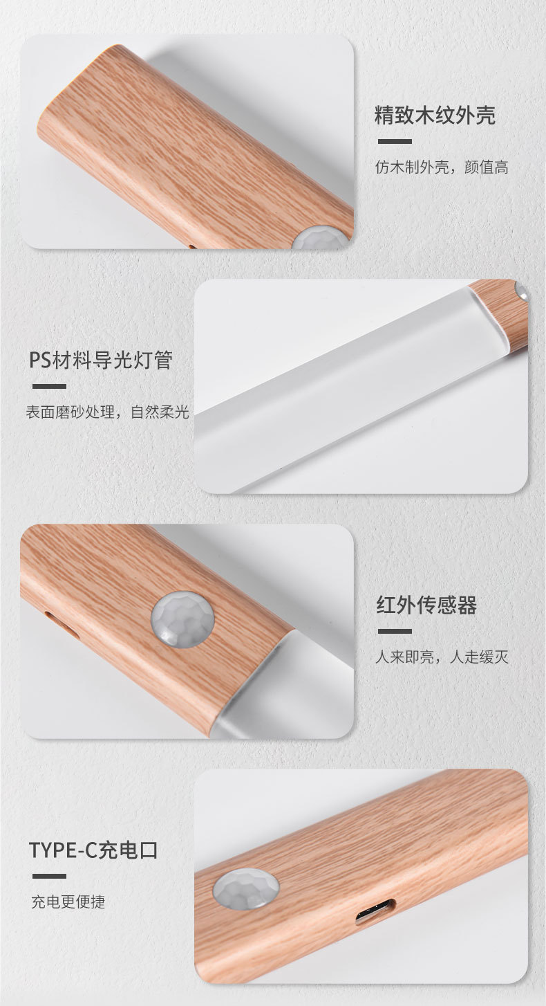 새로운 국경 스트립 유도 램프 인체 유도 램프 지능형 모조 나뭇결 통로 자기 충전 LED 야간 조명스토어 가기