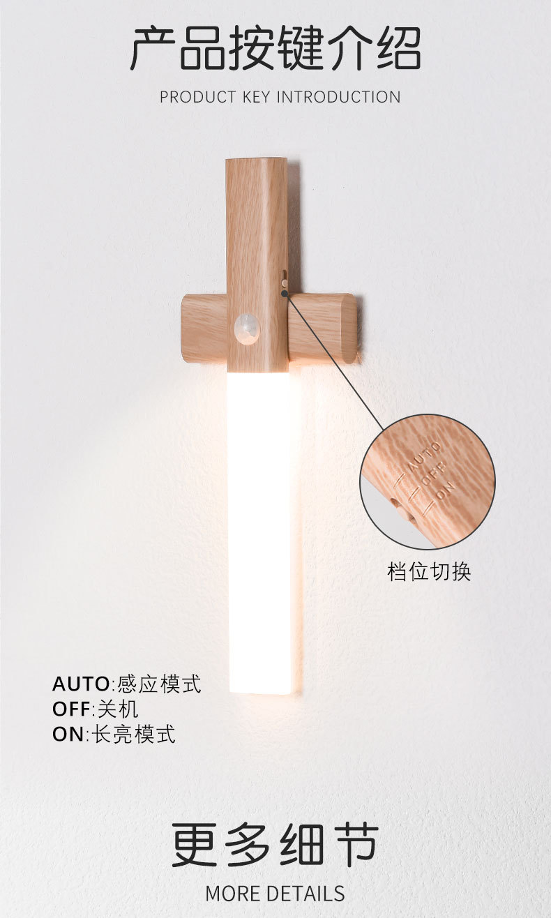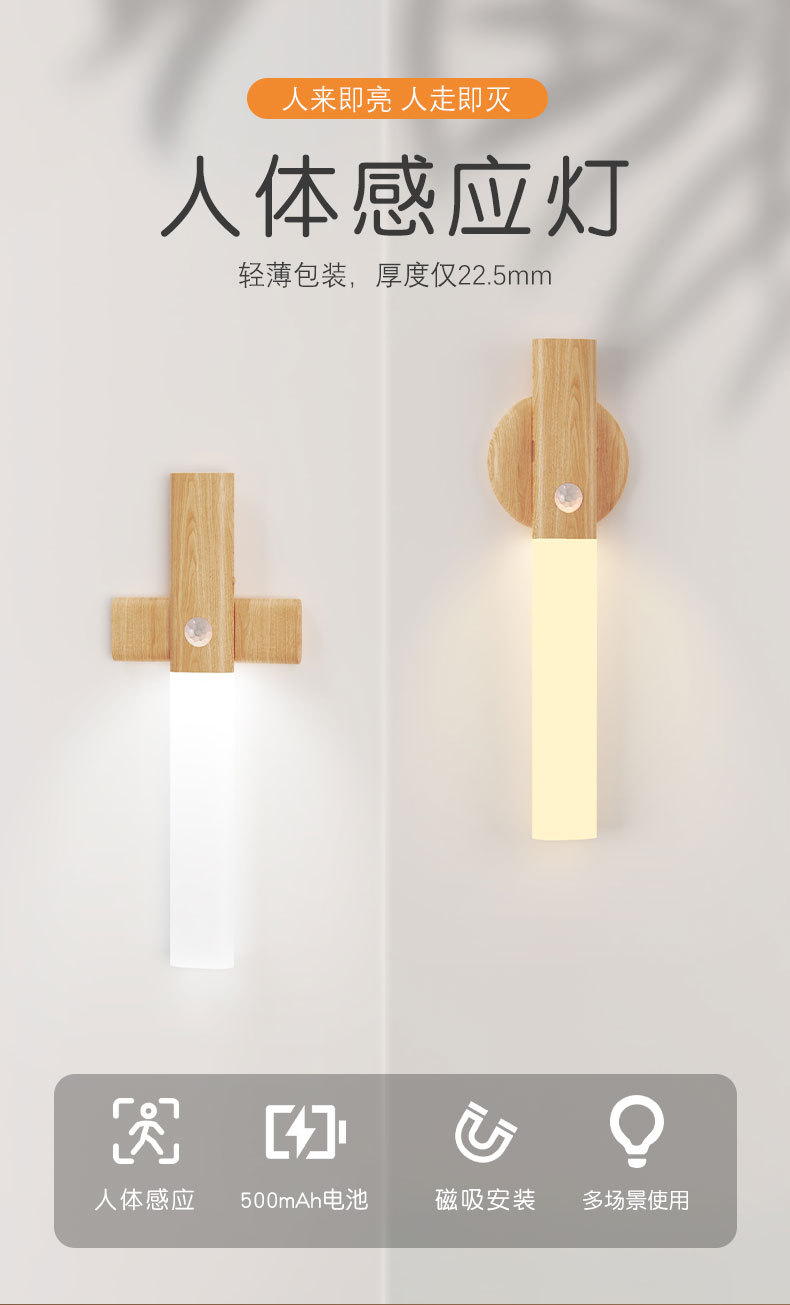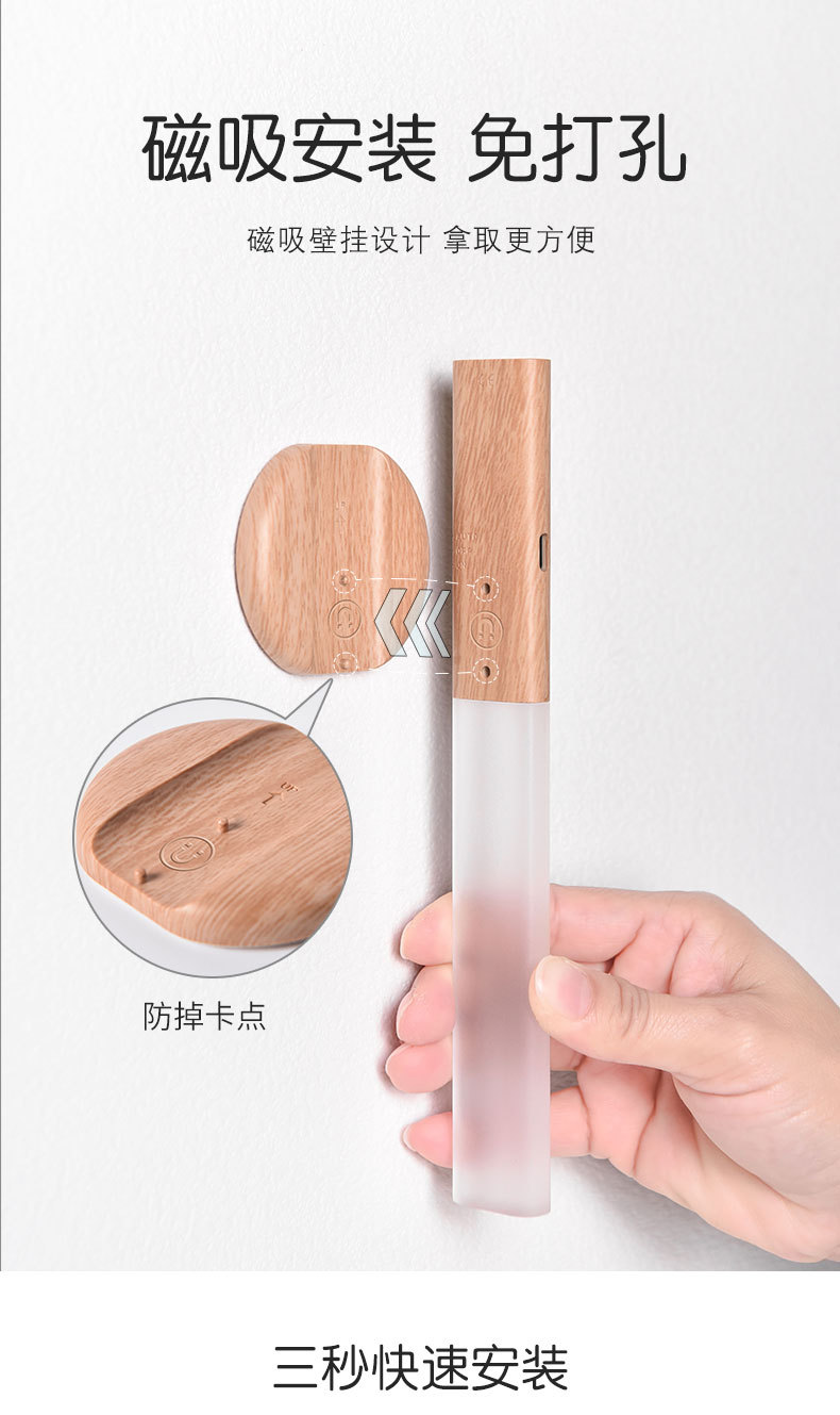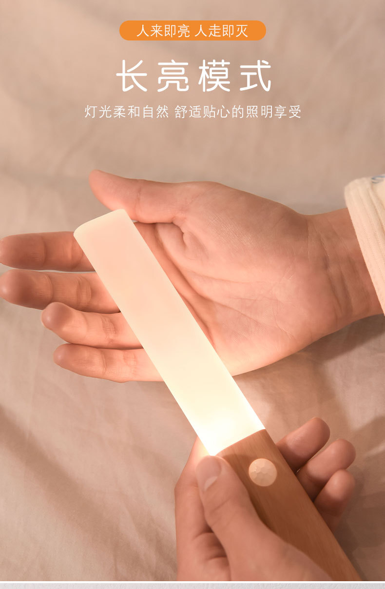 새로운 국경 스트립 유도 램프 인체 유도 램프 지능형 모조 나뭇결 통로 자기 충전 LED 야간 조명스토어 가기