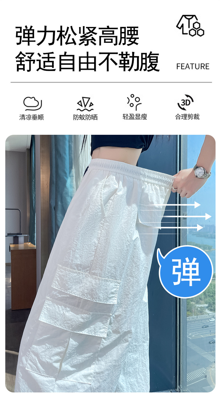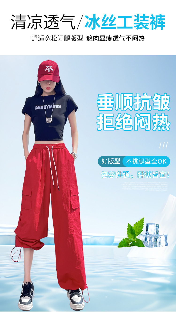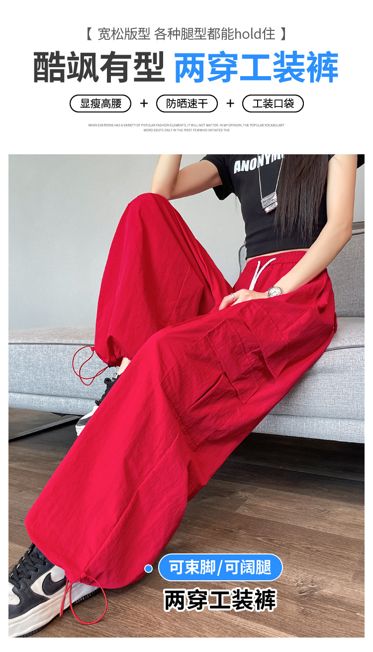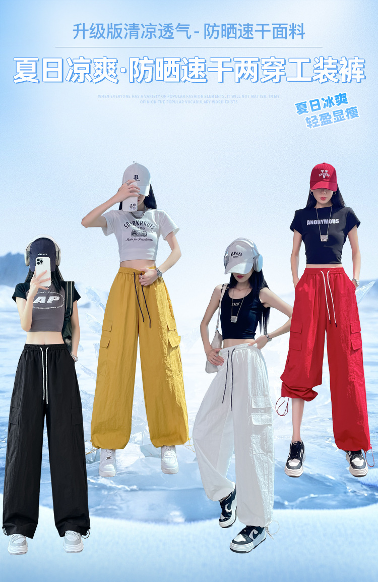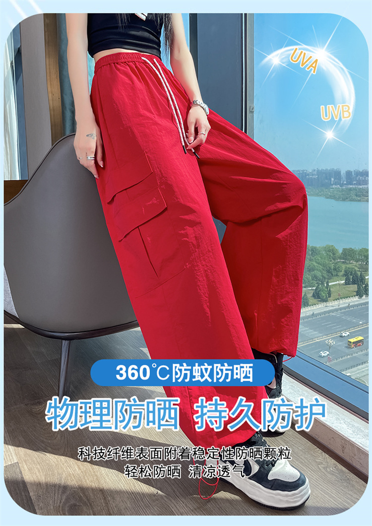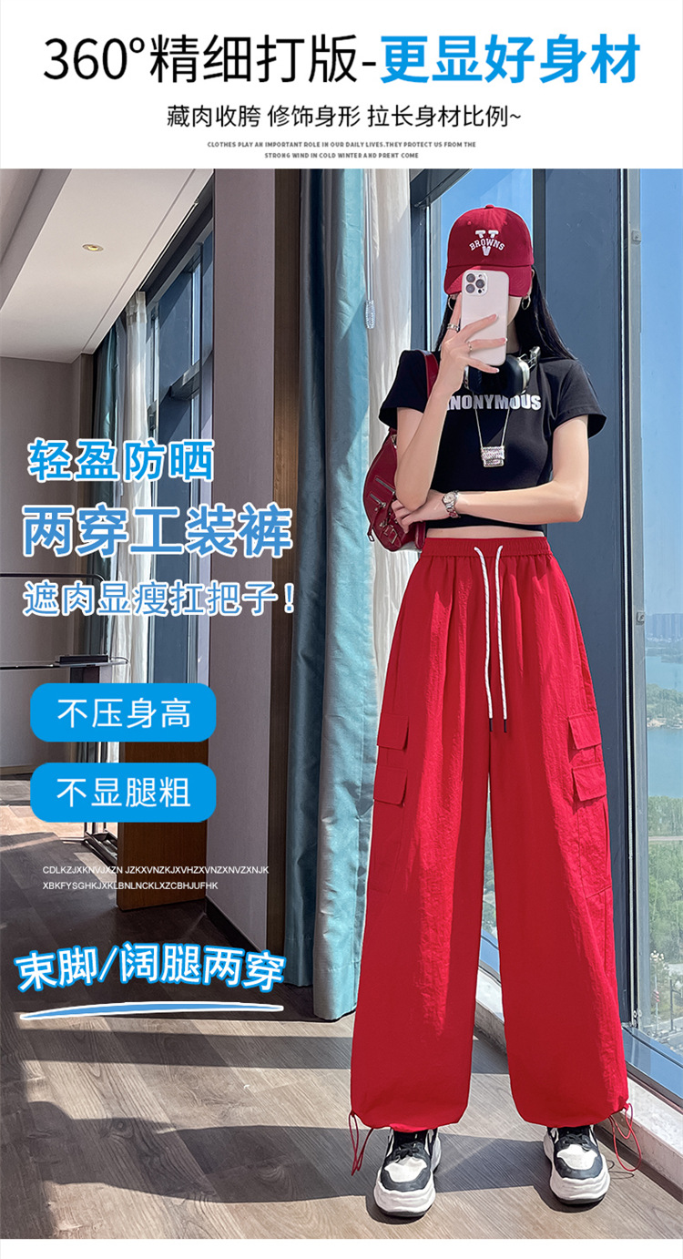 여성용 레드 아이스 실크 속건 작업복 바지 여름 얇은 탄성 높은 허리선 자외선 차단 투웨이 등산 와이드 팬츠 캐주얼스토어 가기