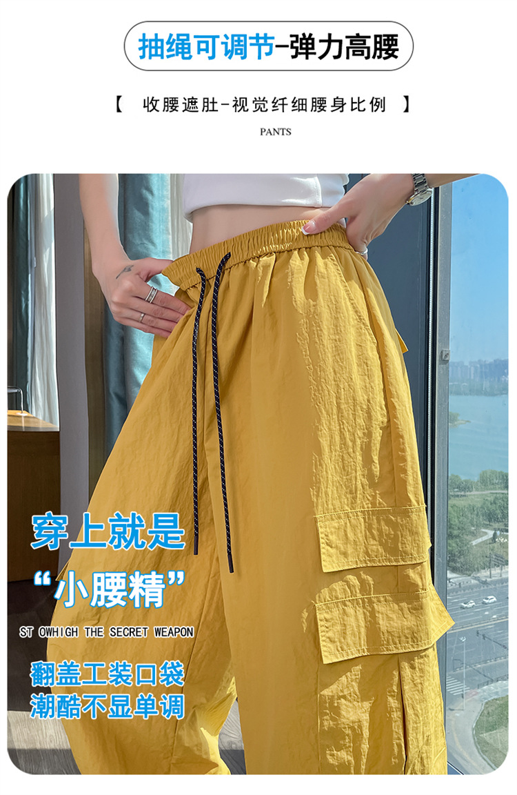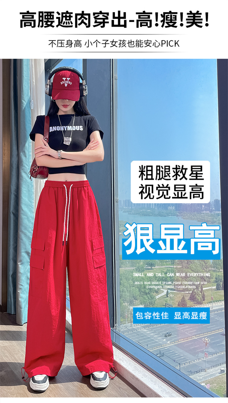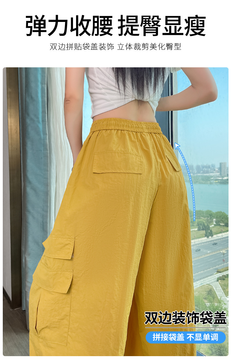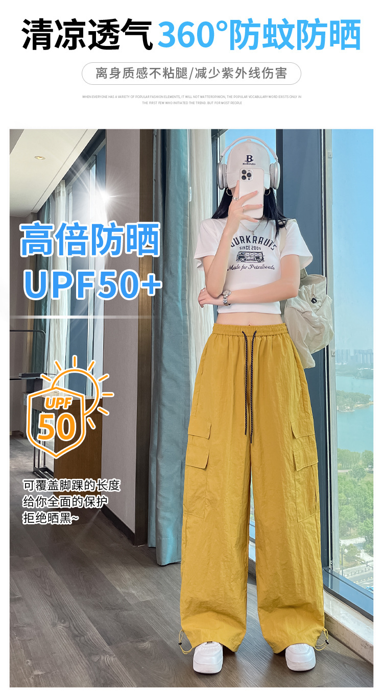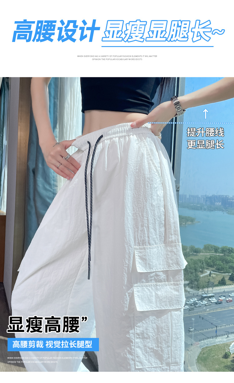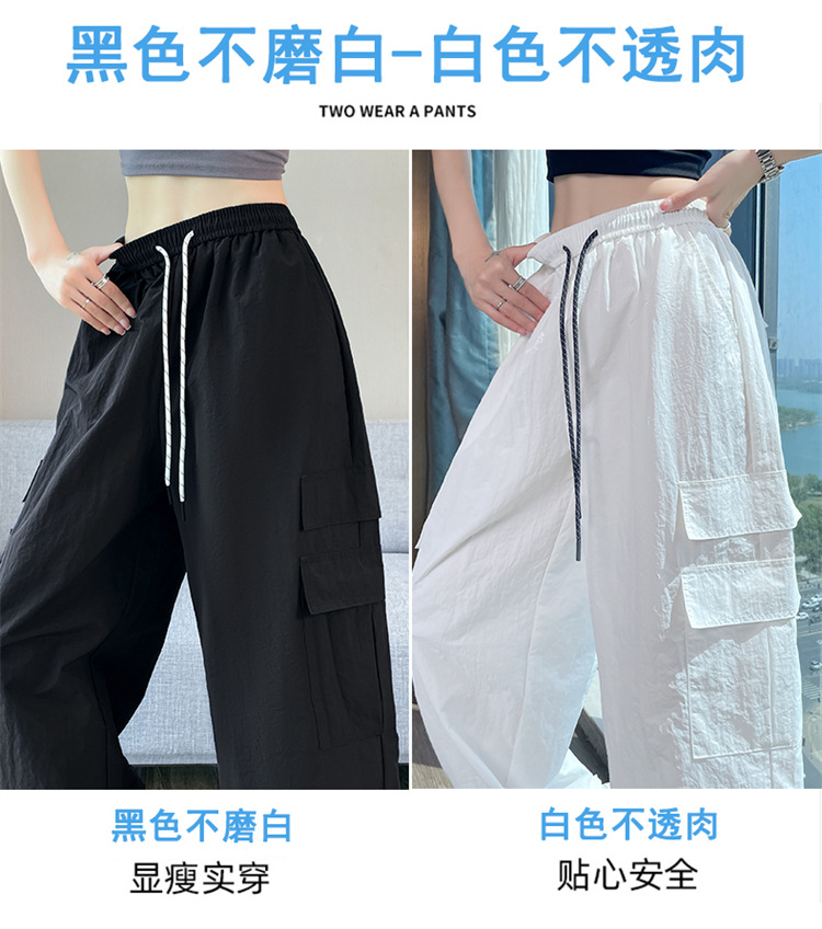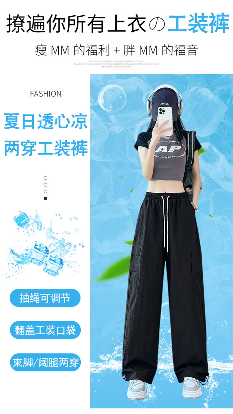 여성용 레드 아이스 실크 속건 작업복 바지 여름 얇은 탄성 높은 허리선 자외선 차단 투웨이 등산 와이드 팬츠 캐주얼스토어 가기