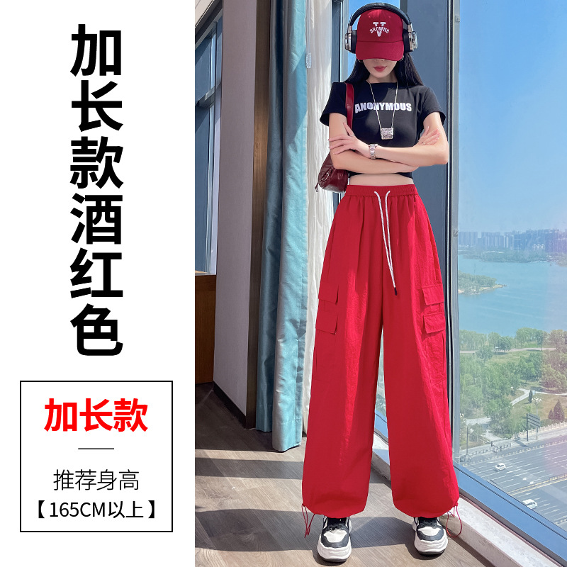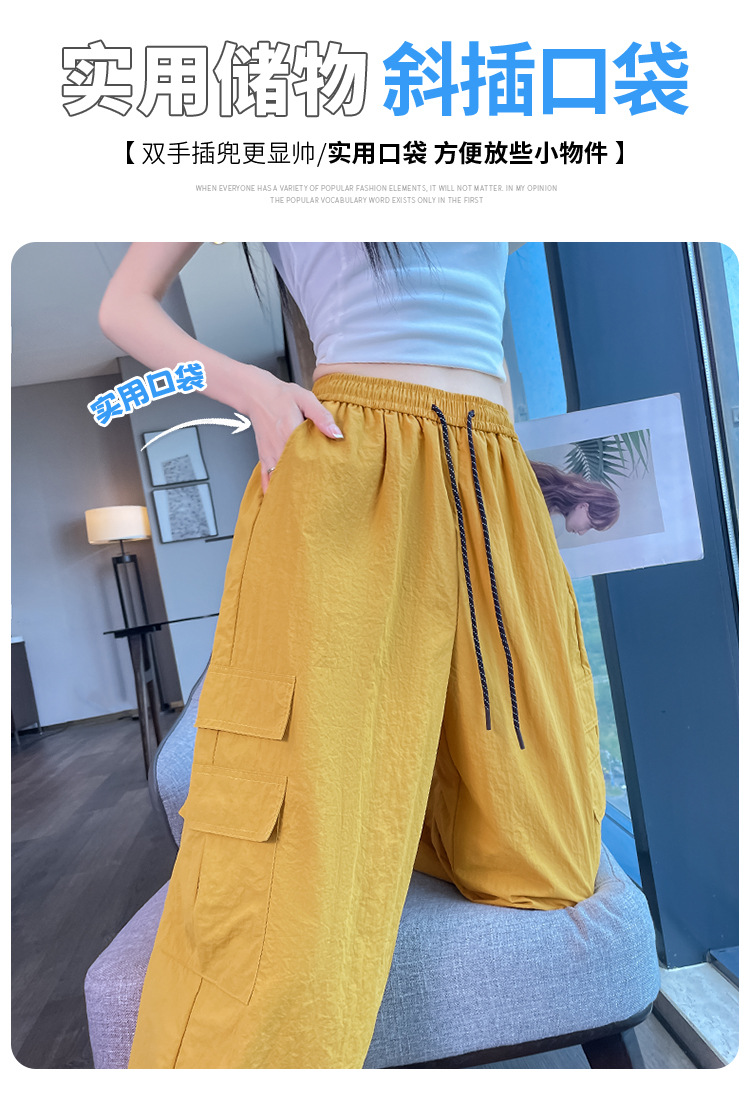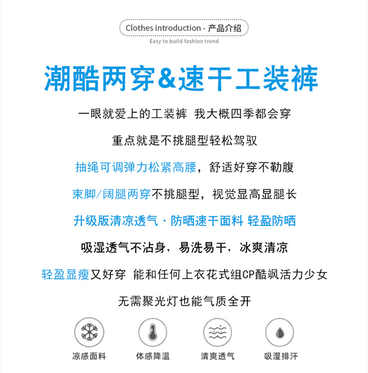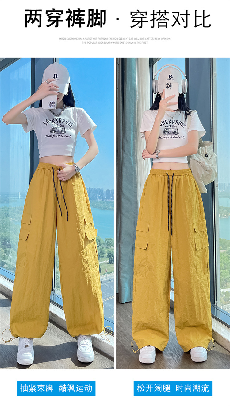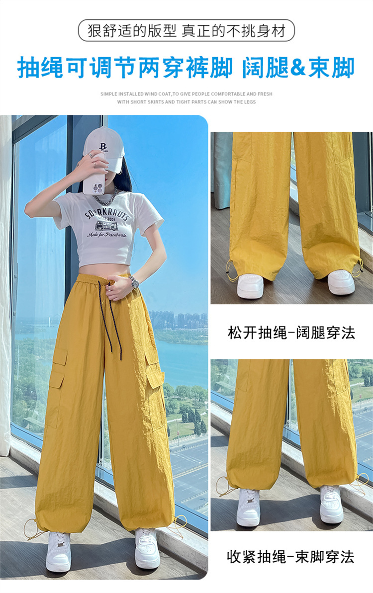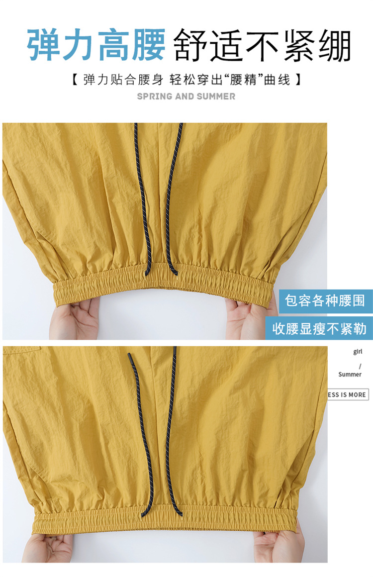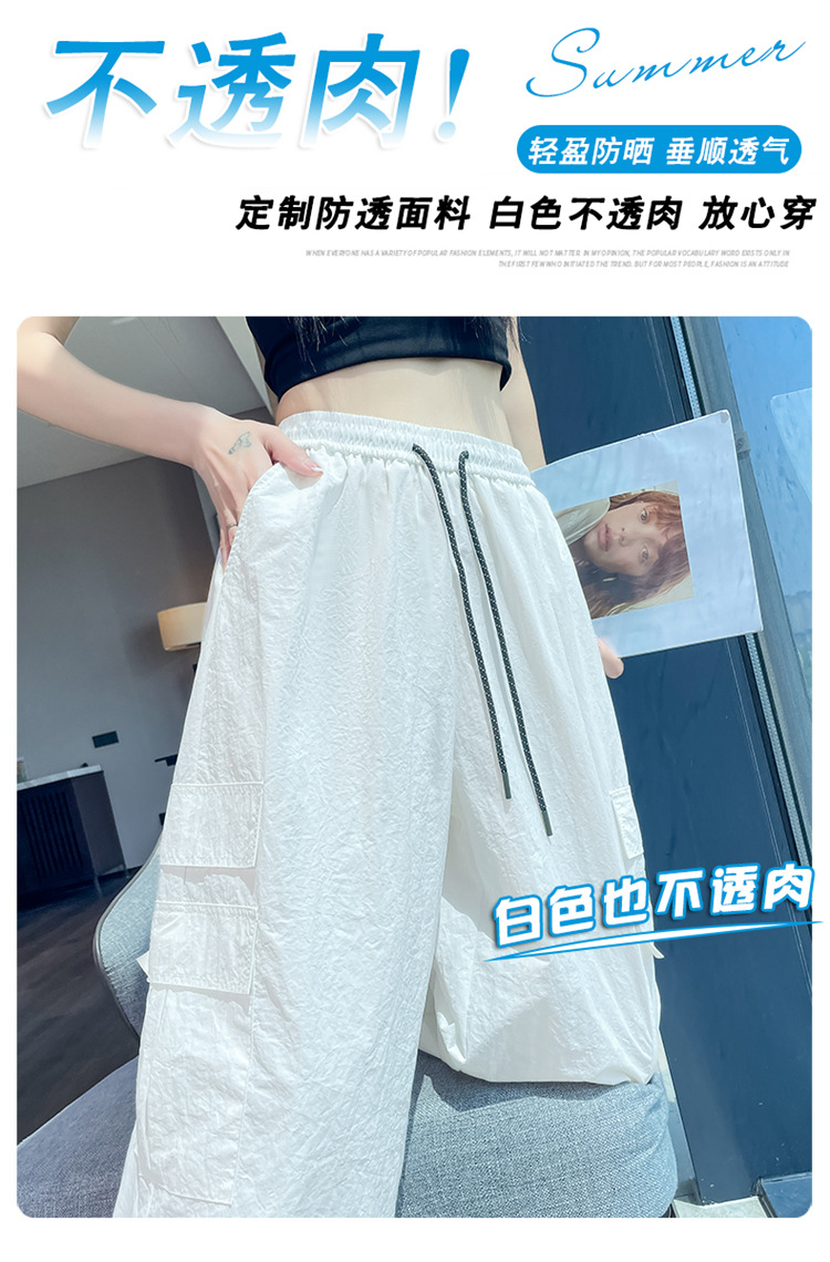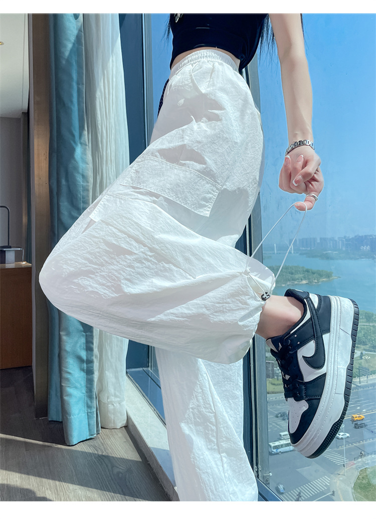 여성용 레드 아이스 실크 속건 작업복 바지 여름 얇은 탄성 높은 허리선 자외선 차단 투웨이 등산 와이드 팬츠 캐주얼스토어 가기