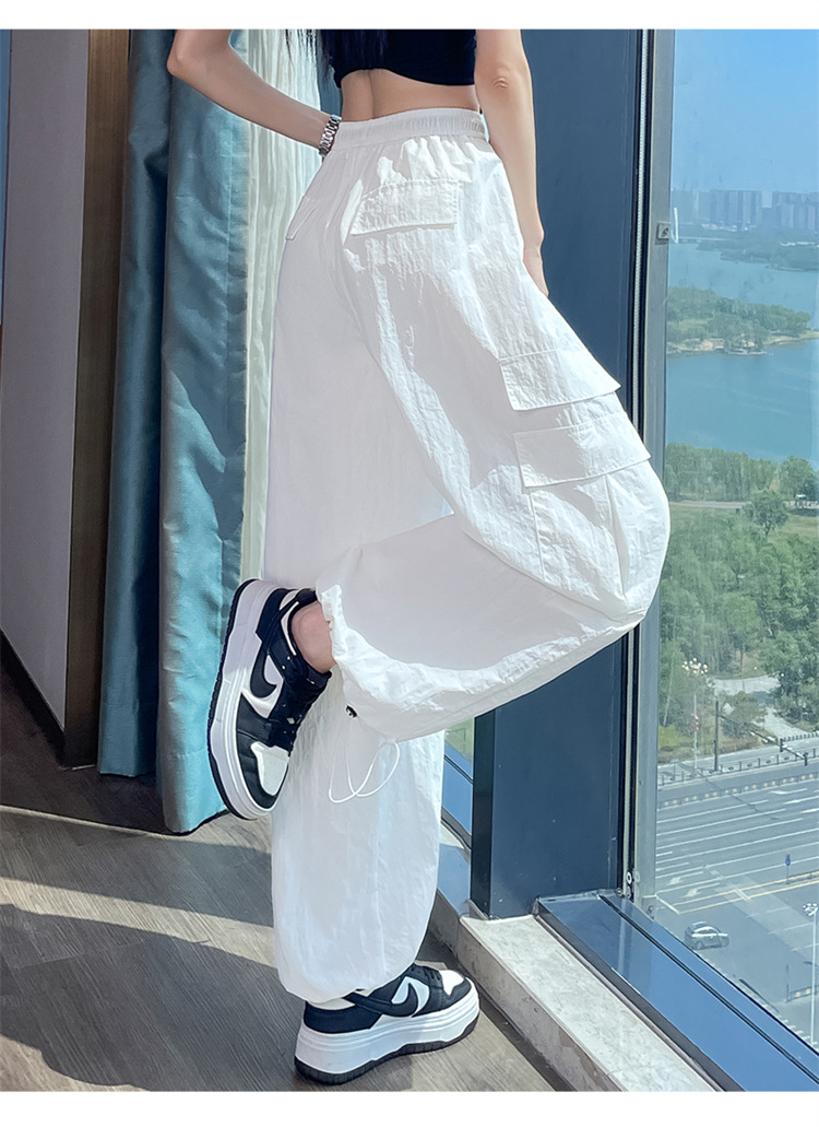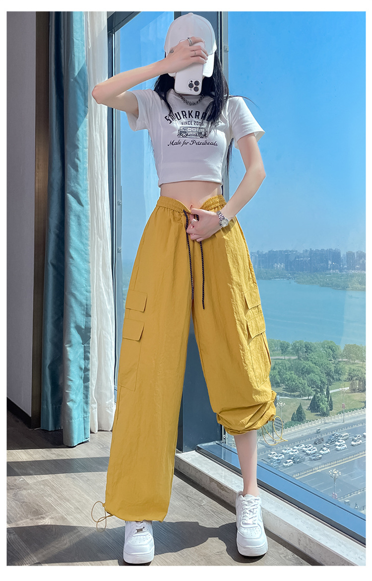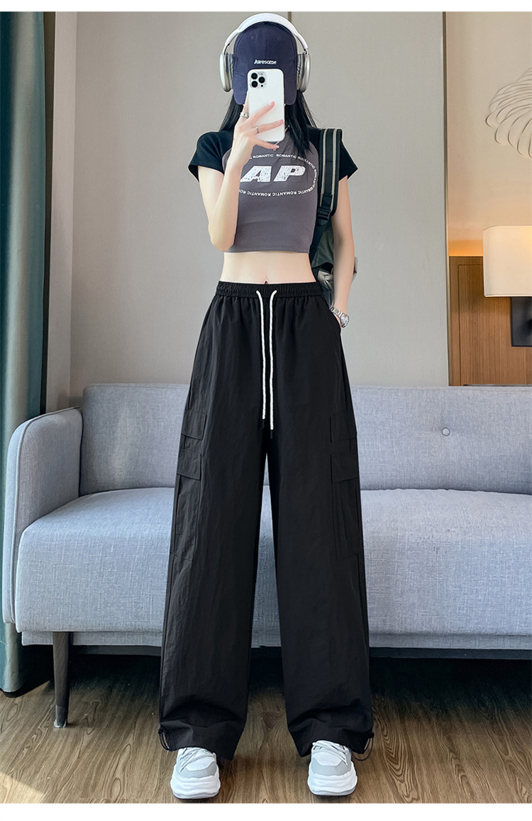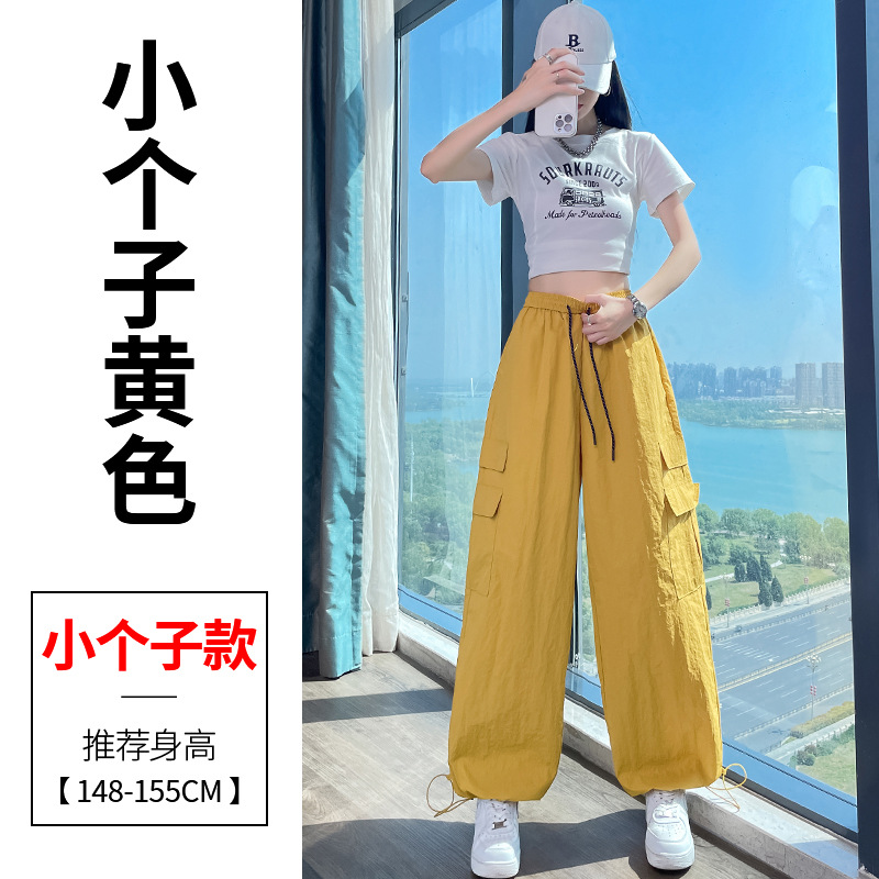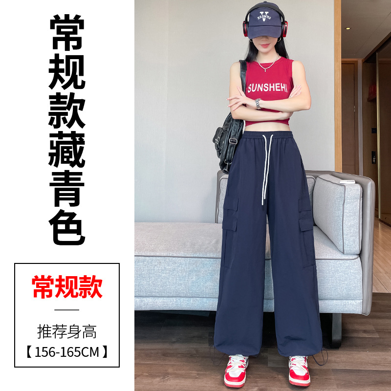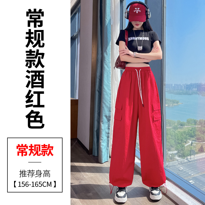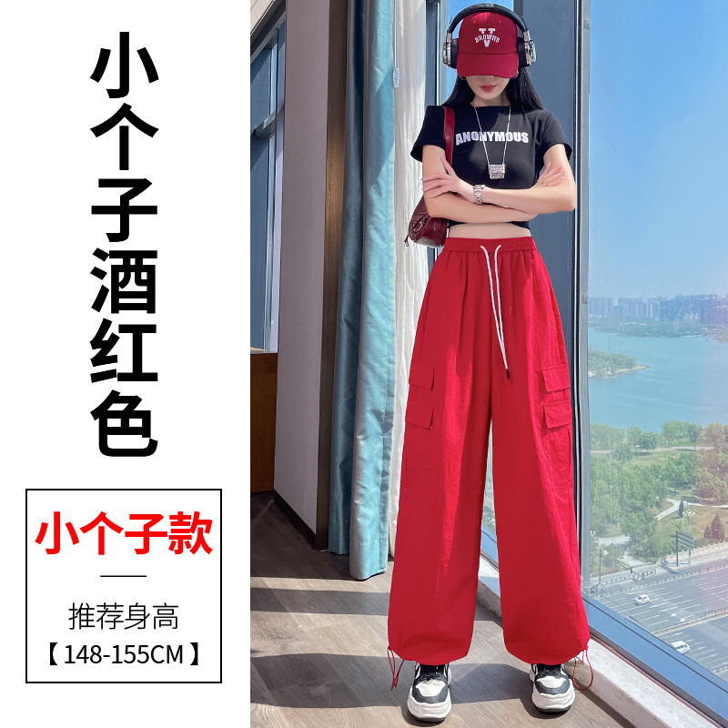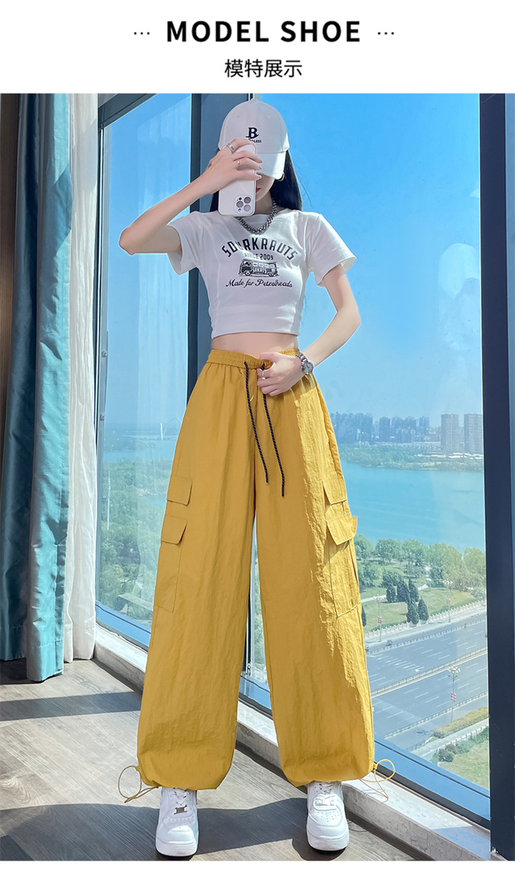 여성용 레드 아이스 실크 속건 작업복 바지 여름 얇은 탄성 높은 허리선 자외선 차단 투웨이 등산 와이드 팬츠 캐주얼스토어 가기