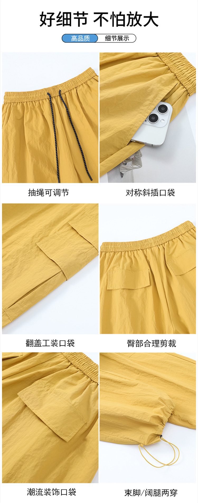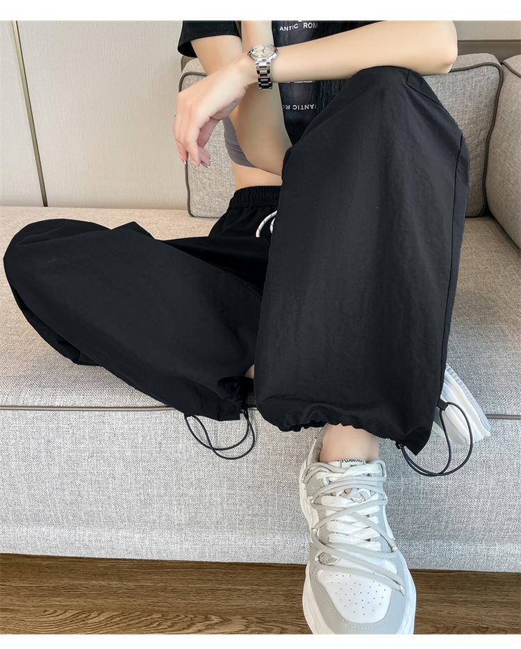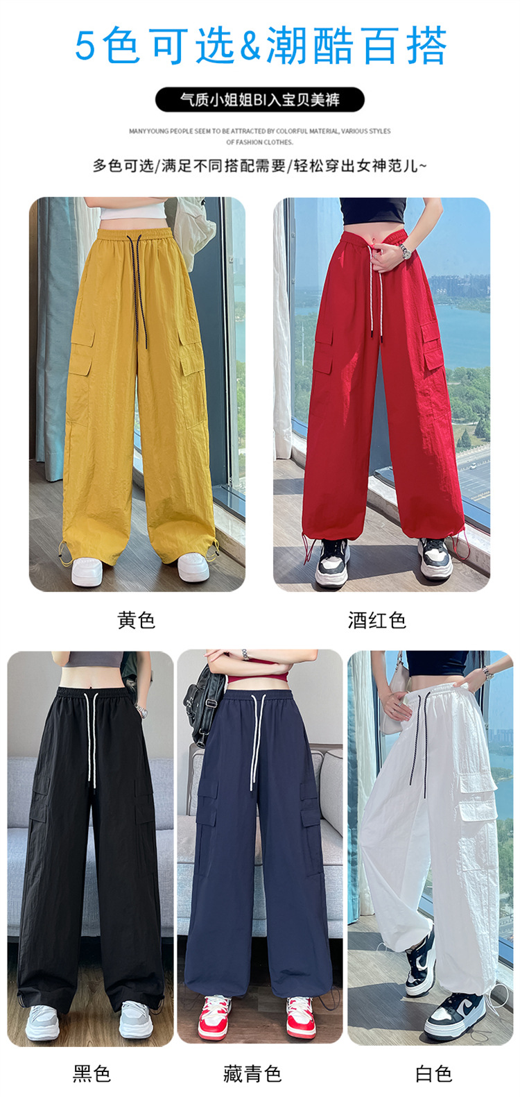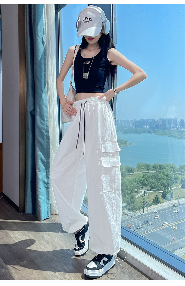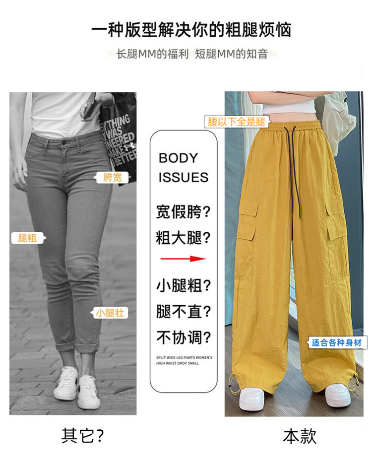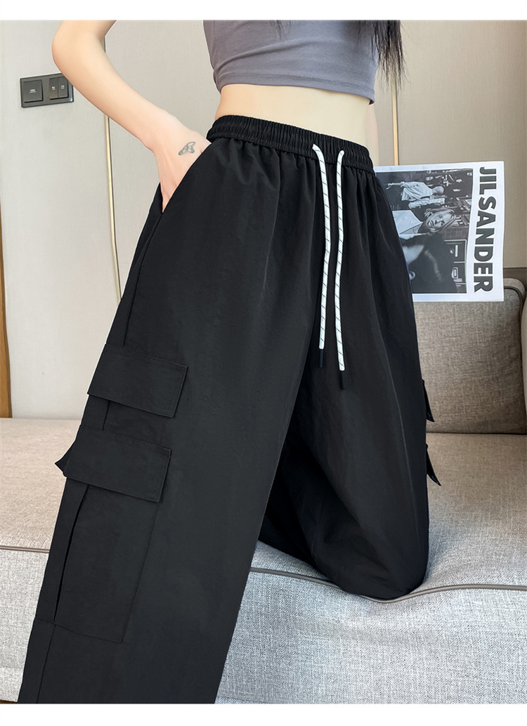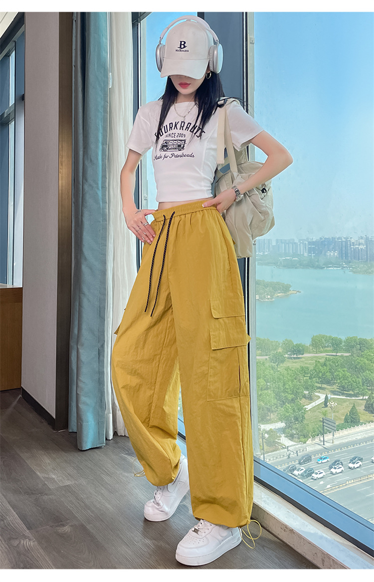여성용 레드 아이스 실크 속건 작업복 바지 여름 얇은 탄성 높은 허리선 자외선 차단 투웨이 등산 와이드 팬츠 캐주얼스토어 가기