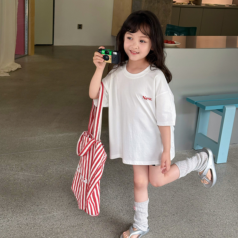 Aimo Beibei 부모-자식 스타일 외국 스타일 편지 느슨한 티셔츠 2025 여름 소년 소녀 유행 스타일 7A 등급 항균 반팔