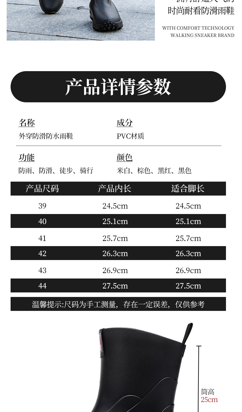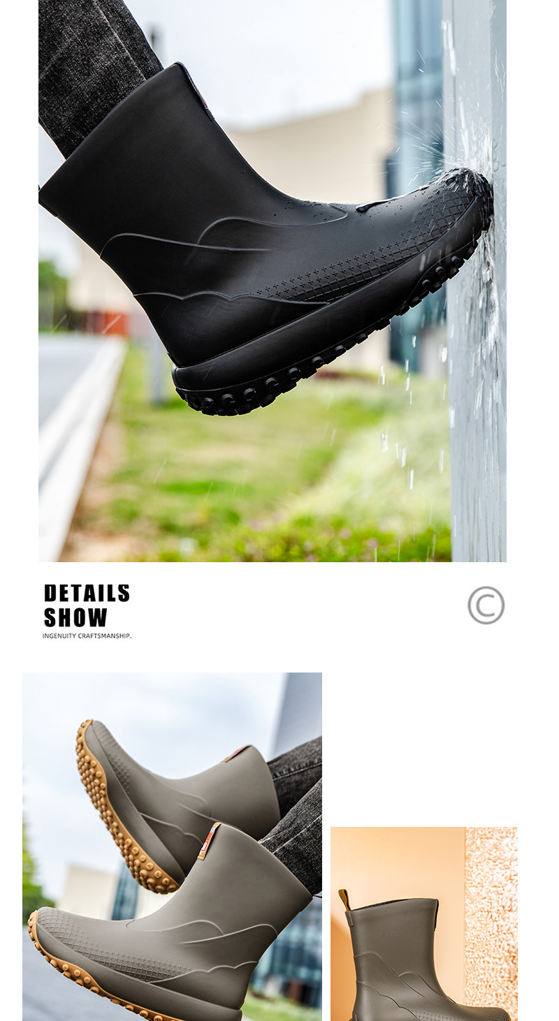 남성용 중저부 장화 2025 새로운 패션 다재다능한 야외 미끄럼 방지 방수 신발 가볍고 간단한 고무 신발 장화