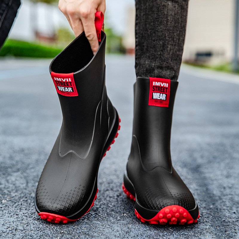 남성용 중저부 장화 2025 새로운 패션 다재다능한 야외 미끄럼 방지 방수 신발 가볍고 간단한 고무 신발 장화스토어 가기