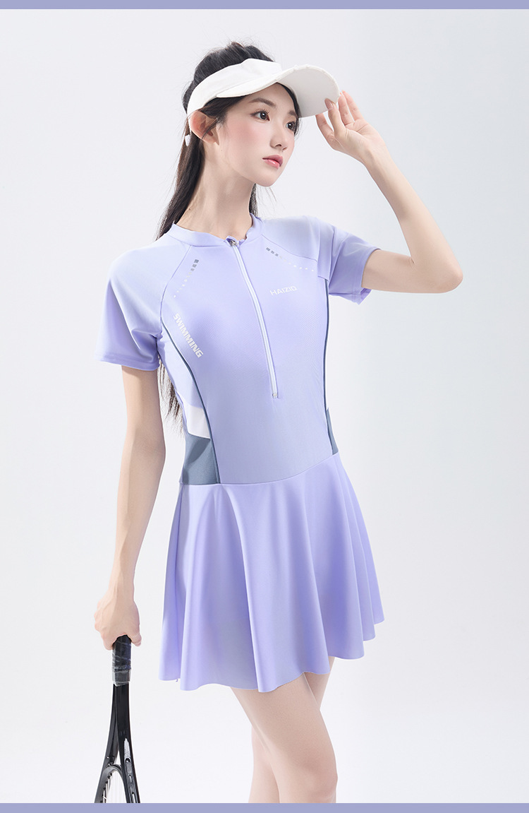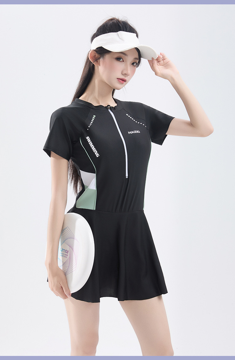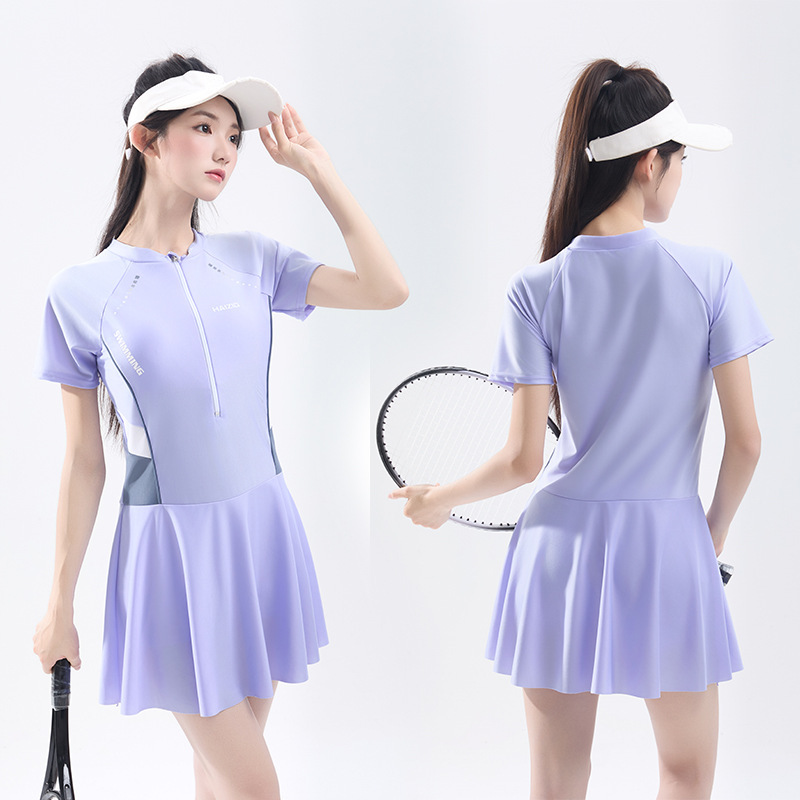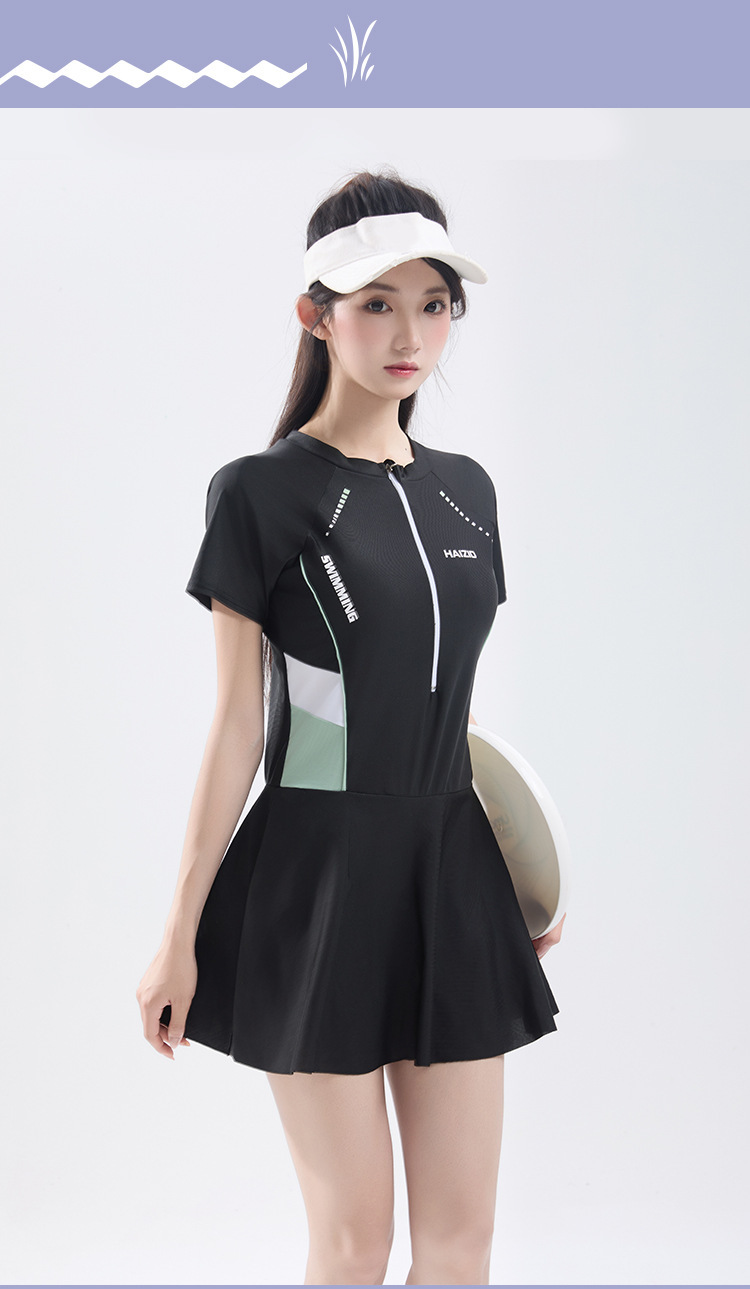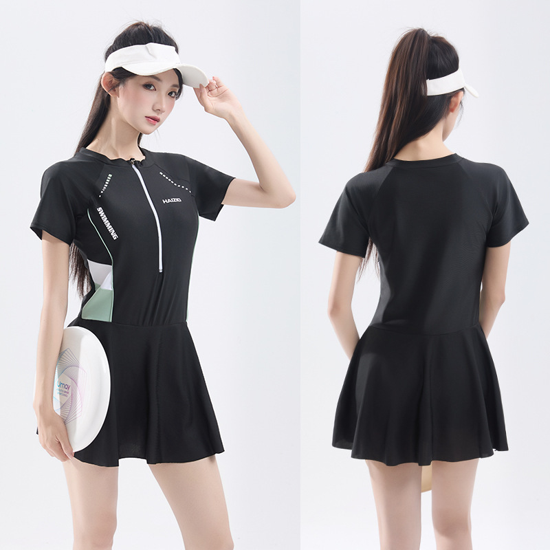 수영복 여성 원피스 스커트 수영복 2025 새로운 여성 보수적 슬리밍 태양 보호 온천 수영복 도매스토어 가기