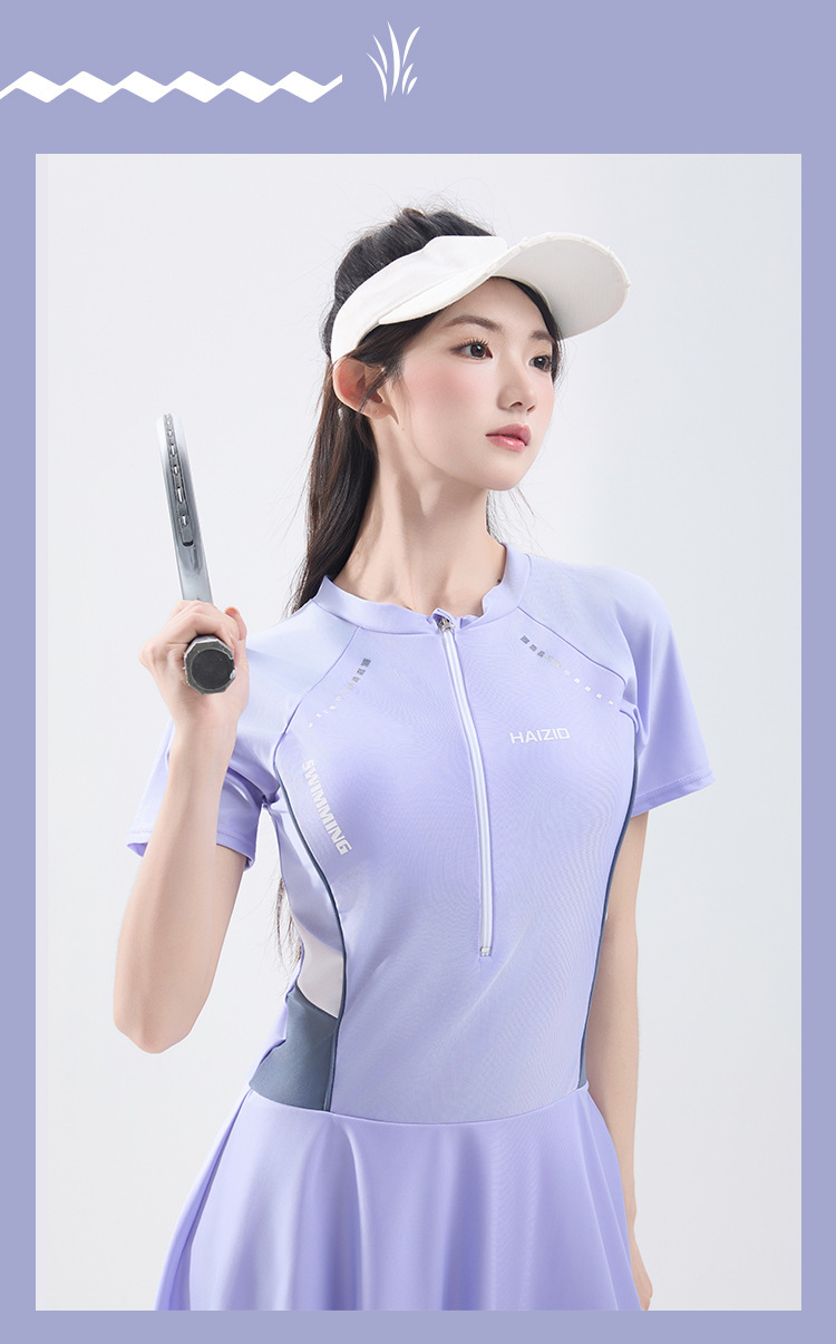 수영복 여성 원피스 스커트 수영복 2025 새로운 여성 보수적 슬리밍 태양 보호 온천 수영복 도매