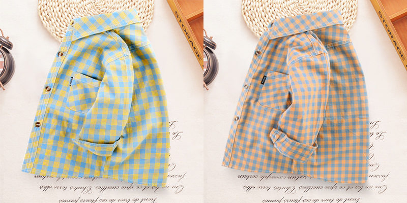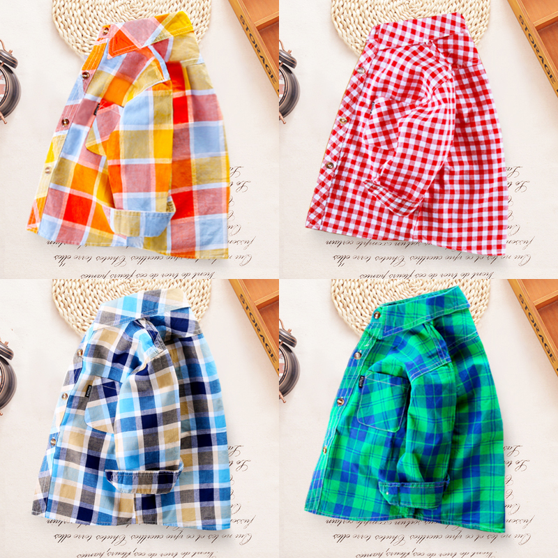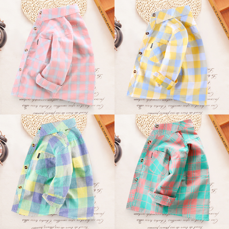 소년 순면 셔츠 긴팔 얇은 베이비 코트 여름 탑 중대형 어린이 봄, 가을 아동복 아동 격자 무늬 Shihuai