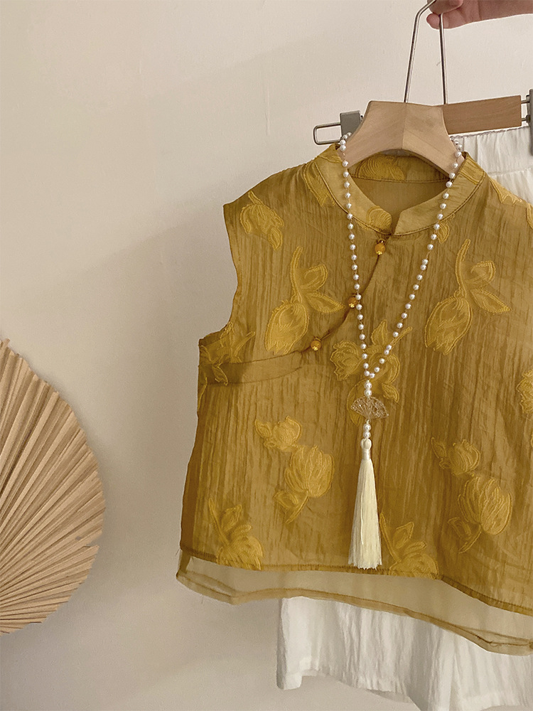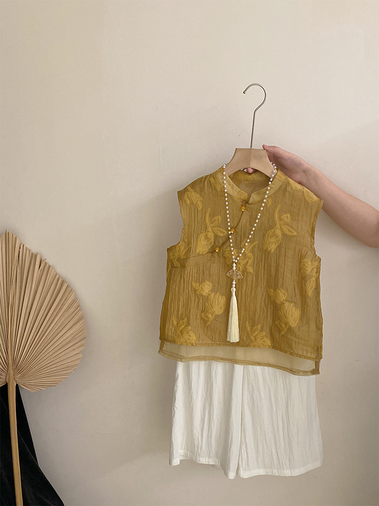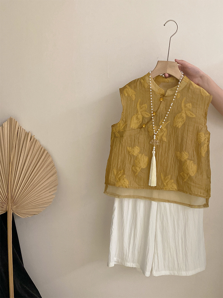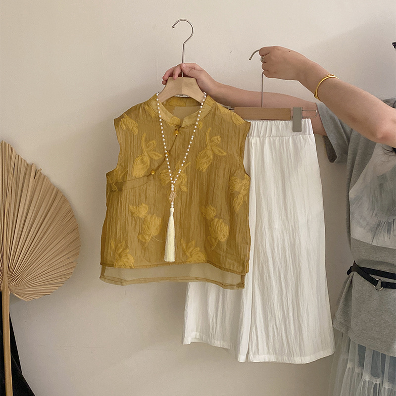 새로운 중국 패션 세트 여성의 무거운 자수 민소매 톱 2025 우아한 디자인 슬리밍 텐셀 투피스 유행 세트스토어 가기