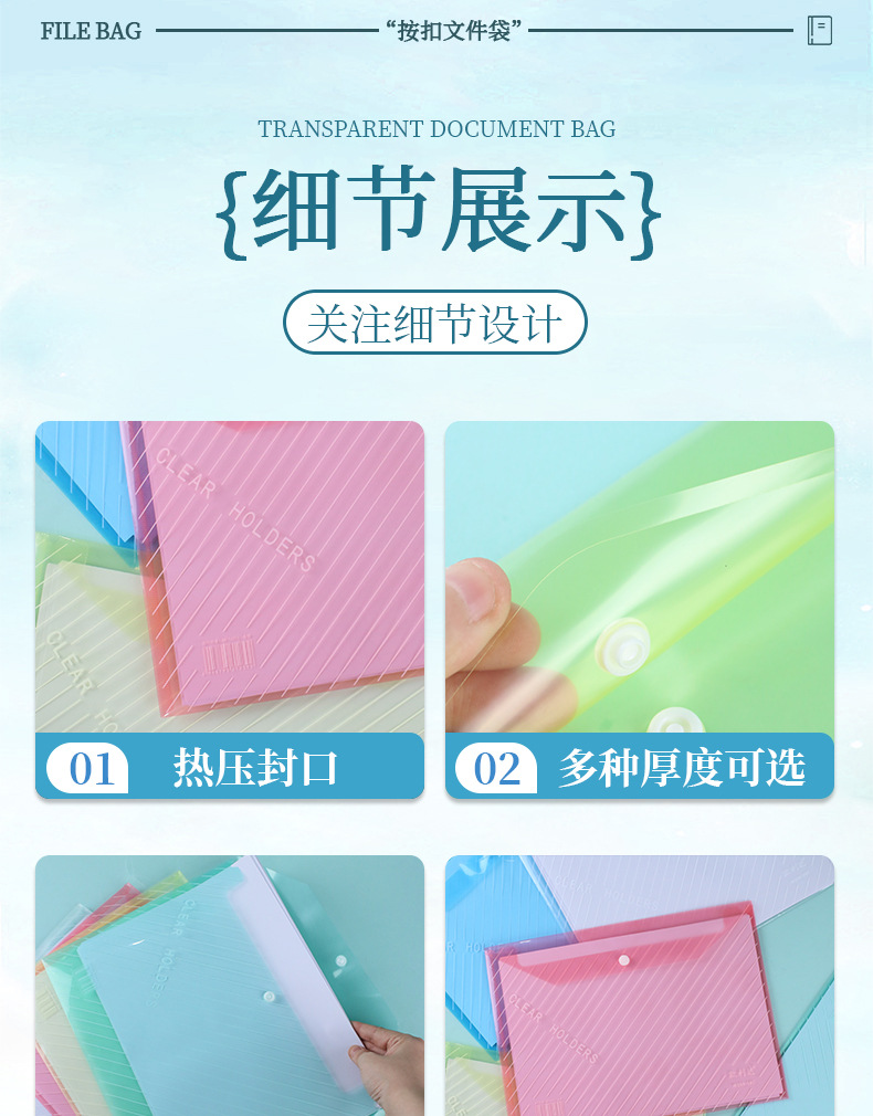 크로스보더 스냅백 수납 시험지 가방 두꺼운 A4 파일 가방 문서 가방 투명 사무용 파일 가방스토어 가기