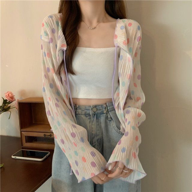여성용 자외선 차단 셔츠 재킷 여름 얇은 2025 새로운 디자인 슈퍼 요정 짧은 카디건 쉬폰 긴팔 탑