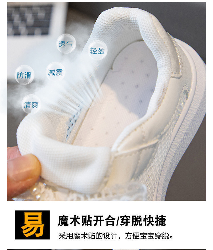 Dropshipping 여아 신발, 아동용 흰색 신발, 여름 통기성 메쉬 신발, 학생 운동화, 여아 로우탑 운동화