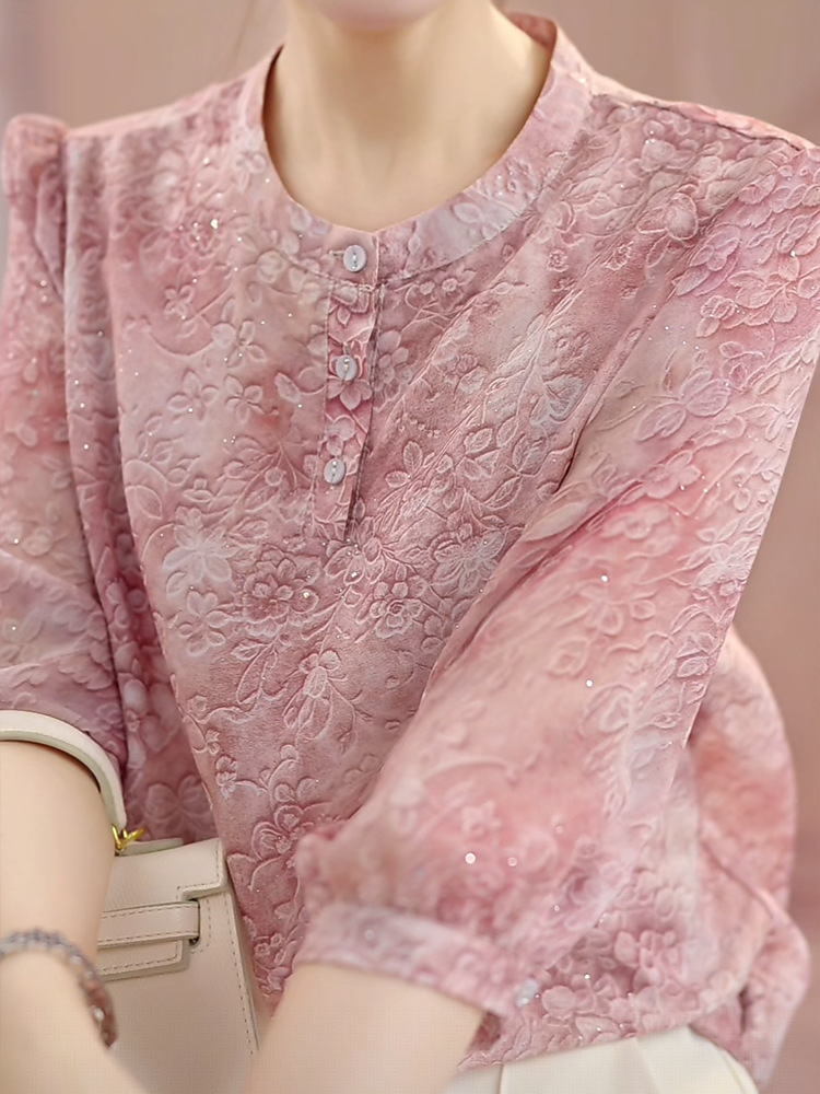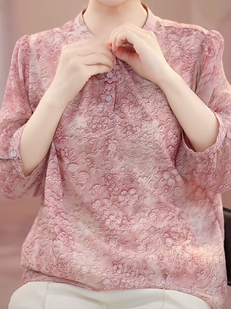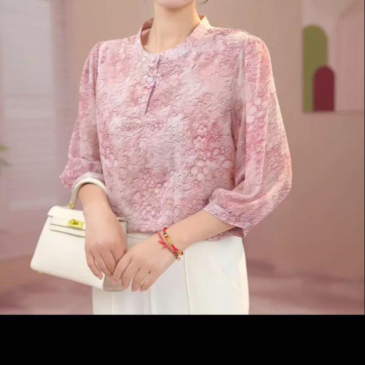 여성을 위한 가벼운 고급 쉬폰 셔츠 2025 새로운 여름 고급 중년 어머니의 나이를 줄여주는 스타일리시한 셔츠 슬리밍 탑스토어 가기