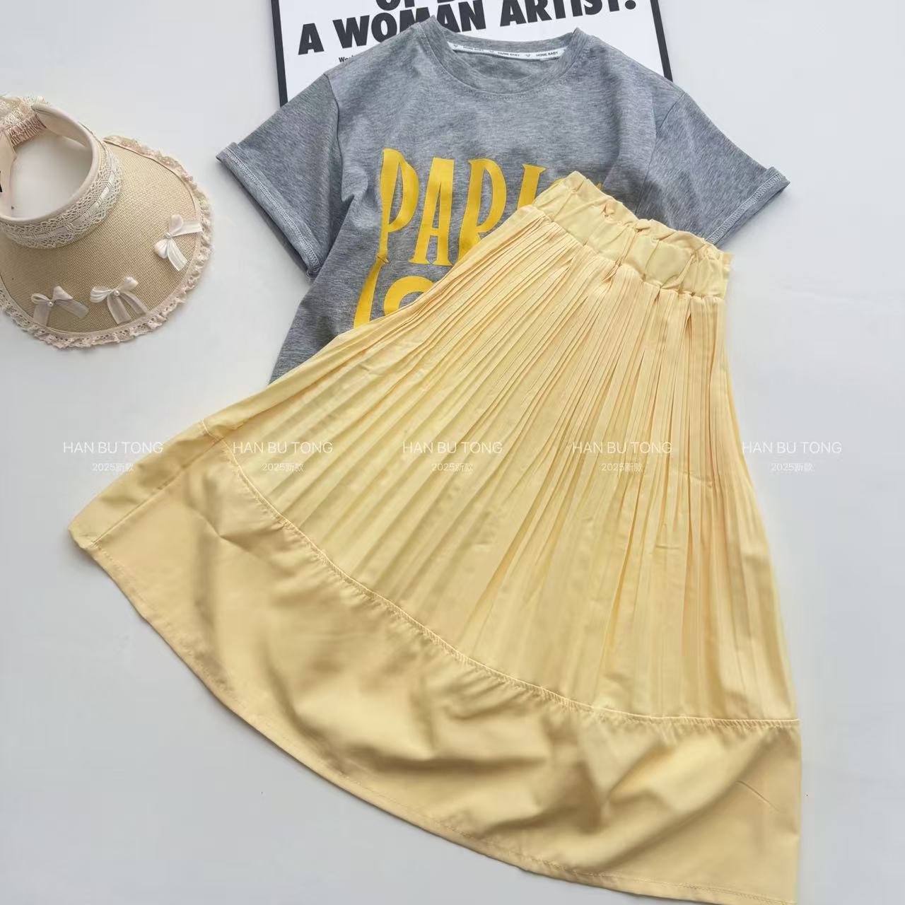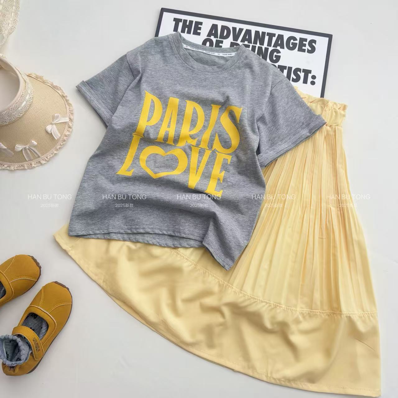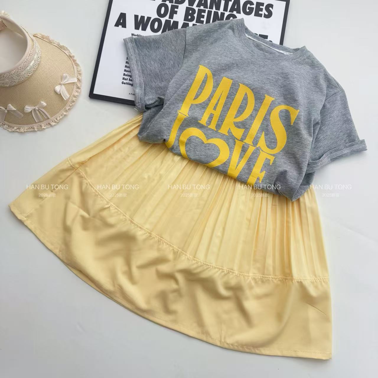 여자 여름 정장 2025 새로운 스타일 어린이 반팔 티셔츠 스커트 여름 투피스 세트 큰 여자를위한 유행스토어 가기