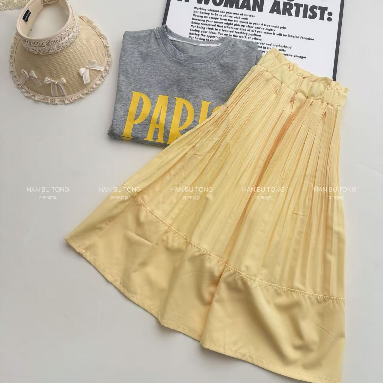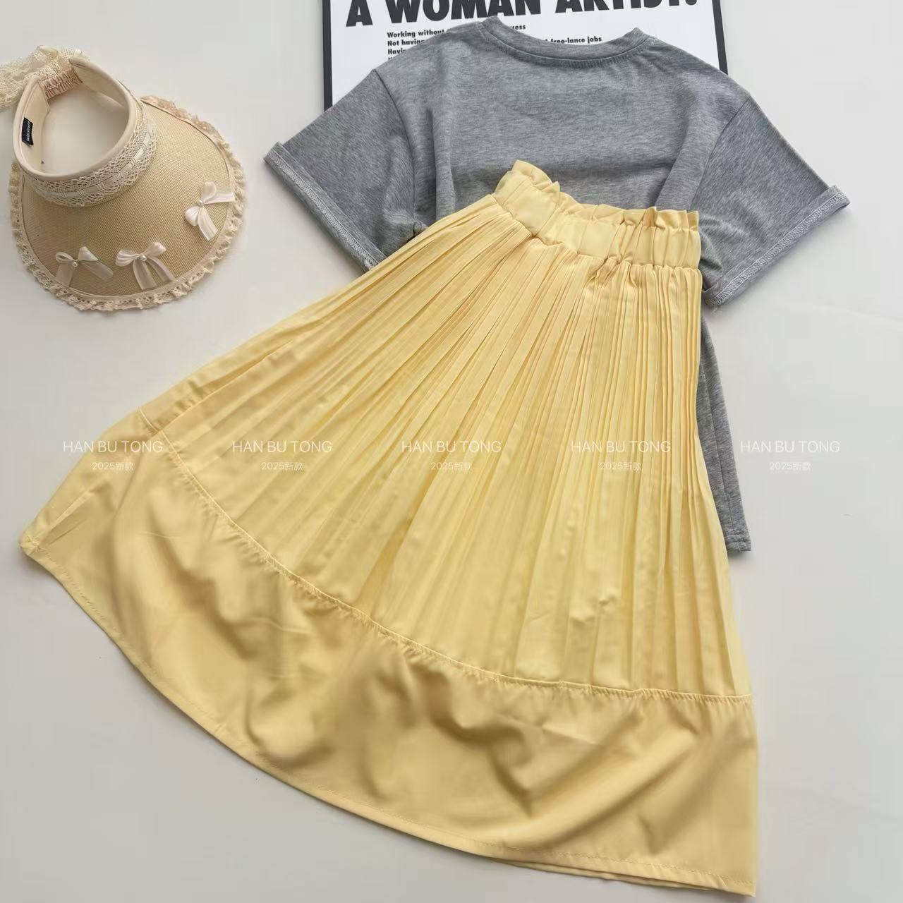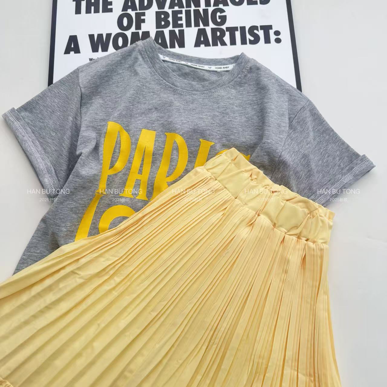 여자 여름 정장 2025 새로운 스타일 어린이 반팔 티셔츠 스커트 여름 투피스 세트 큰 여자를위한 유행스토어 가기