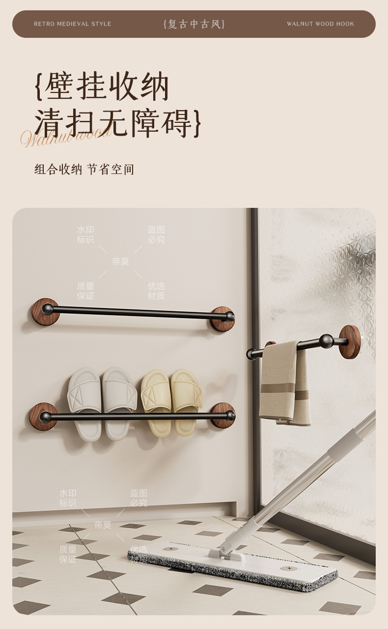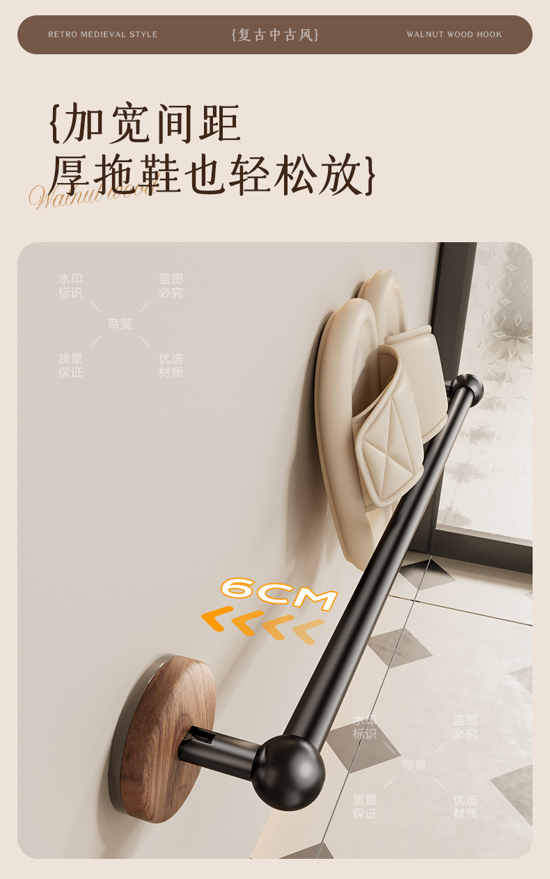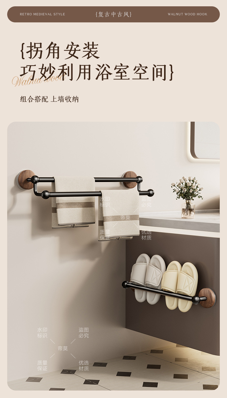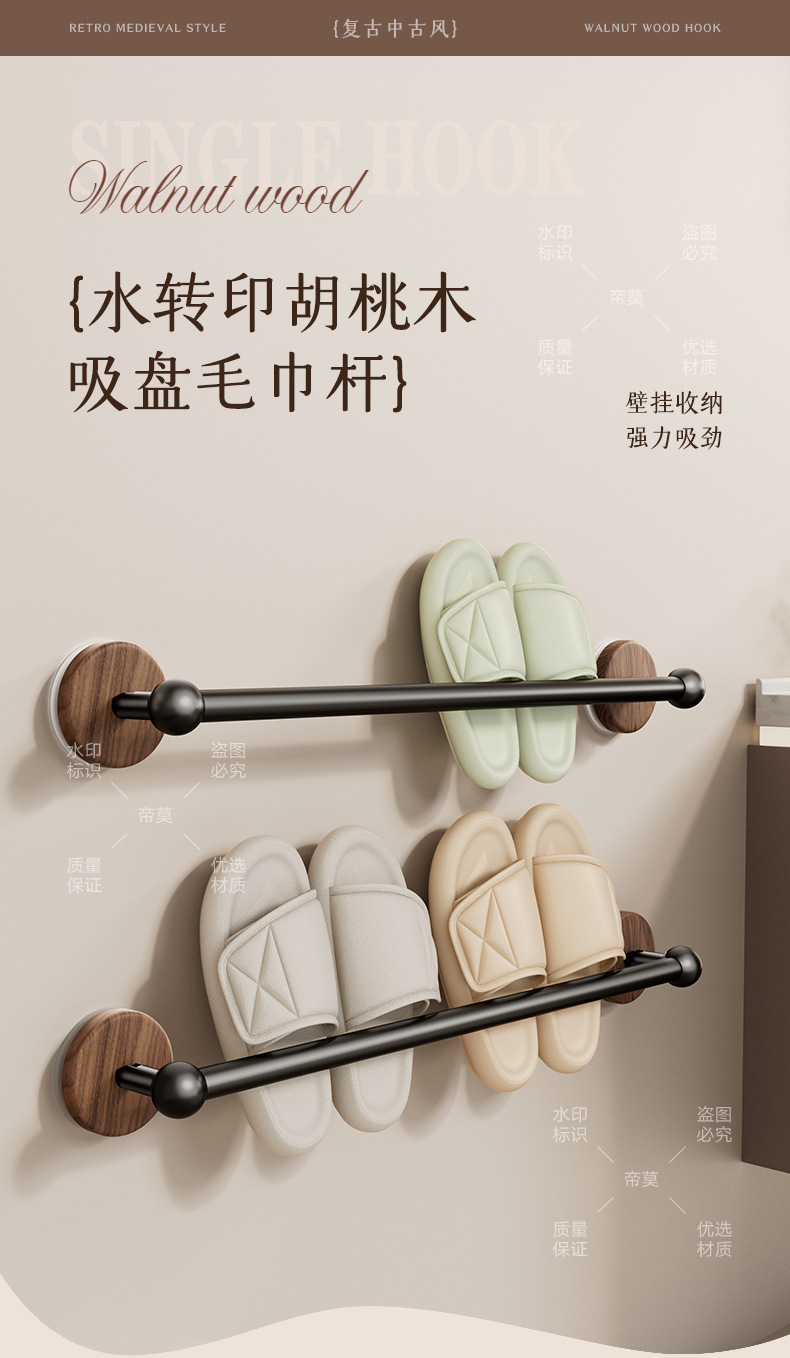 • 흡착컵 - 중세풍 블랙 - 3인용 슬리퍼봉 70cm