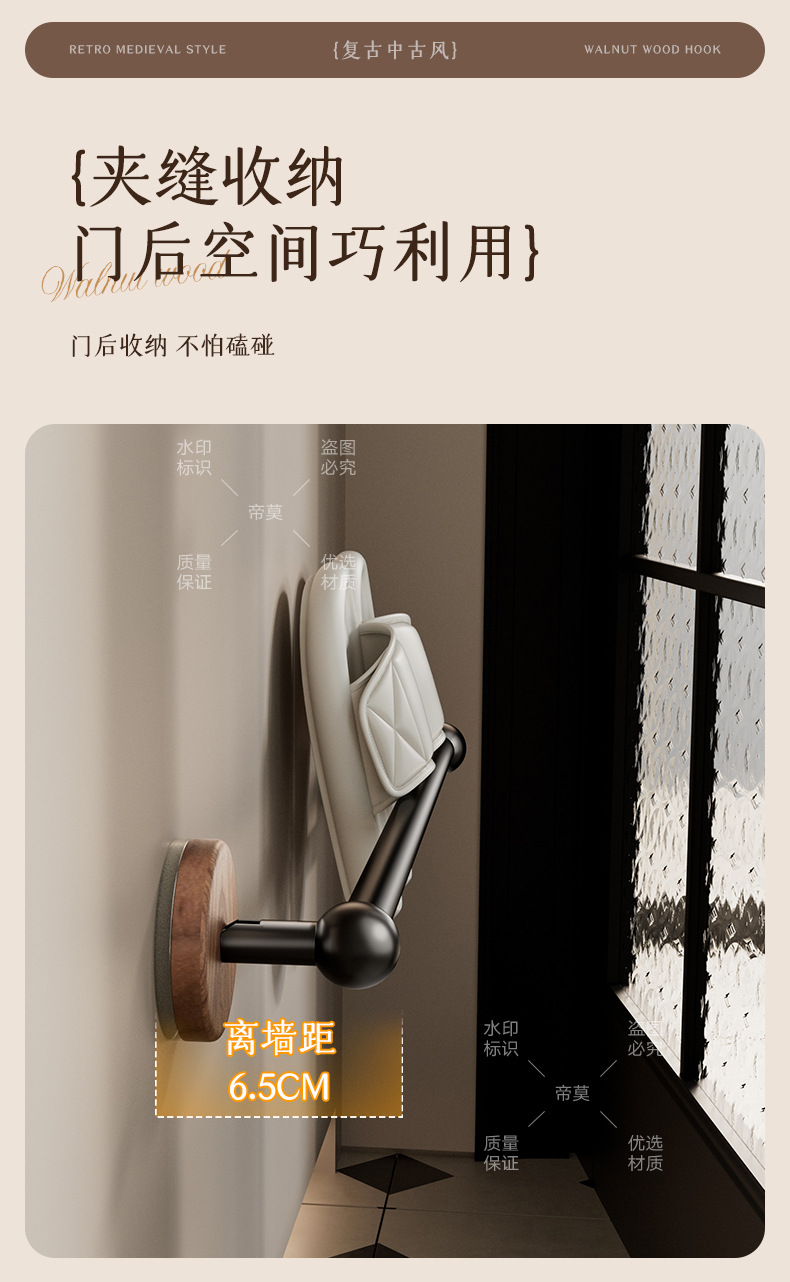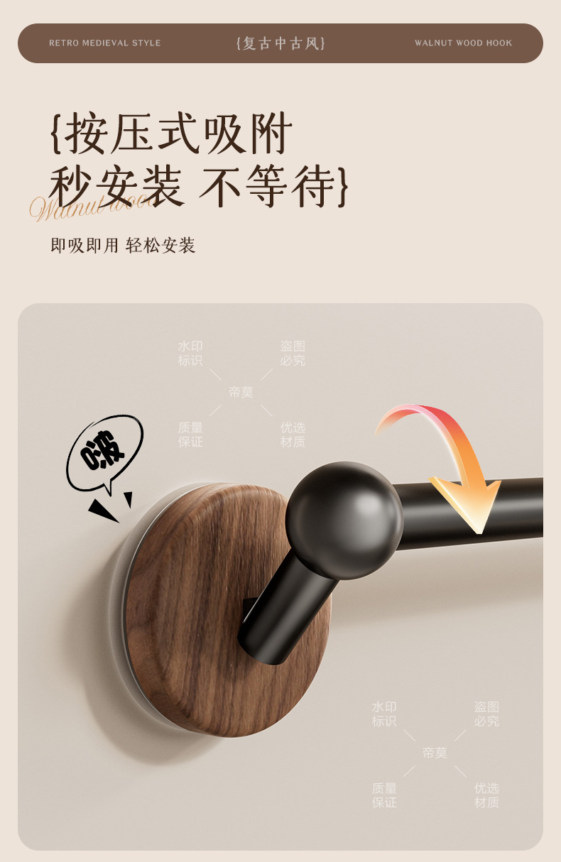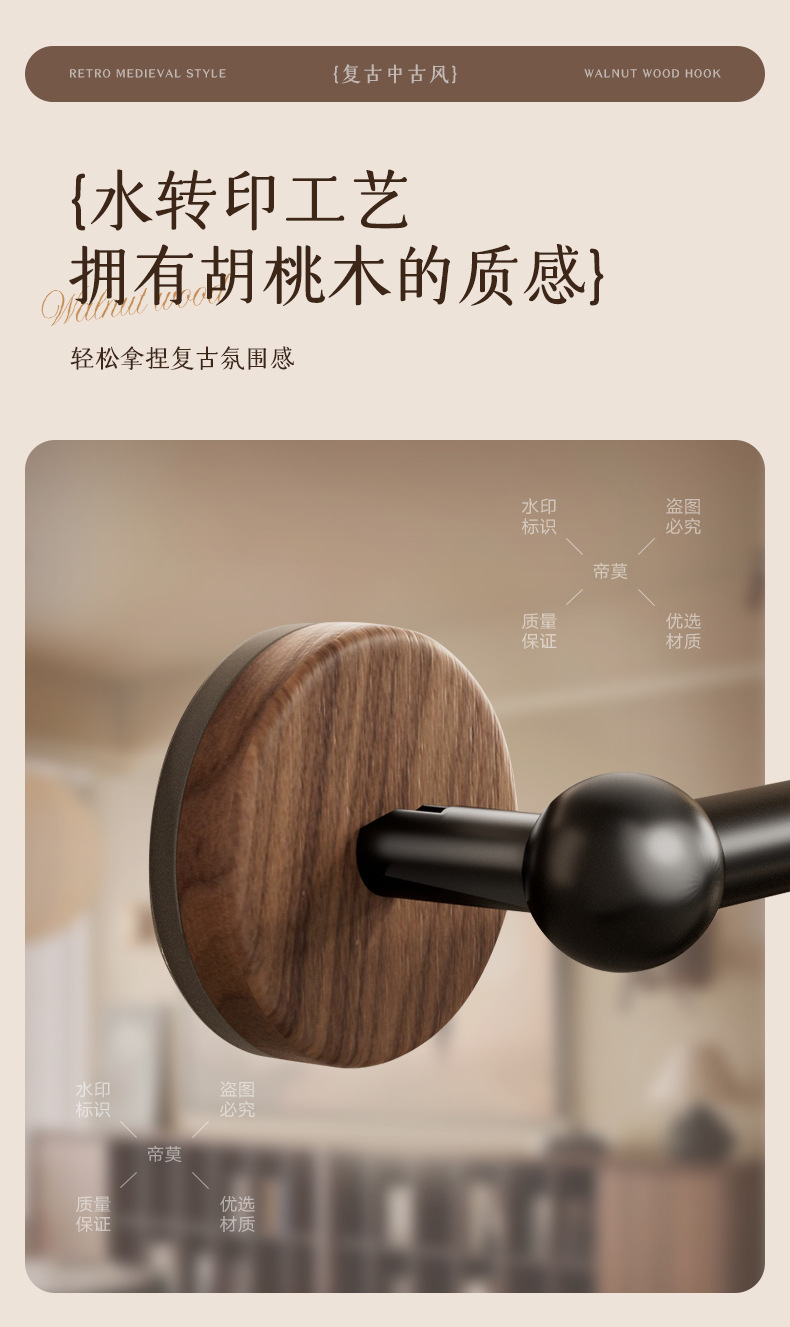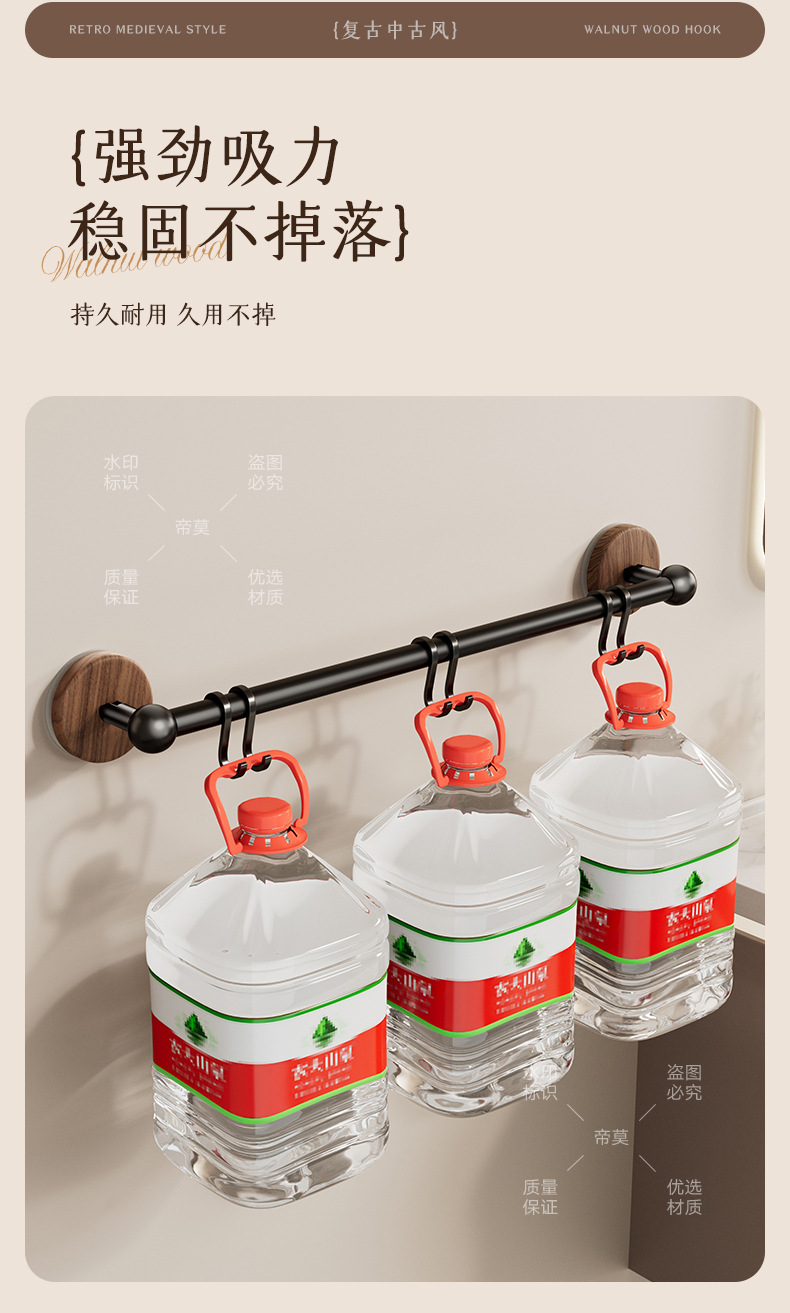 • 흡착컵 - 중세풍 블랙 - 3인용 슬리퍼봉 70cm