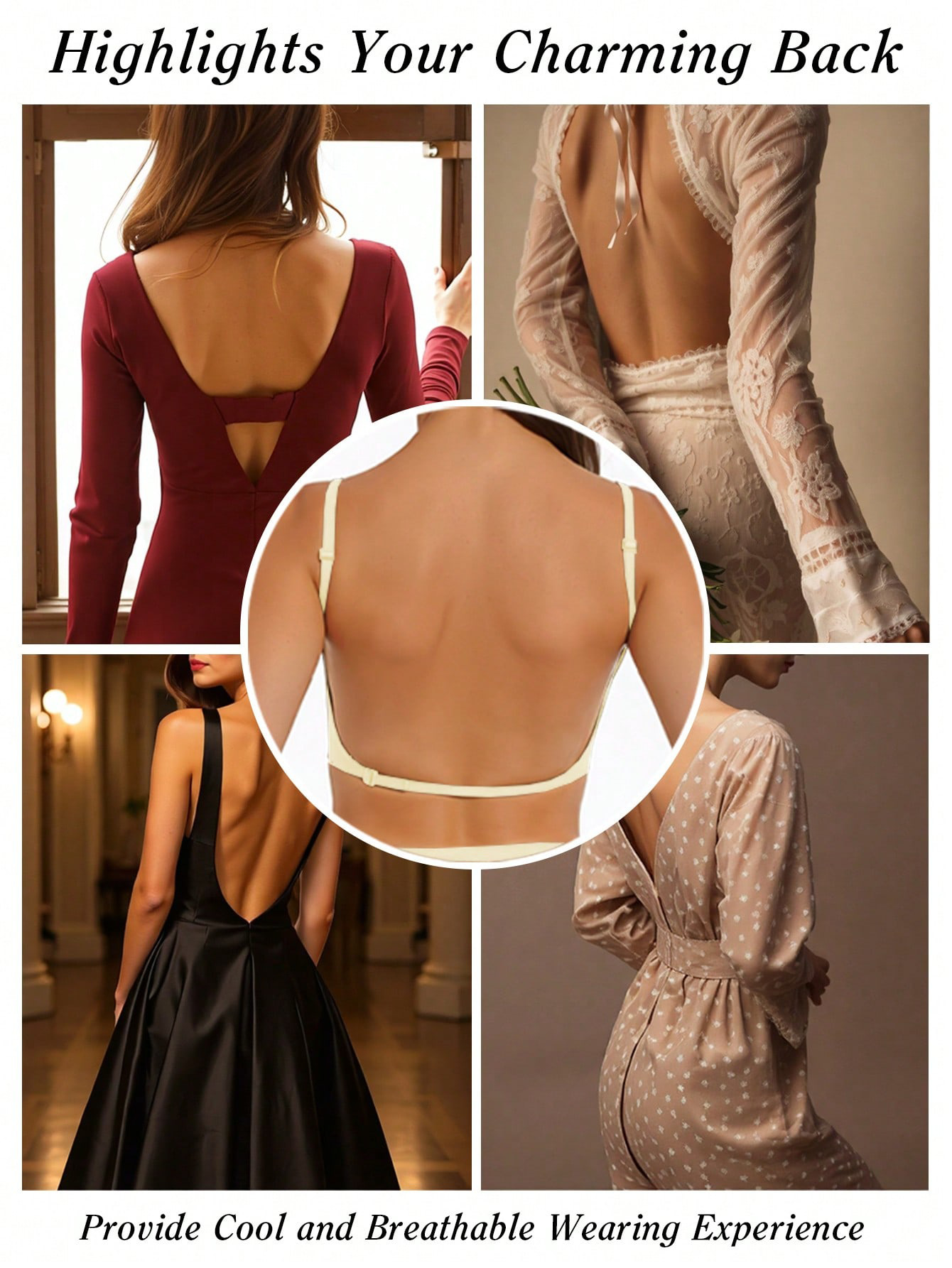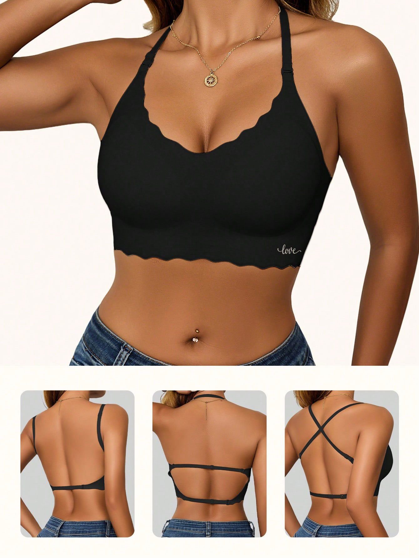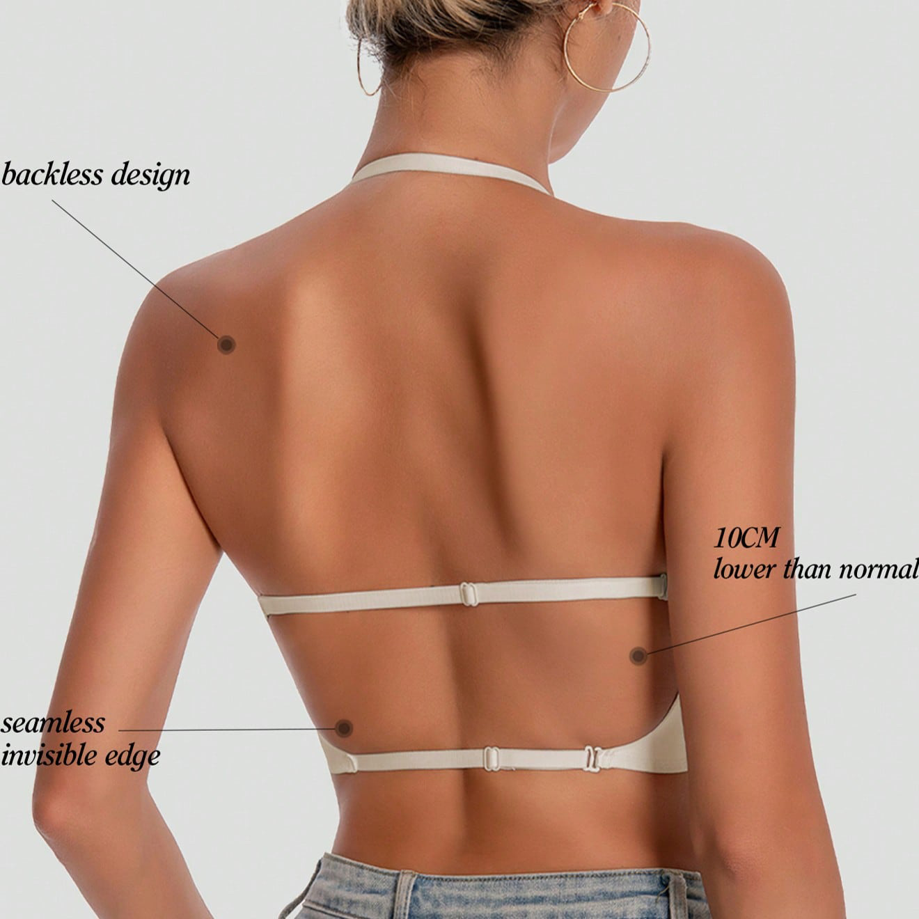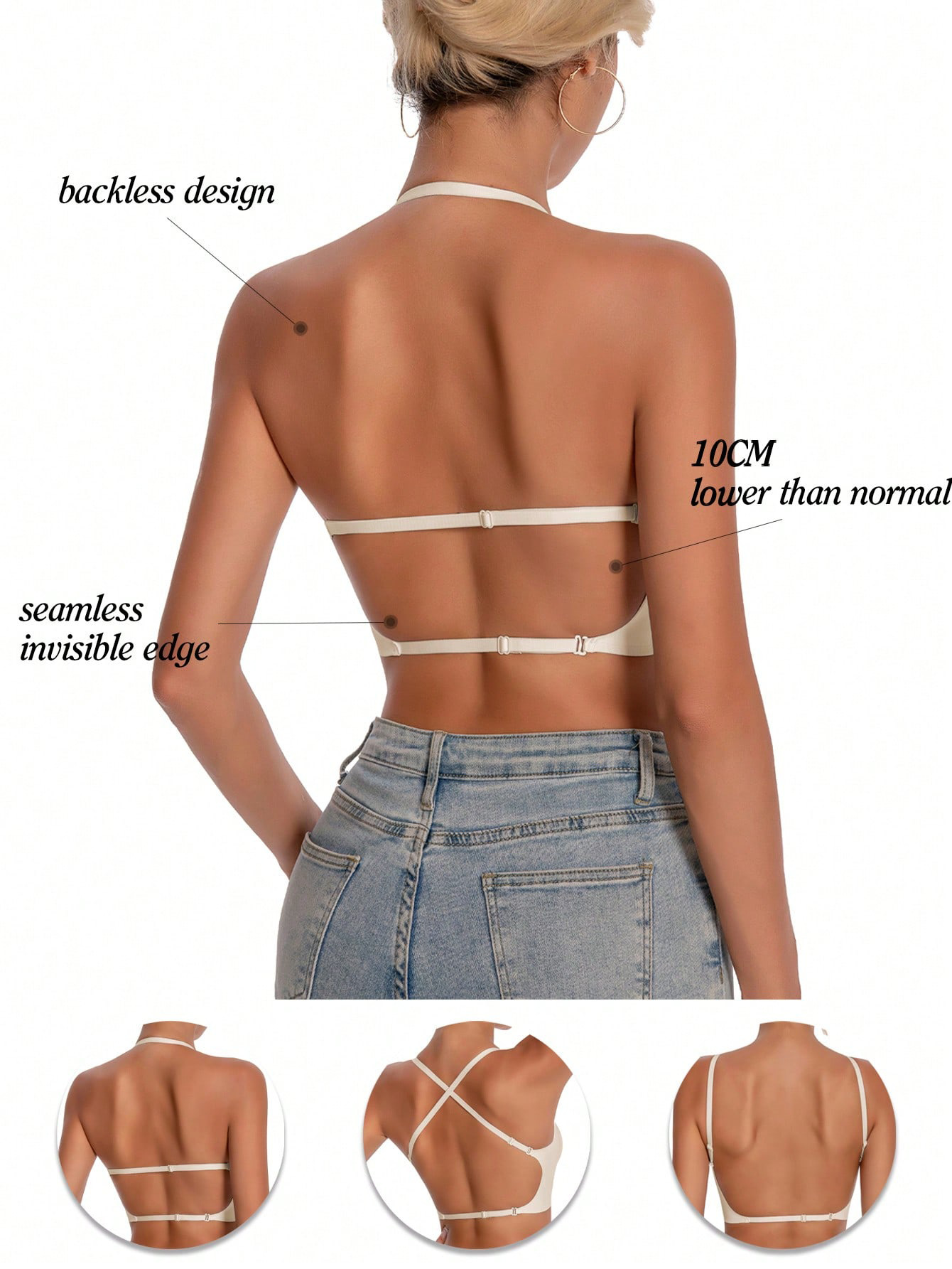 Shein의 인기 있는 유럽과 미국의 심리스 빅 백리스 브라 U자형 아름다운 백 브라 작은 가슴 푸시업 외부 브라(가슴 패드 포함)