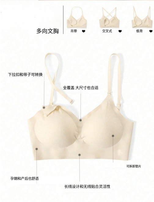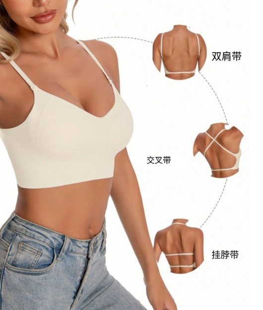 Shein의 인기 있는 유럽과 미국의 심리스 빅 백리스 브라 U자형 아름다운 백 브라 작은 가슴 푸시업 외부 브라(가슴 패드 포함)스토어 가기