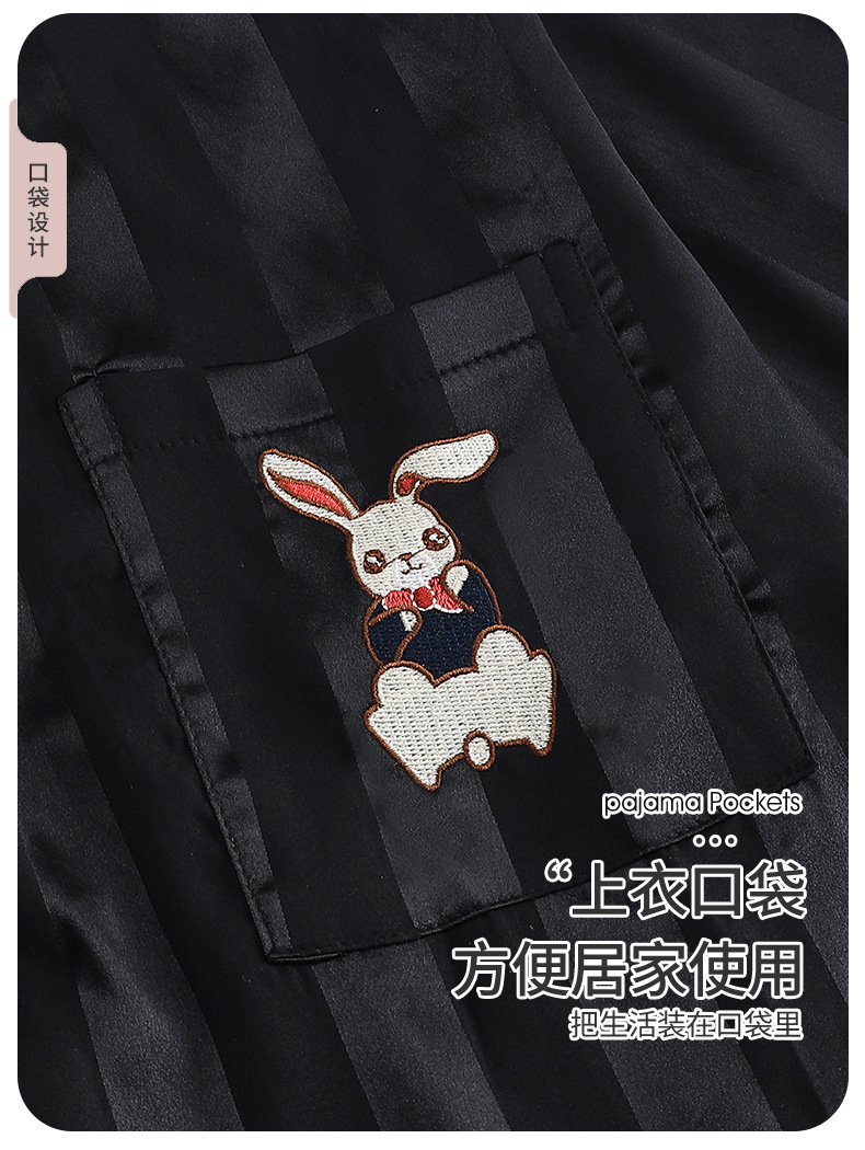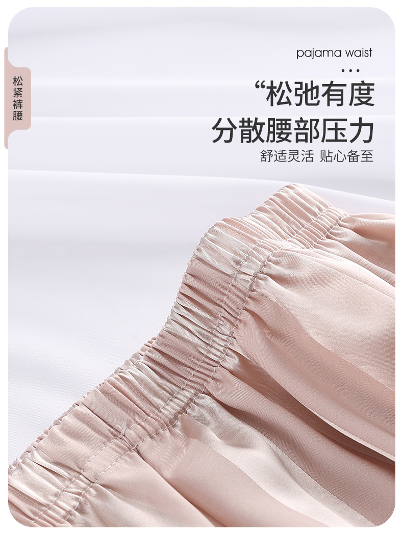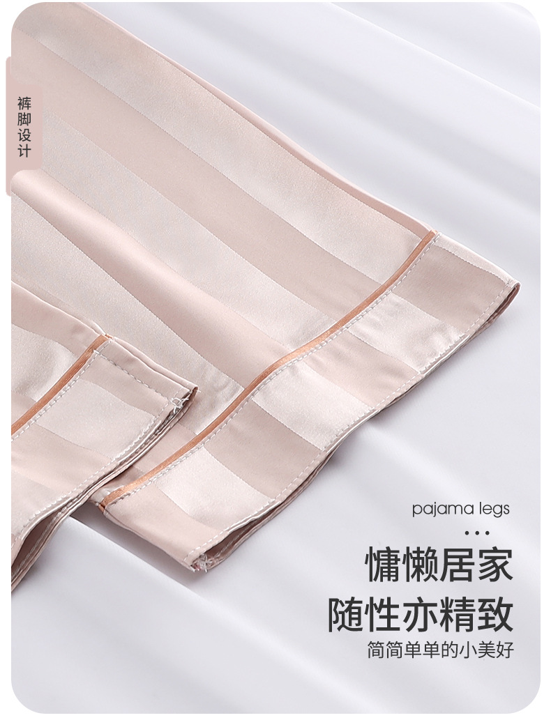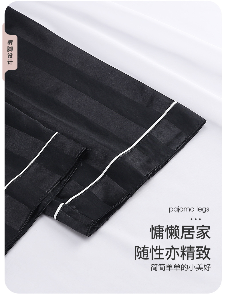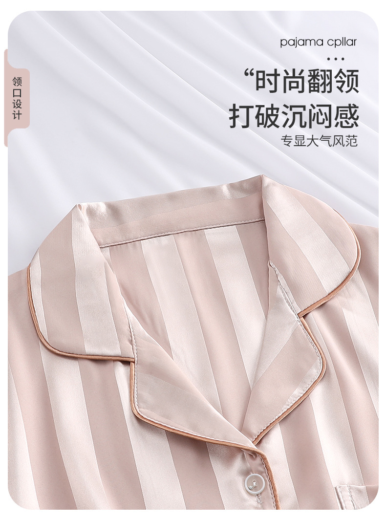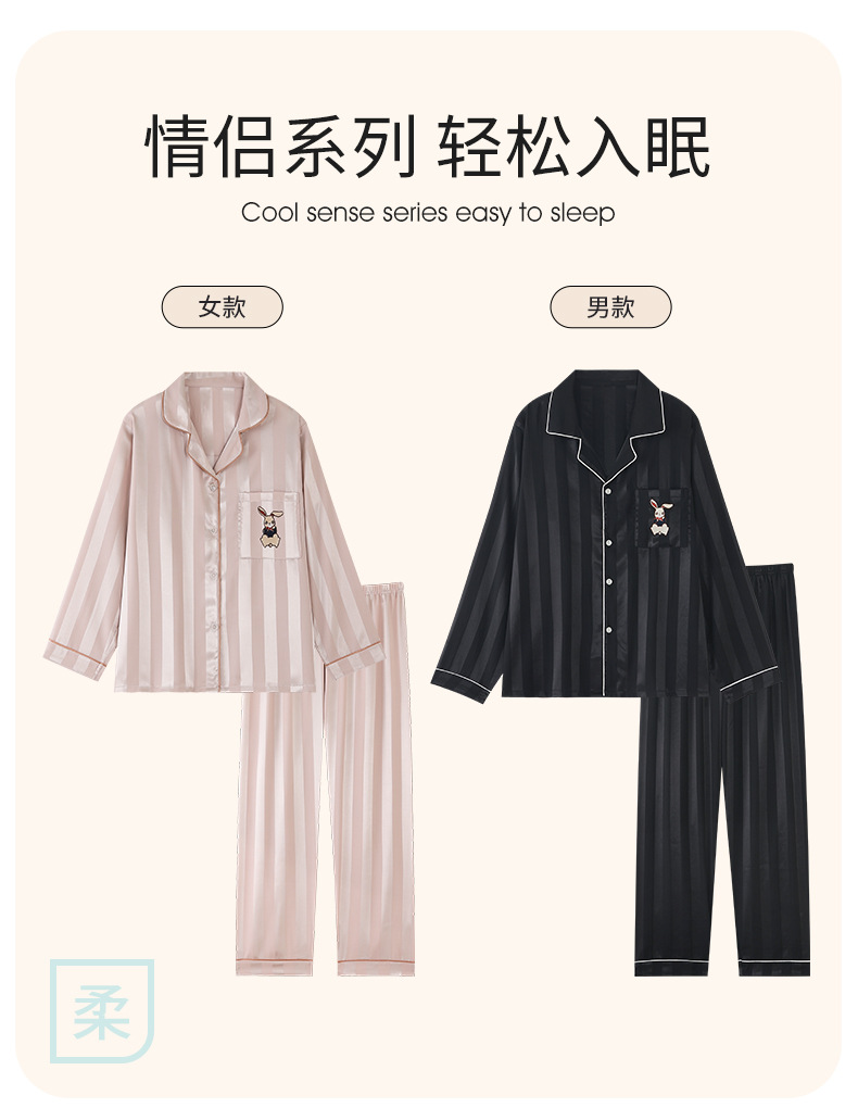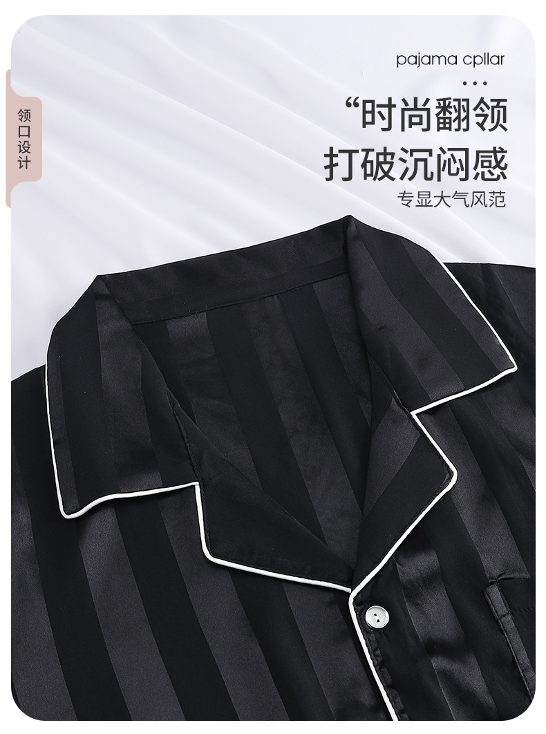 남성과 여성을 위한 고급 캐주얼 스트라이프 잠옷, 봄과 가을 얼음 실크 긴팔 실크 여름 남성 가정복