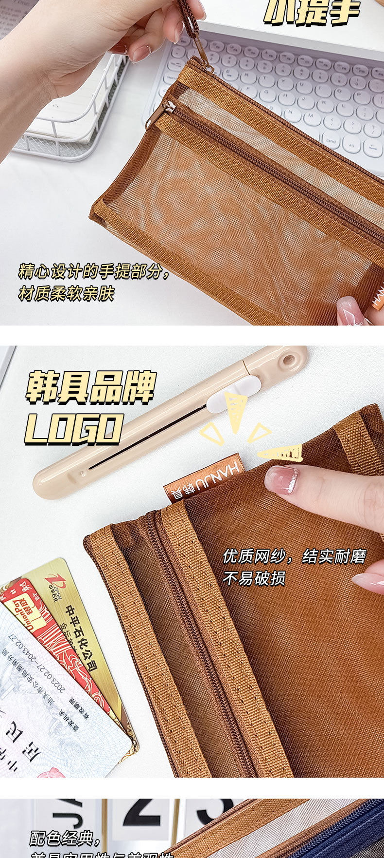 한국 HJ-087 연필 가방 더블 레이어 보관 가방 가구 카드 가방 지퍼 가방 투명 문서 가방 키 카드 가방스토어 가기