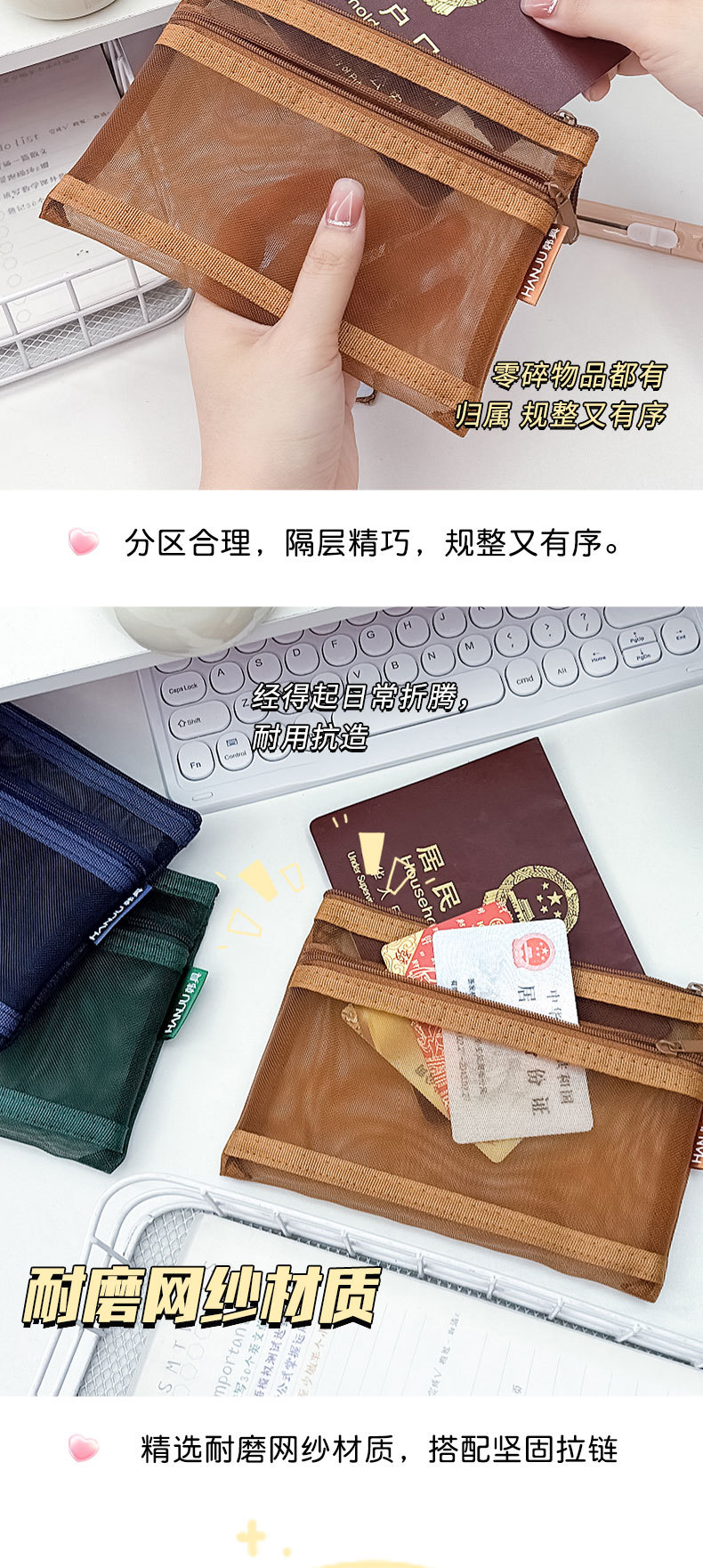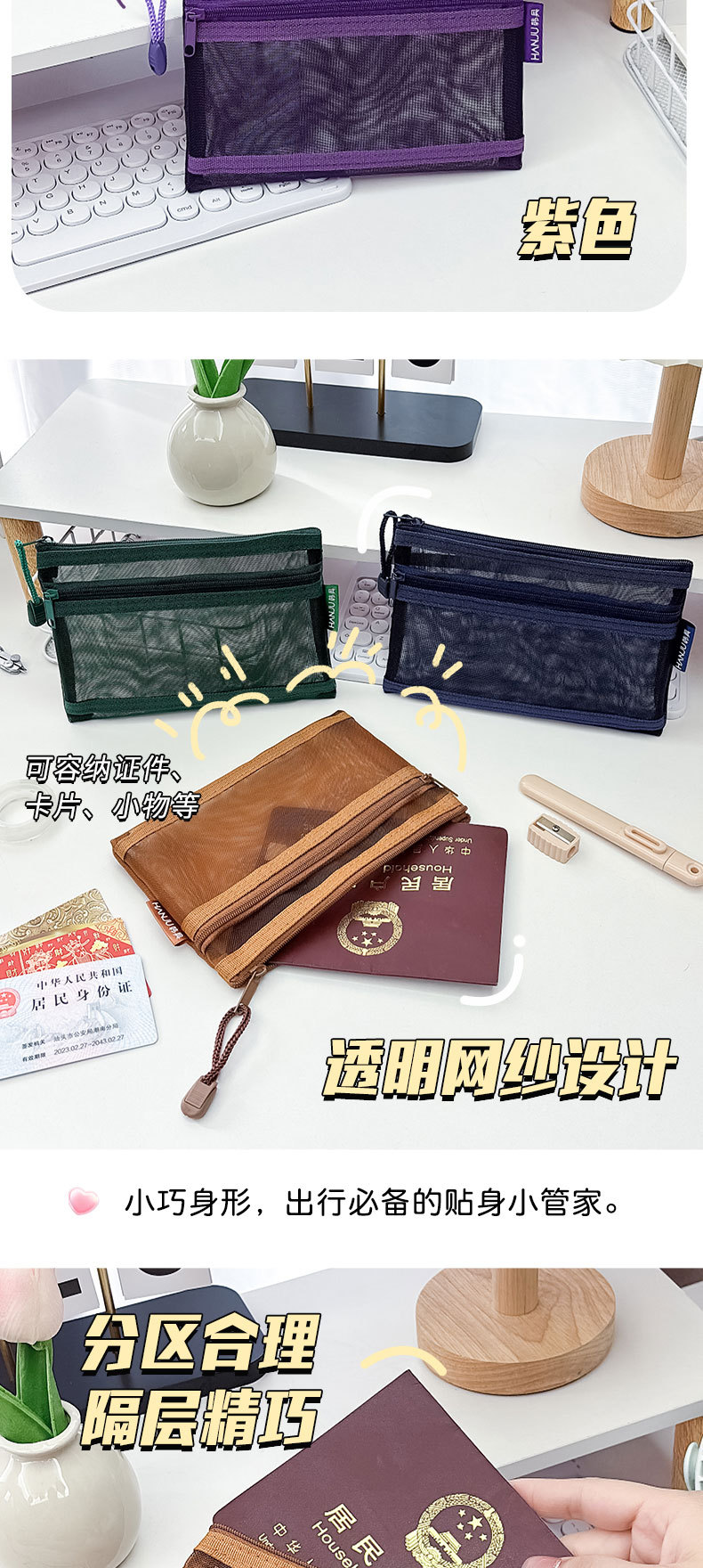한국 HJ-087 연필 가방 더블 레이어 보관 가방 가구 카드 가방 지퍼 가방 투명 문서 가방 키 카드 가방