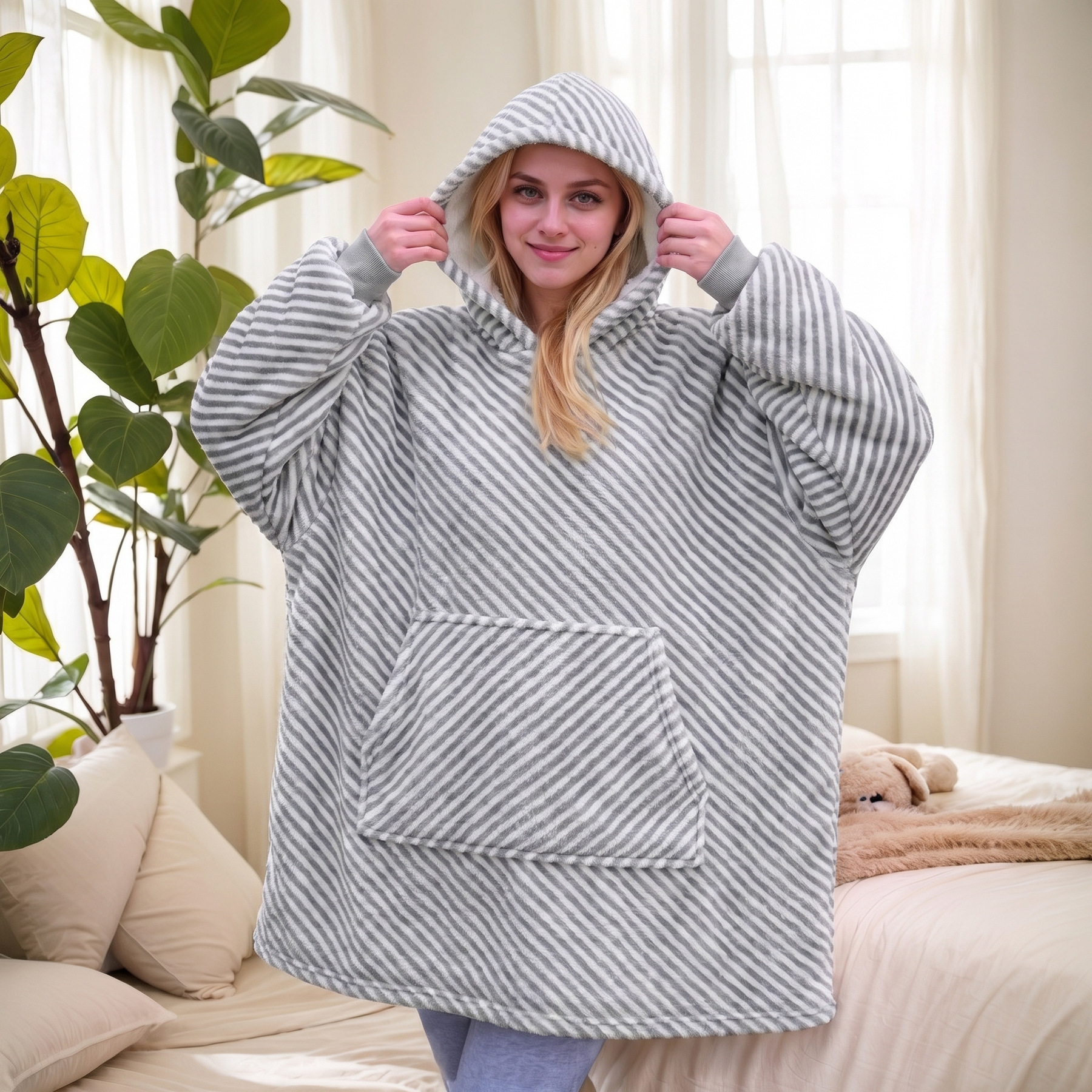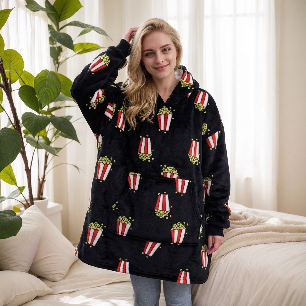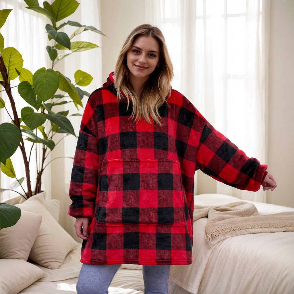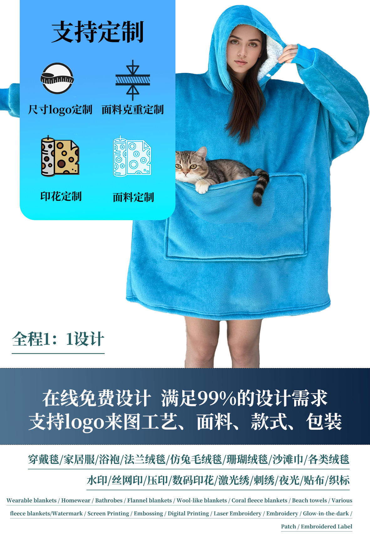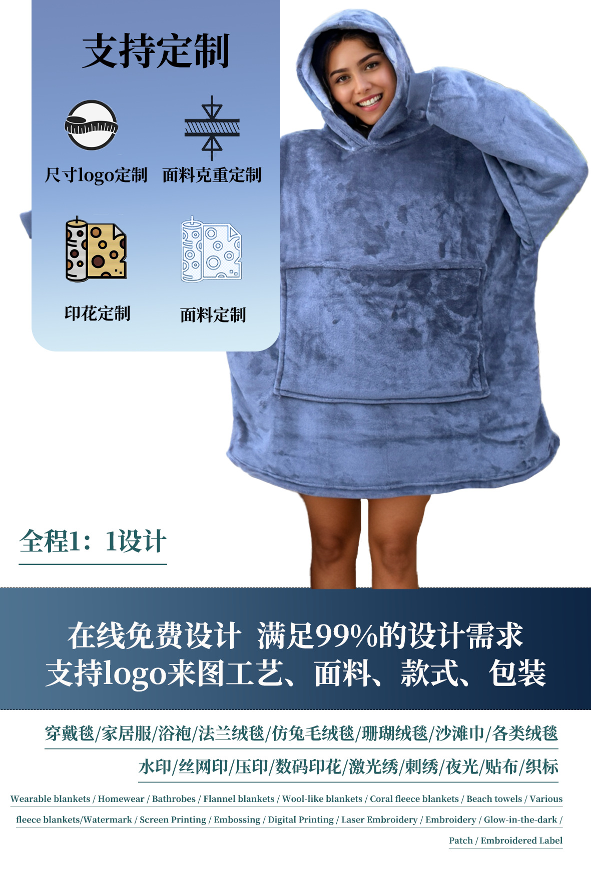 本链接穿戴毯面料采用复合法兰绒,是国内外热销的一款家庭家居服