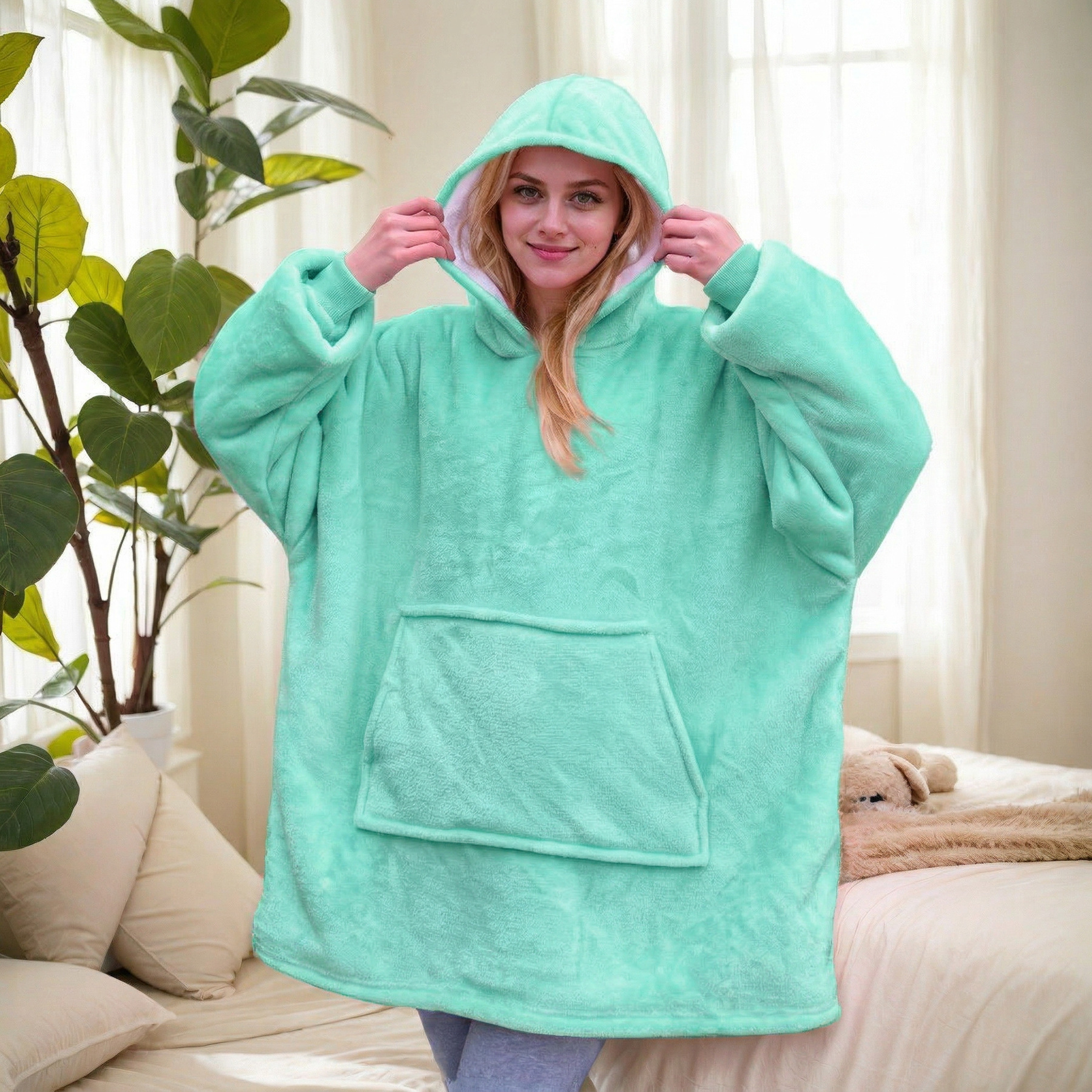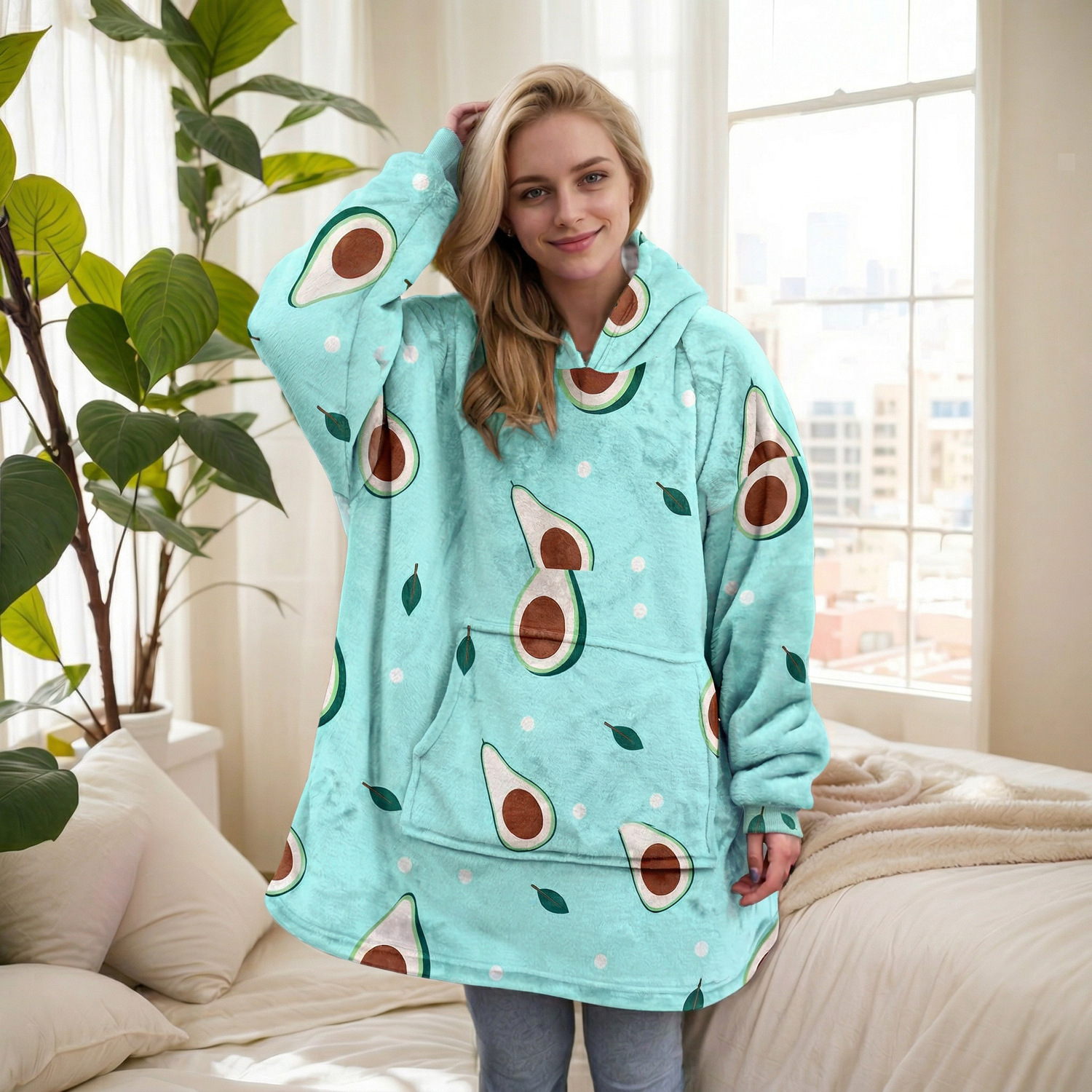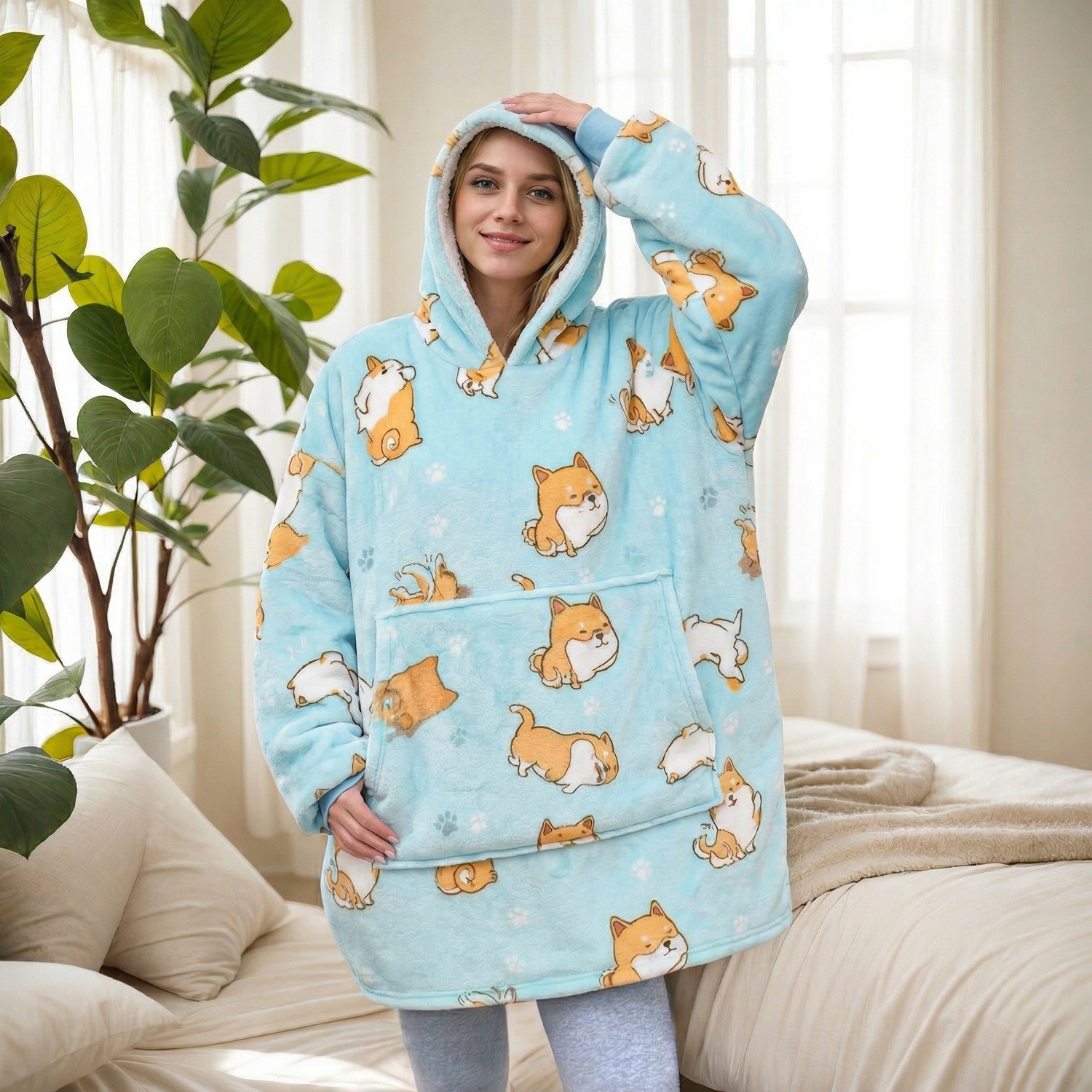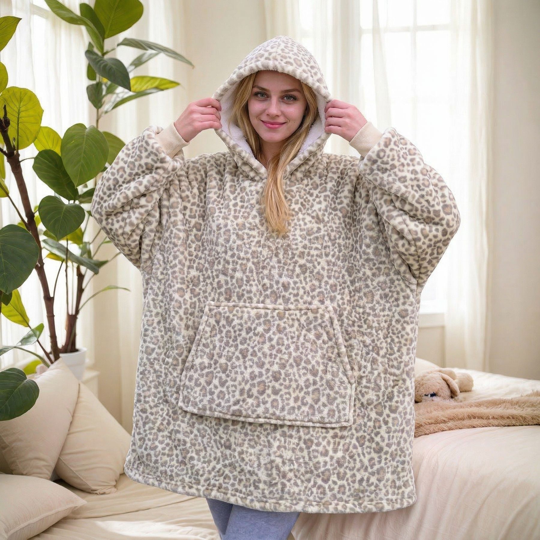 本链接穿戴毯面料采用复合法兰绒,是国内外热销的一款家庭家居服