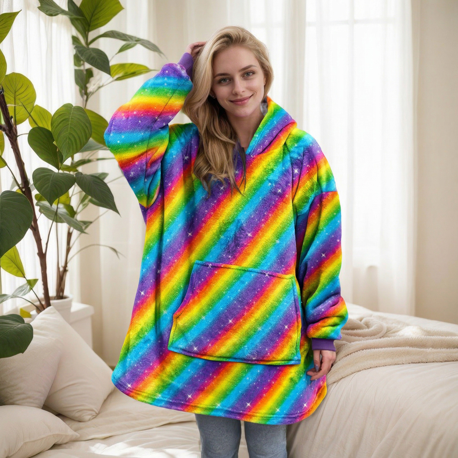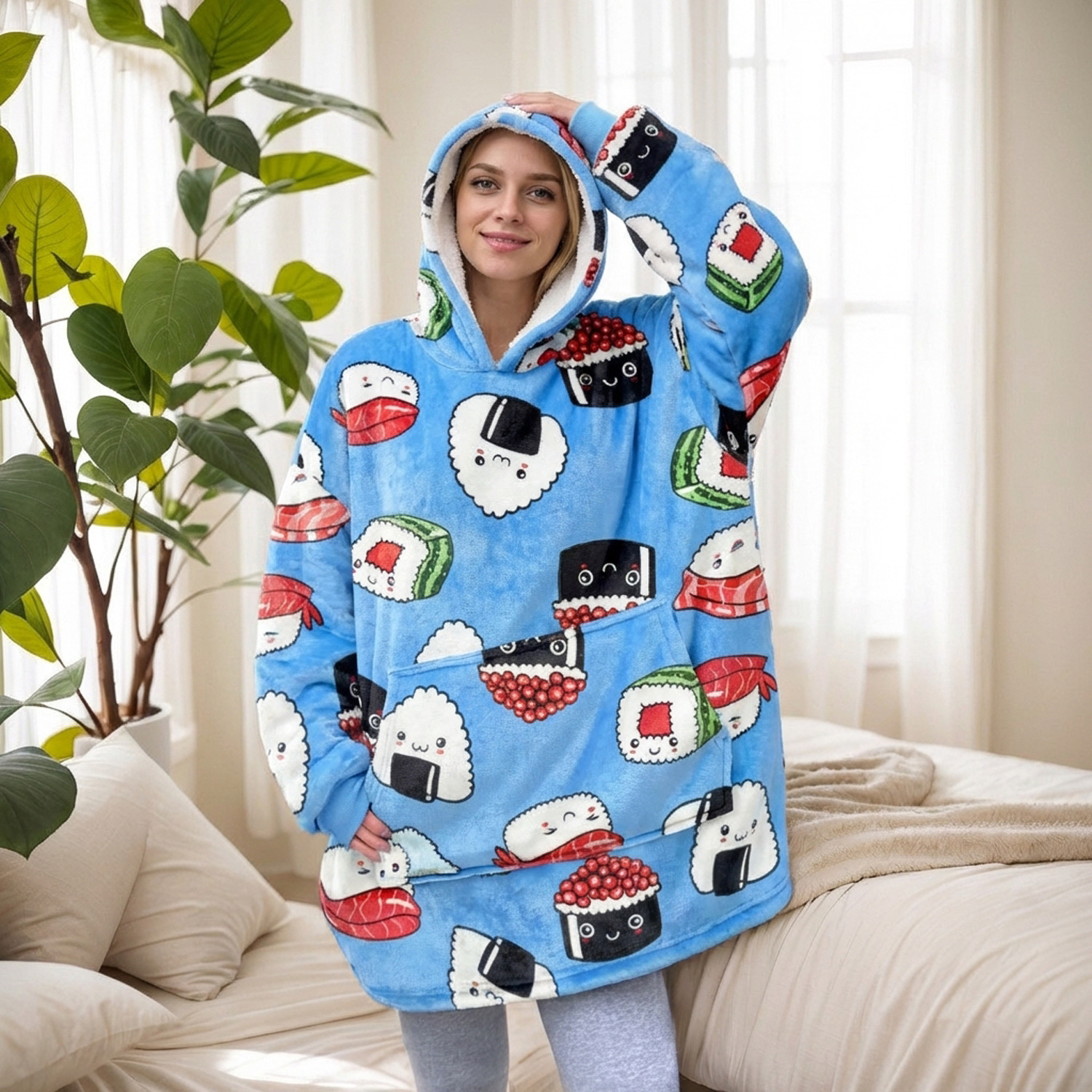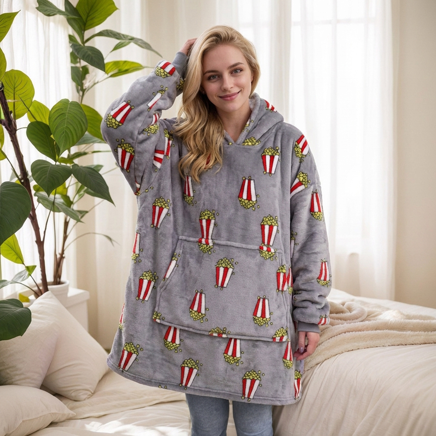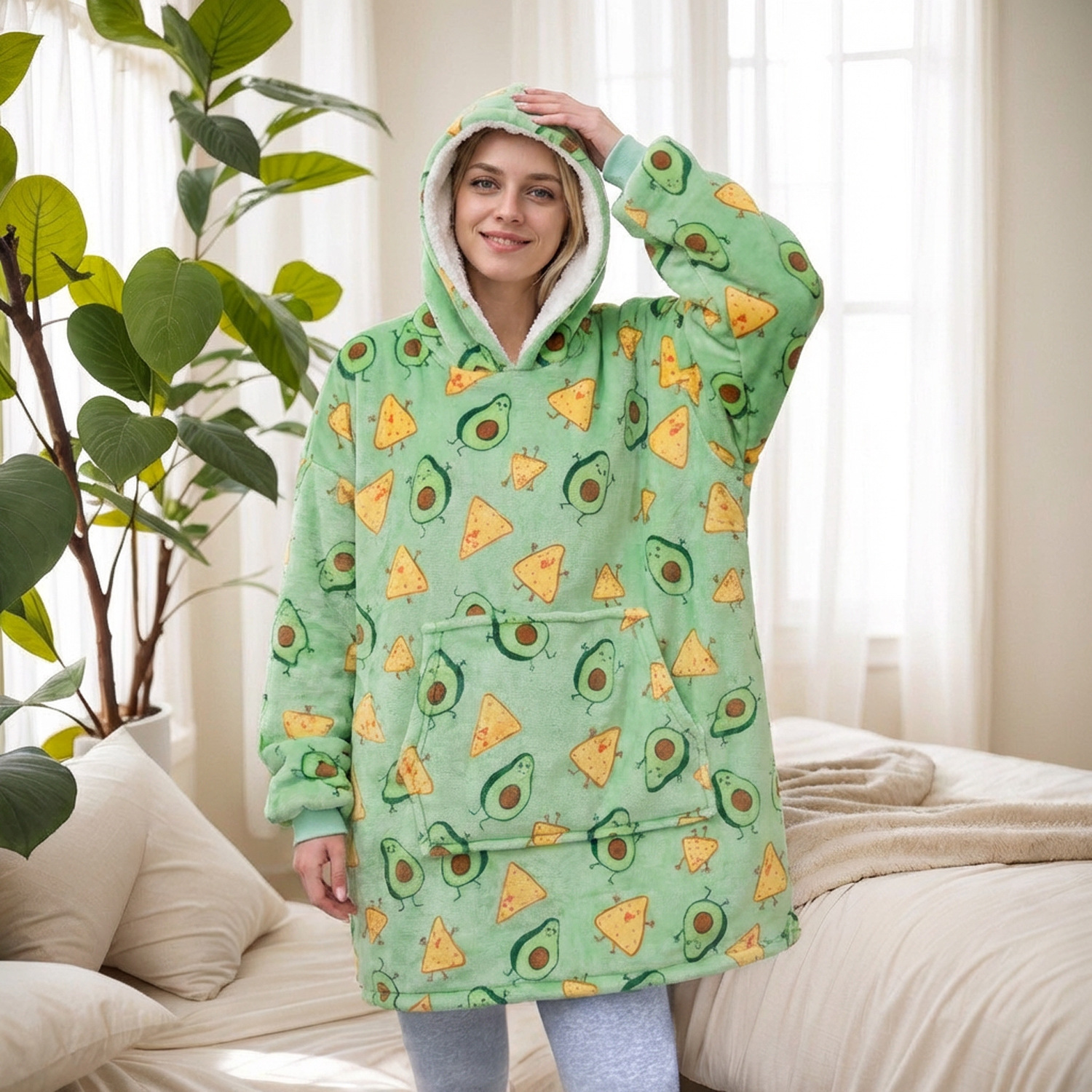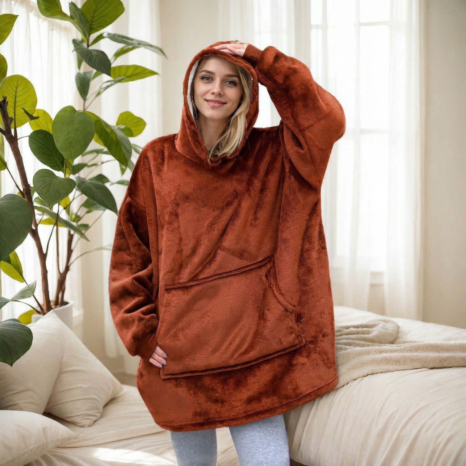 本链接穿戴毯面料采用复合法兰绒,是国内外热销的一款家庭家居服