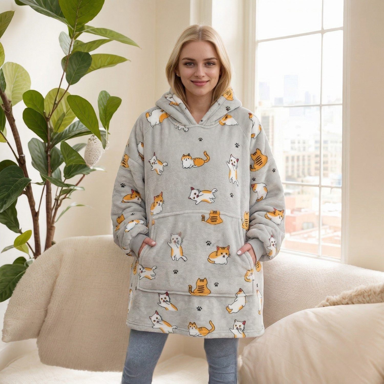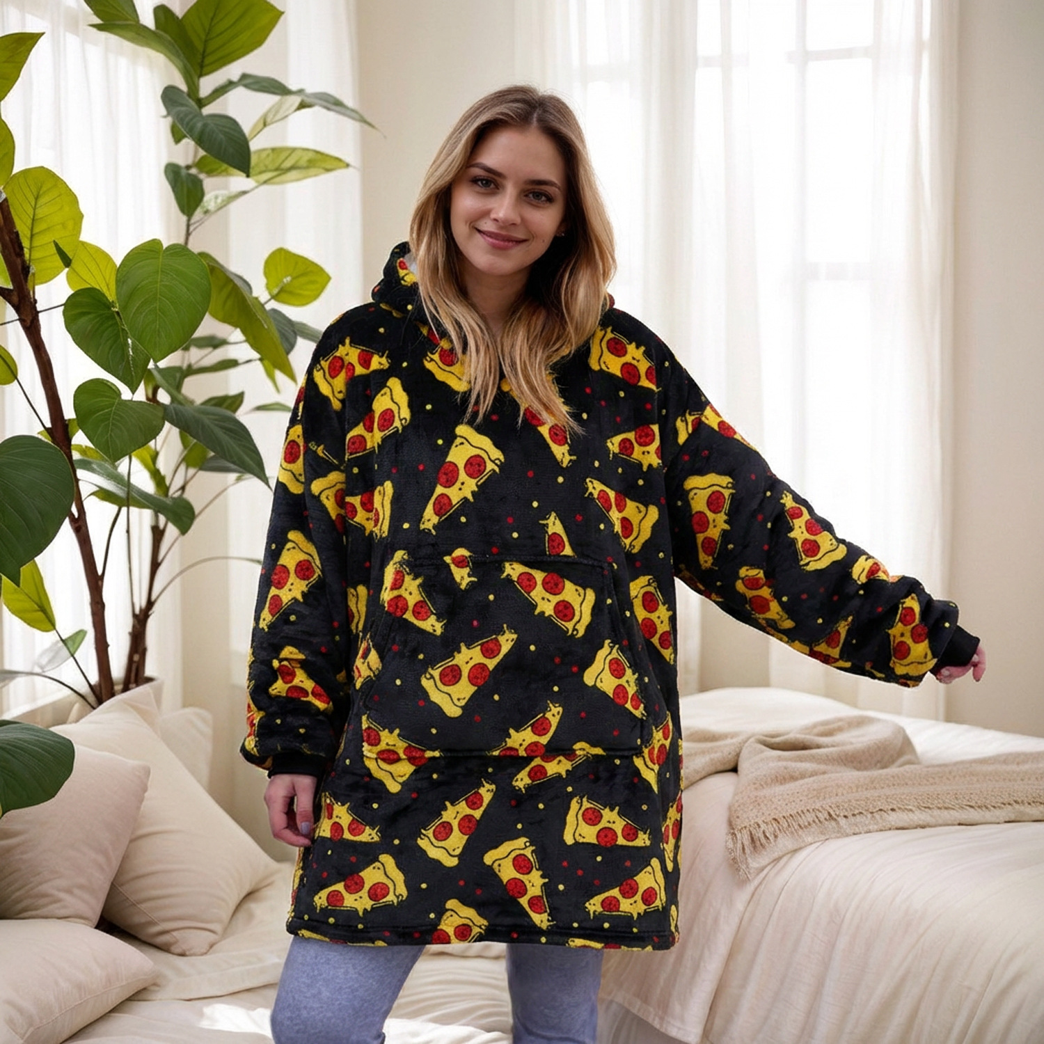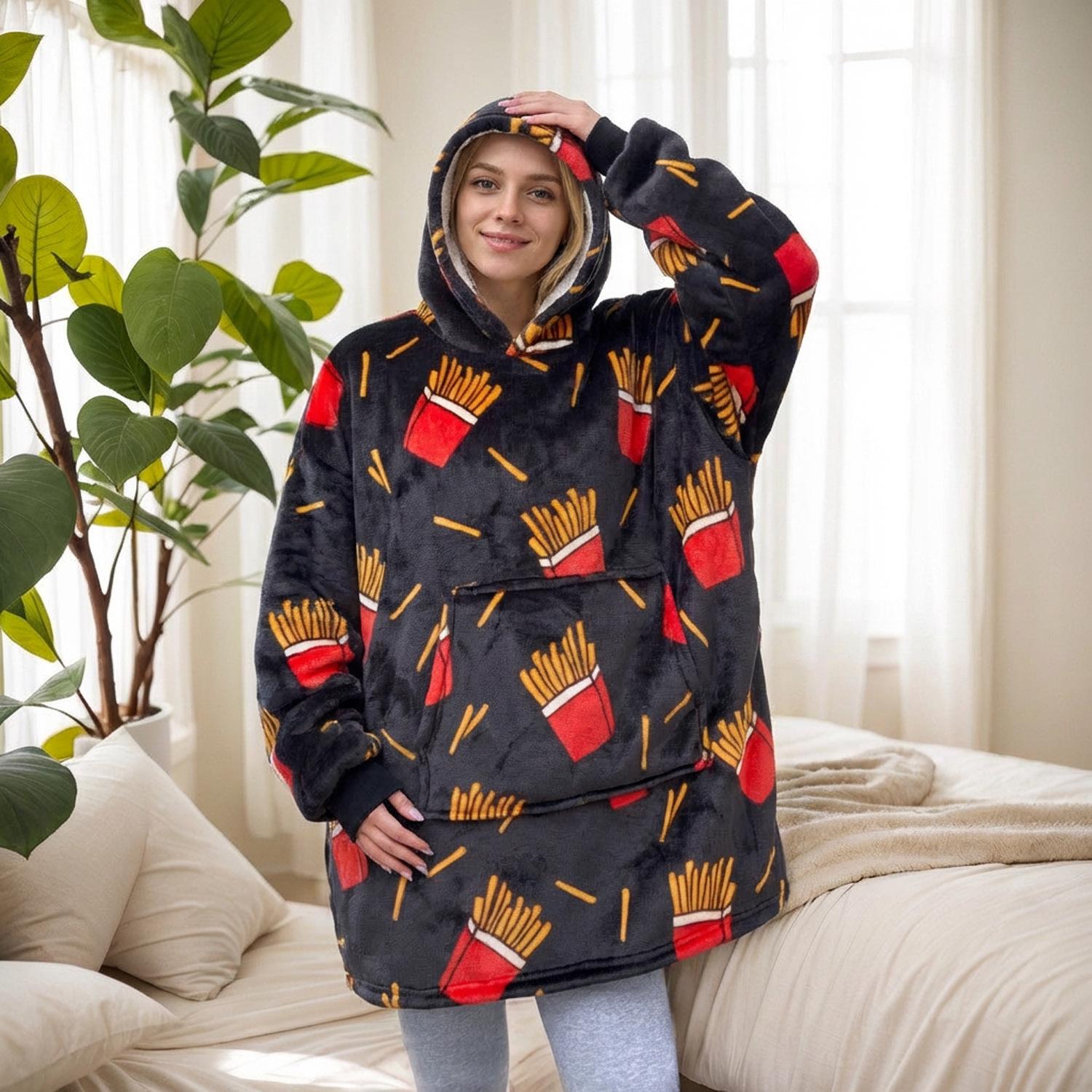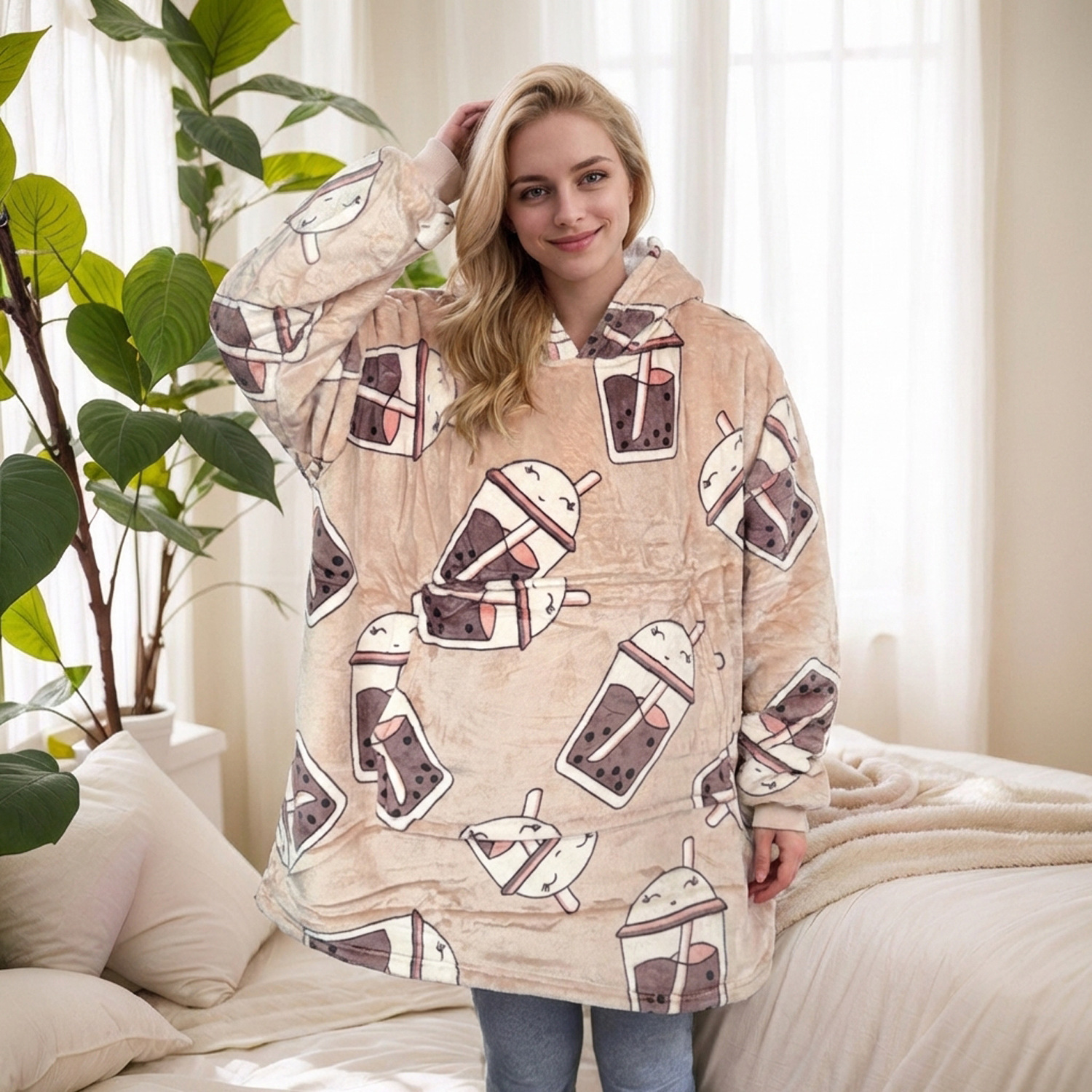 本链接穿戴毯面料采用复合法兰绒,是国内外热销的一款家庭家居服