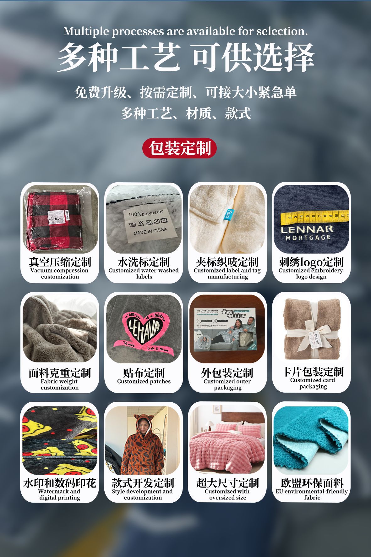4.产品面料:复合法兰绒(175g法兰绒+175g羊羔绒)