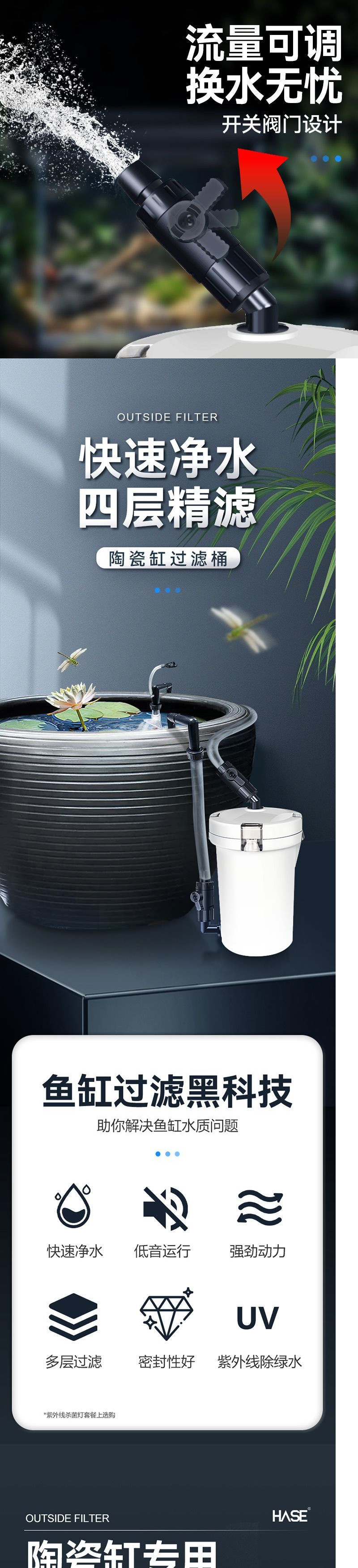 • Y65 세라믹 필터 배럴 + 필터 재료 + 살균 램프