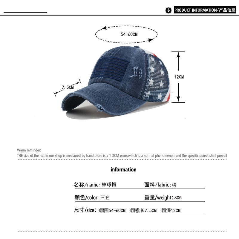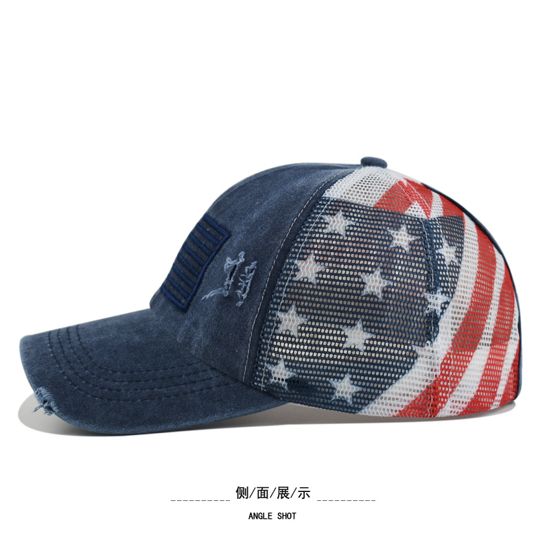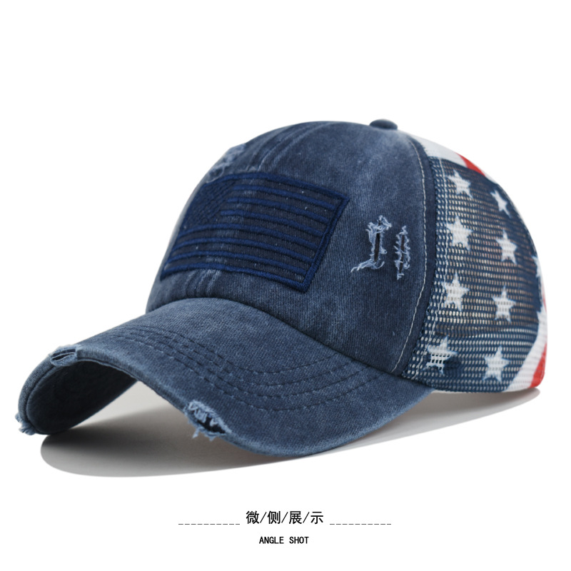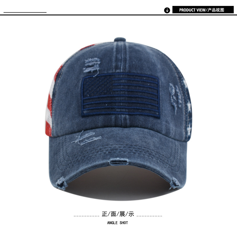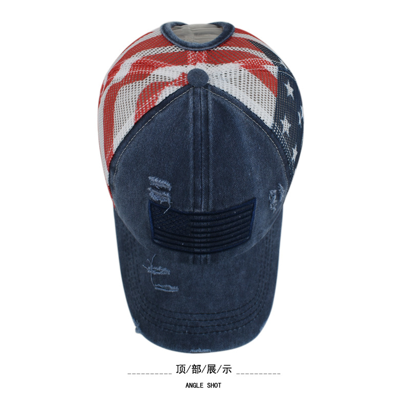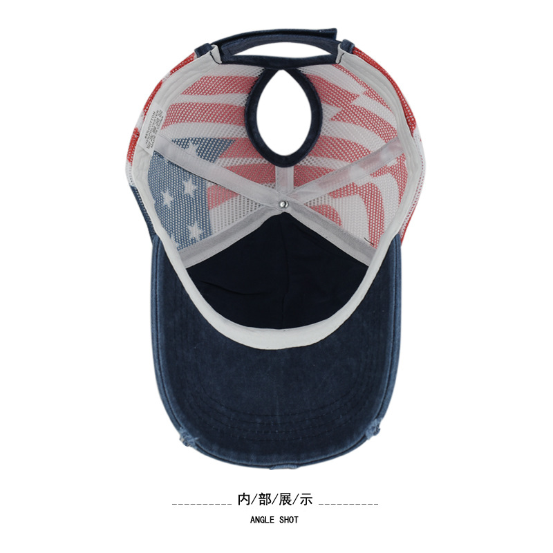 순면 워싱 구멍 다섯개 별 미국 국기 야구 모자 포니테일 모자 대외 무역 유럽과 미국의 트렌디한 곡선 챙 모자스토어 가기