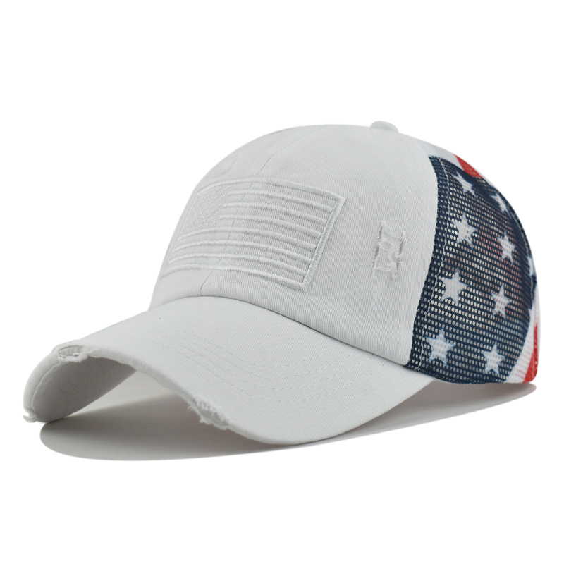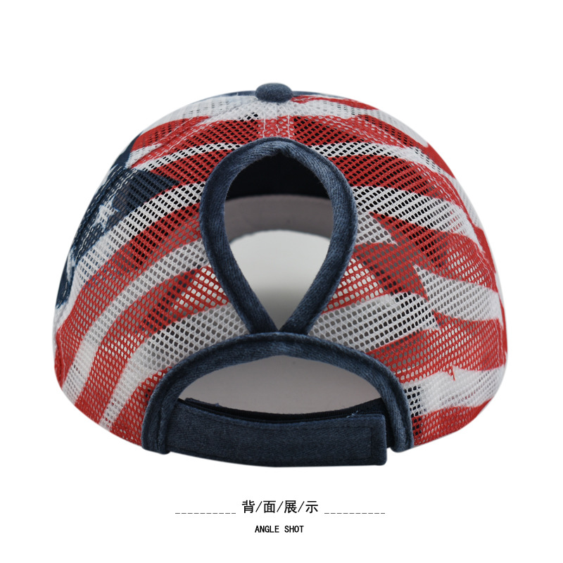 순면 워싱 구멍 다섯개 별 미국 국기 야구 모자 포니테일 모자 대외 무역 유럽과 미국의 트렌디한 곡선 챙 모자
