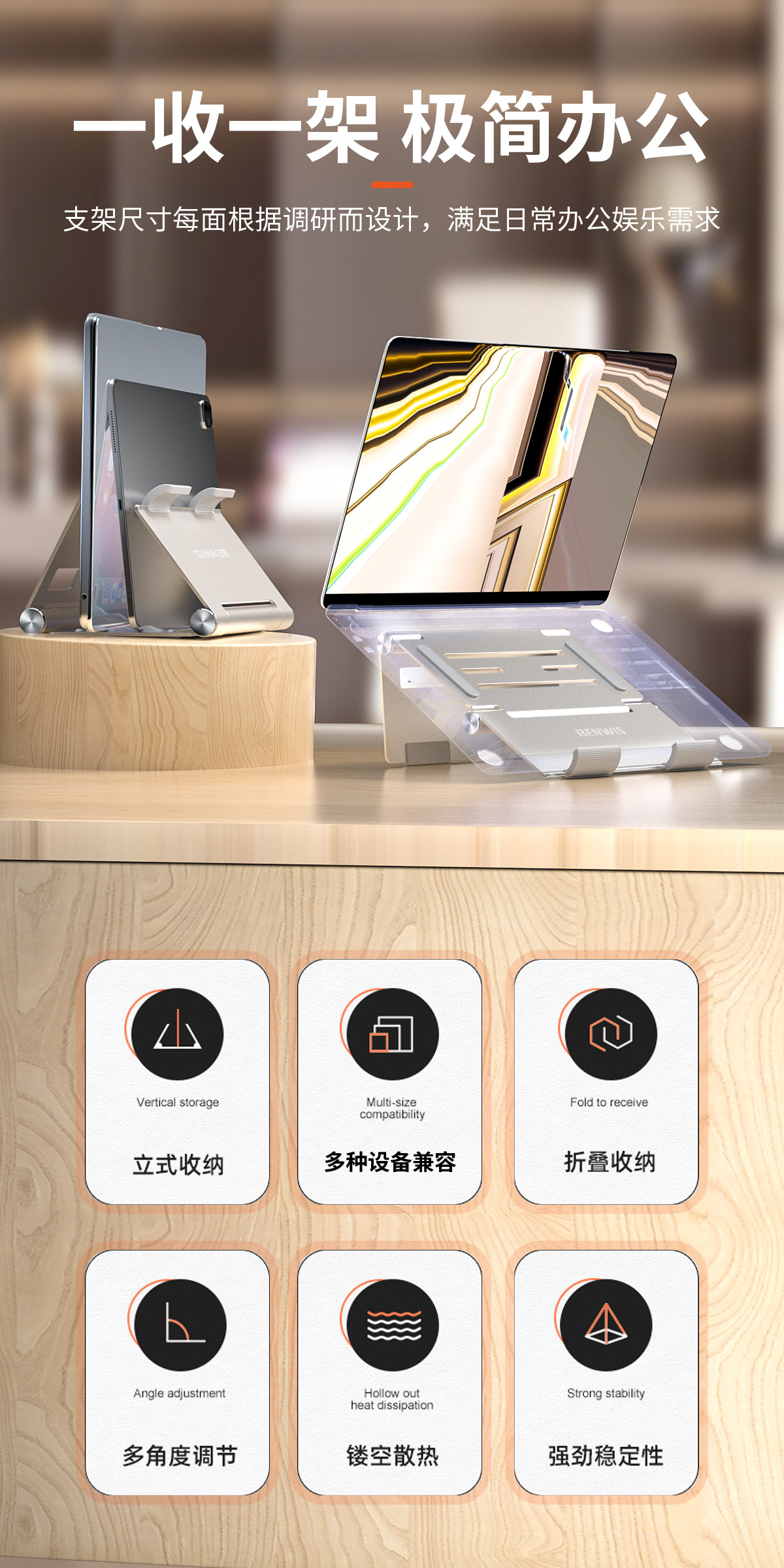 BENWIS 다기능 3-in-1 태블릿 스탠드 휴대용 접이식 조절 알루미늄 합금 노트북 스탠드