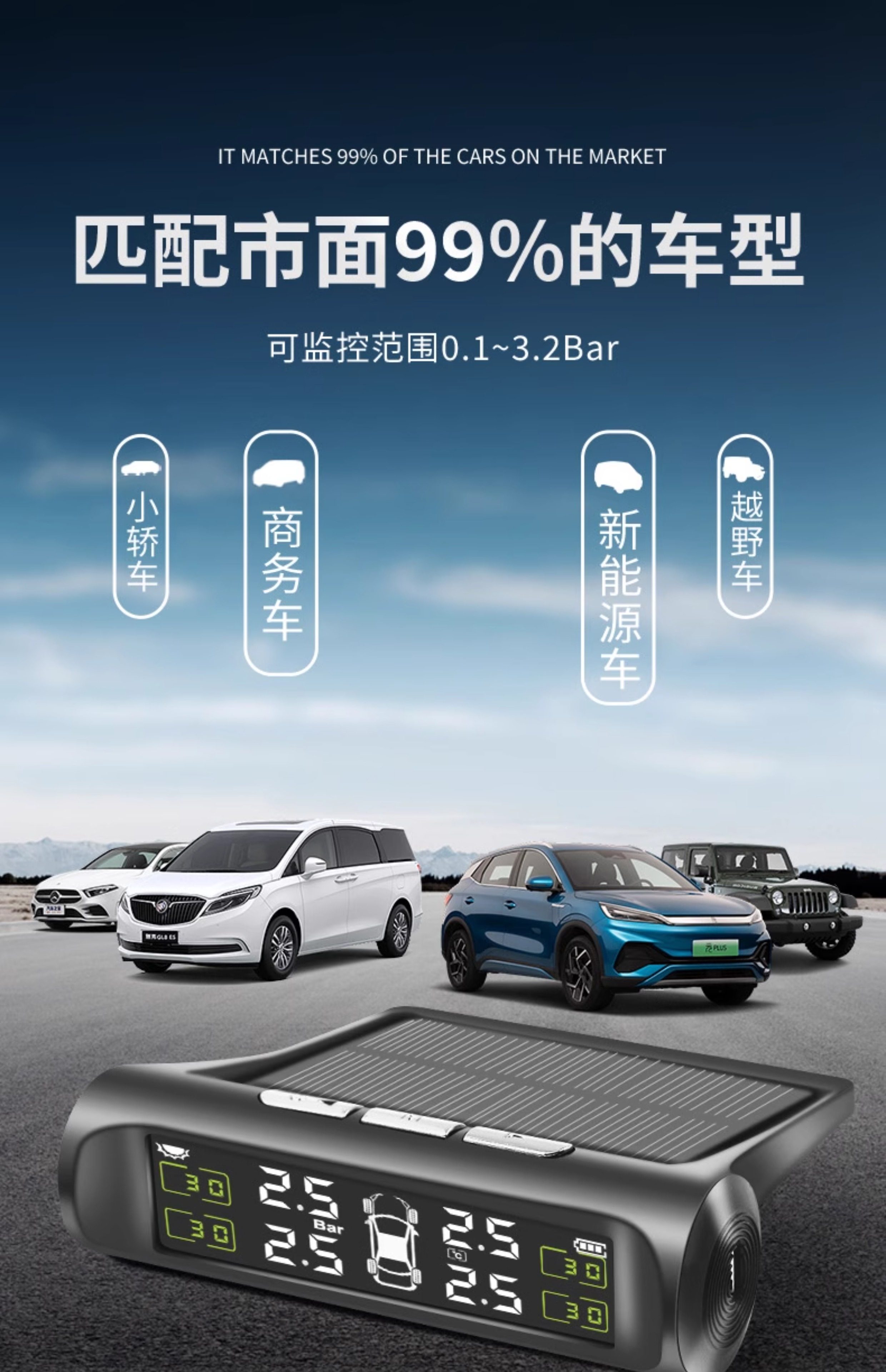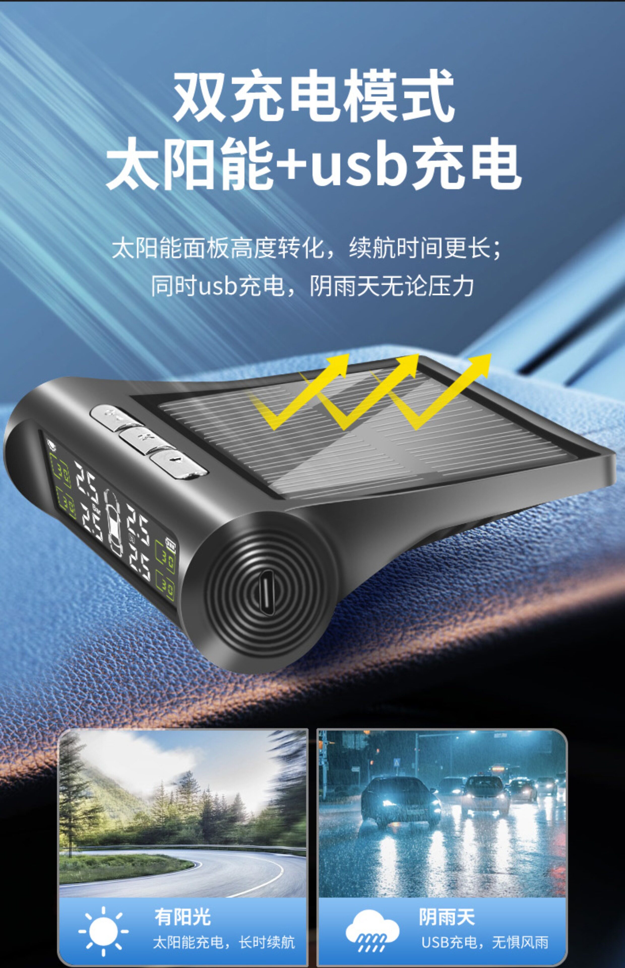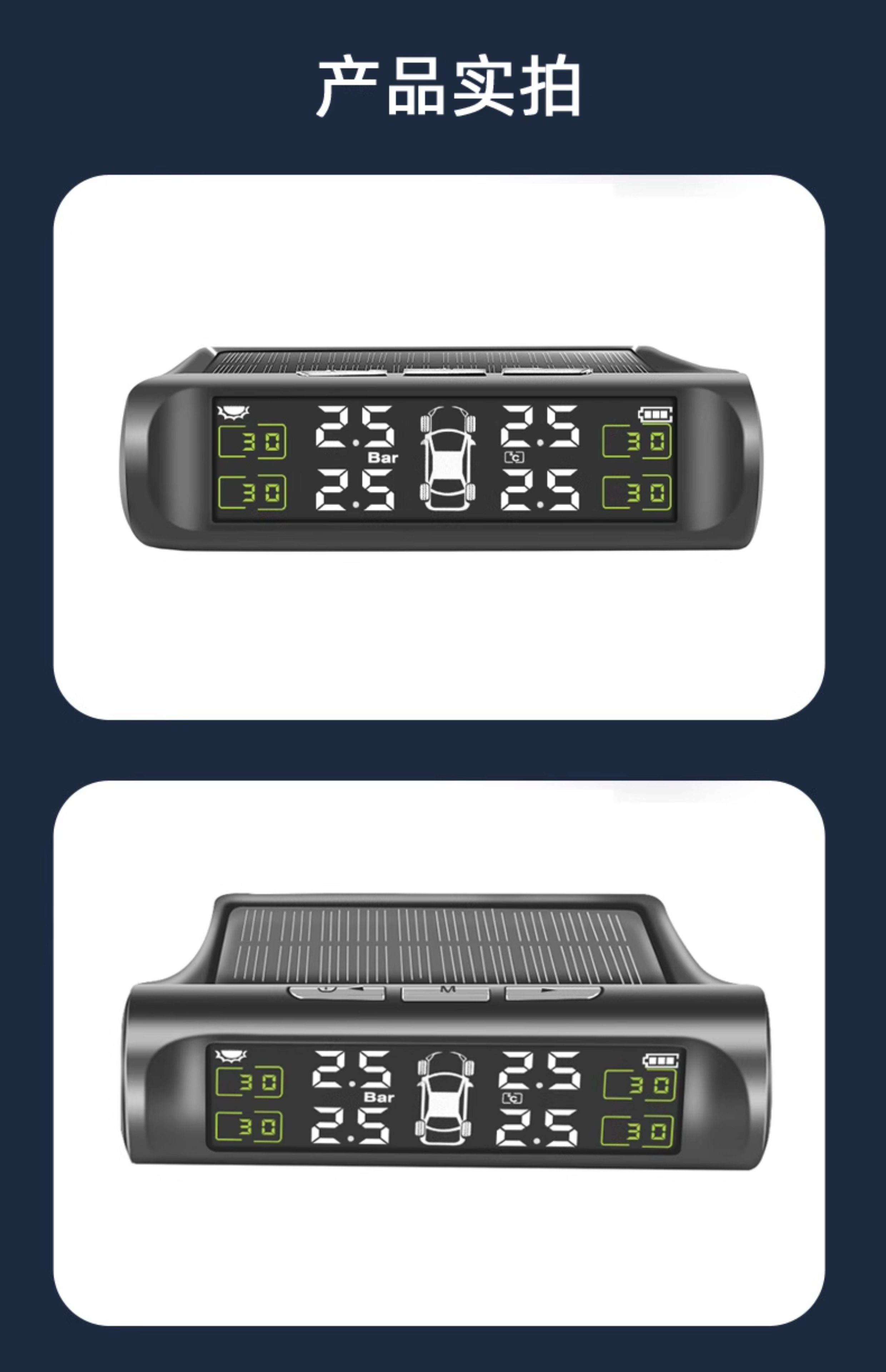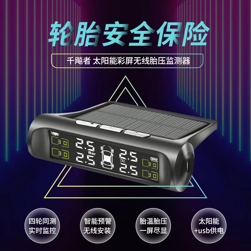 타이어 압력 모니터 태양열 타이어 압력 감지 장비 자동차 무선 내장 외부 고정밀 타이어 압력 측정기
