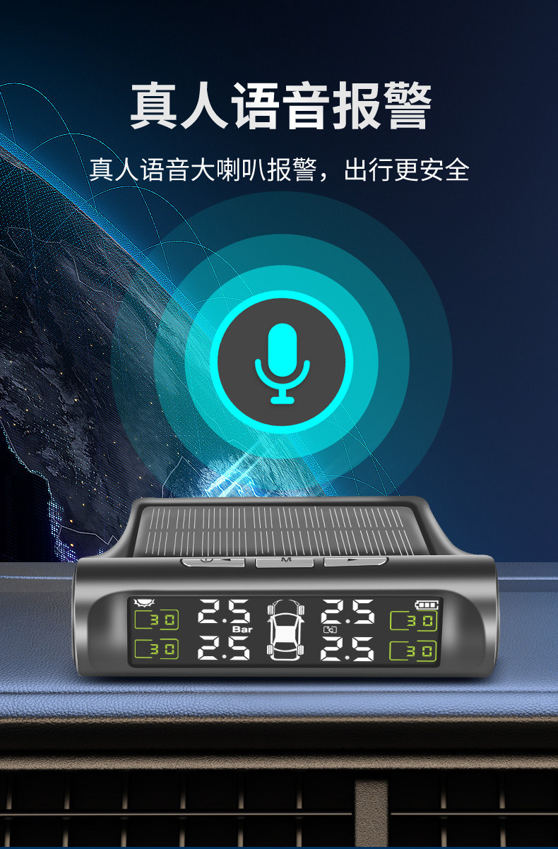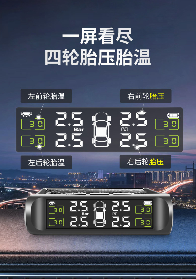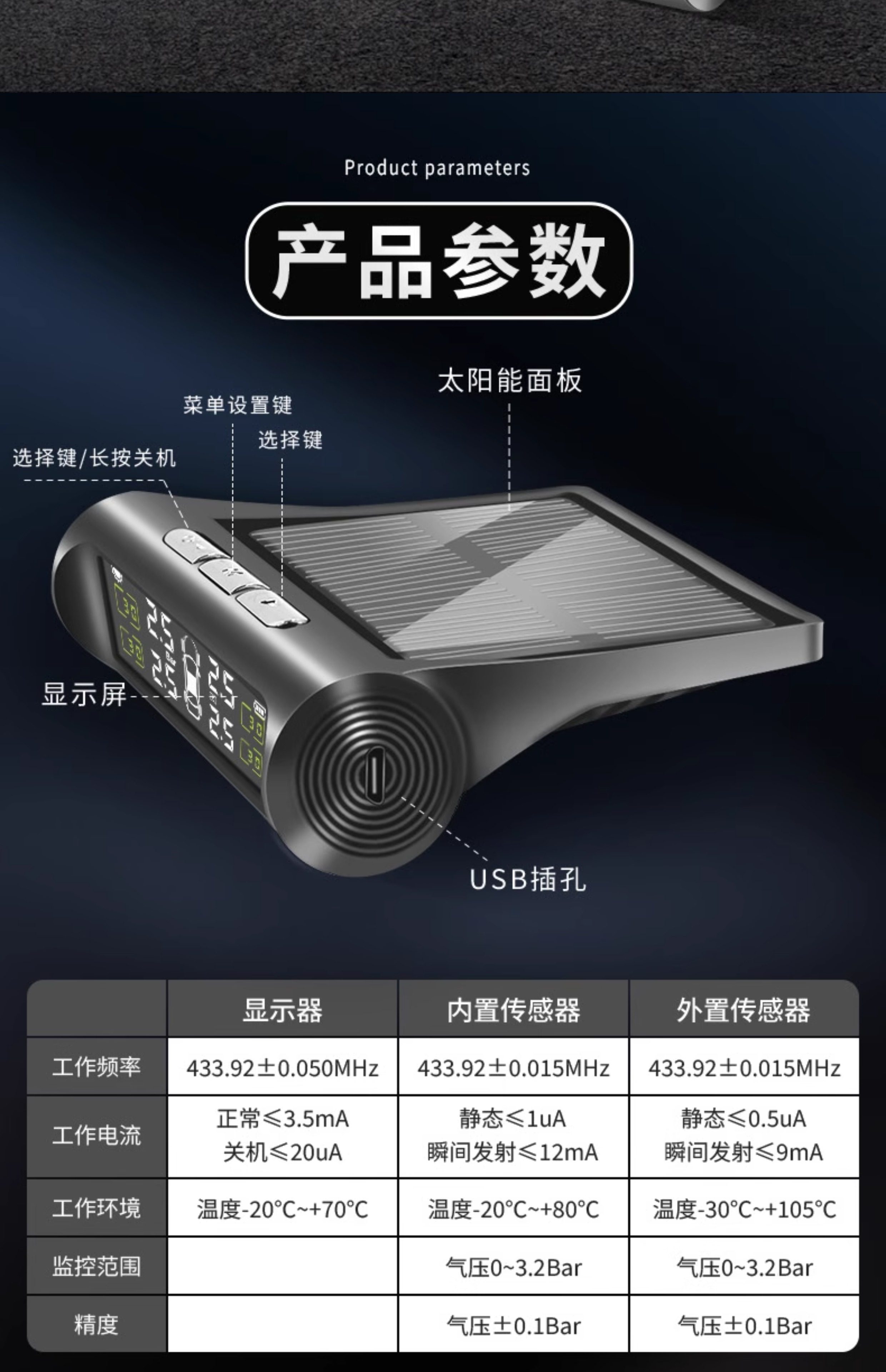 타이어 압력 모니터 태양열 타이어 압력 감지 장비 자동차 무선 내장 외부 고정밀 타이어 압력 측정기